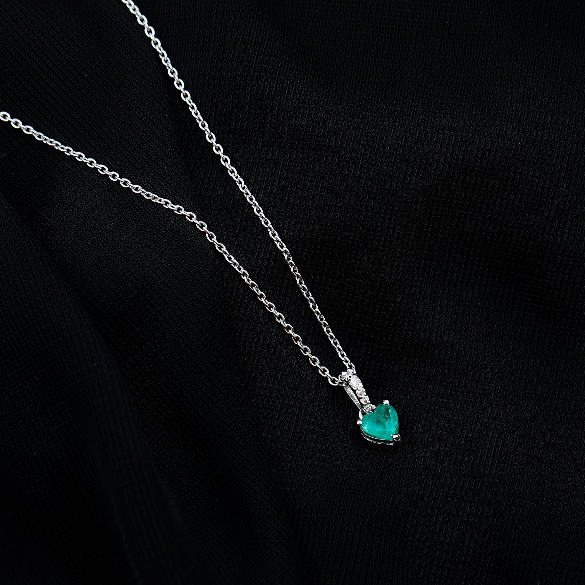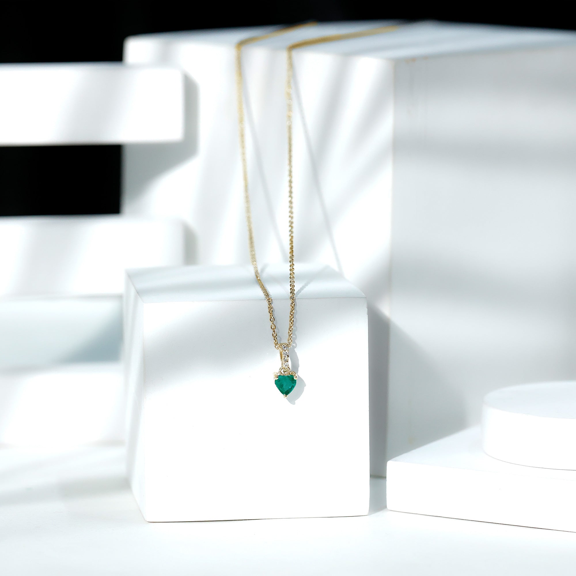 Go minimal yet trendy with this Solitaire Pendant Necklace. This Pendant Necklace is adorned with Heart Shape Emerald Solitaire with Diamond Accent Bail to make for a lovely Valentines Day Gift for your beloved.