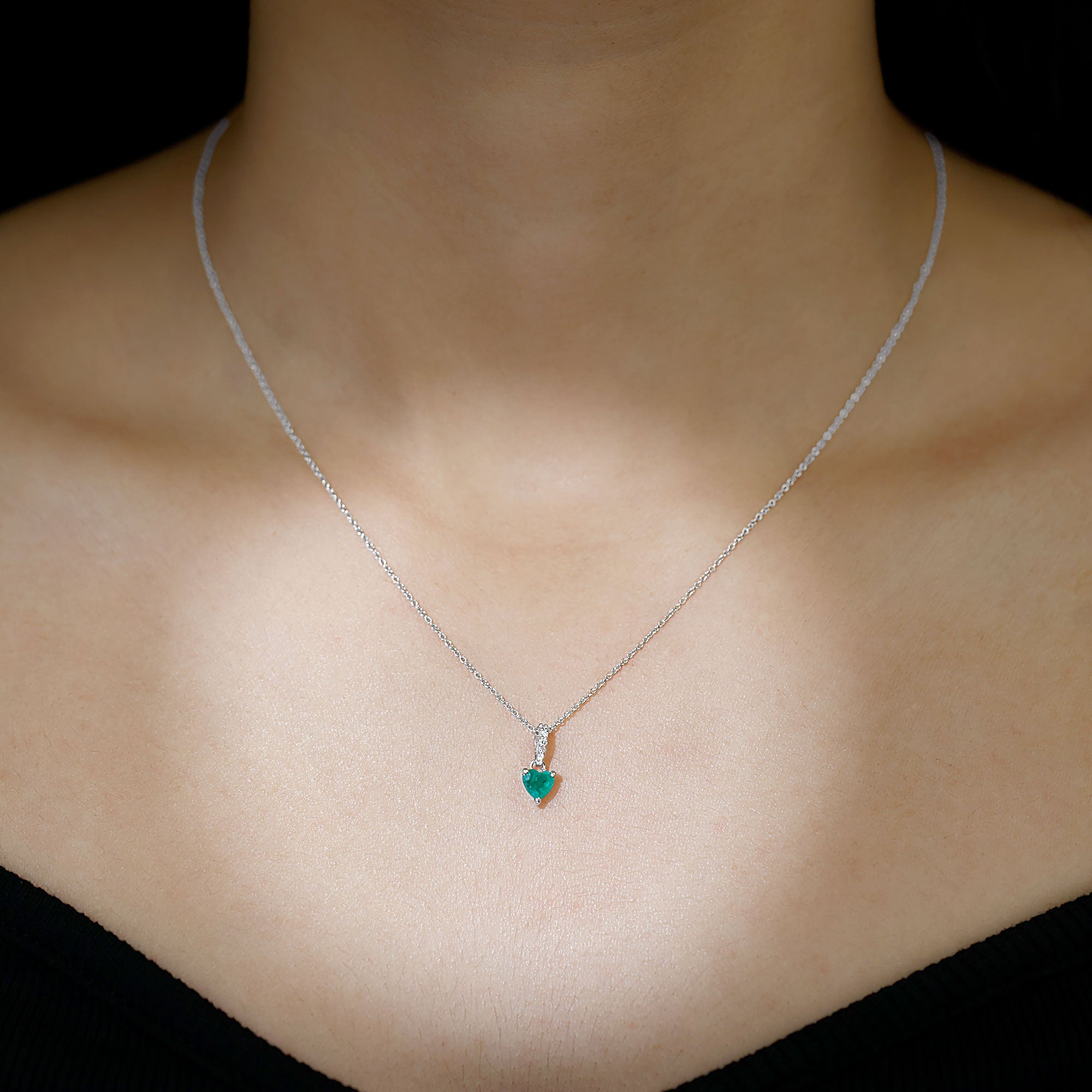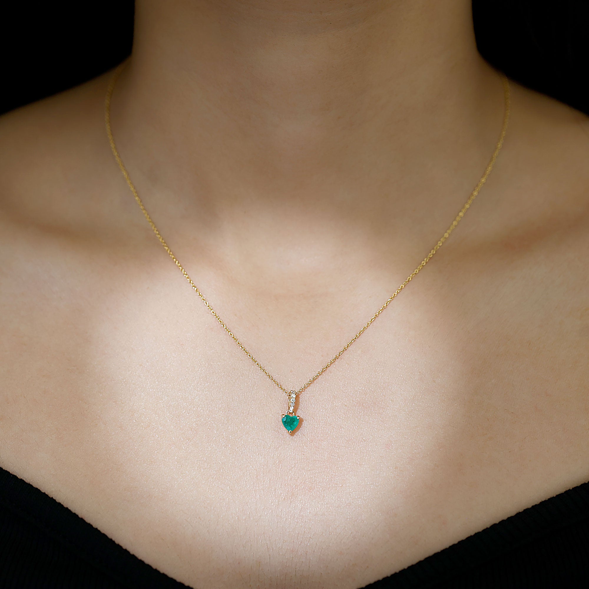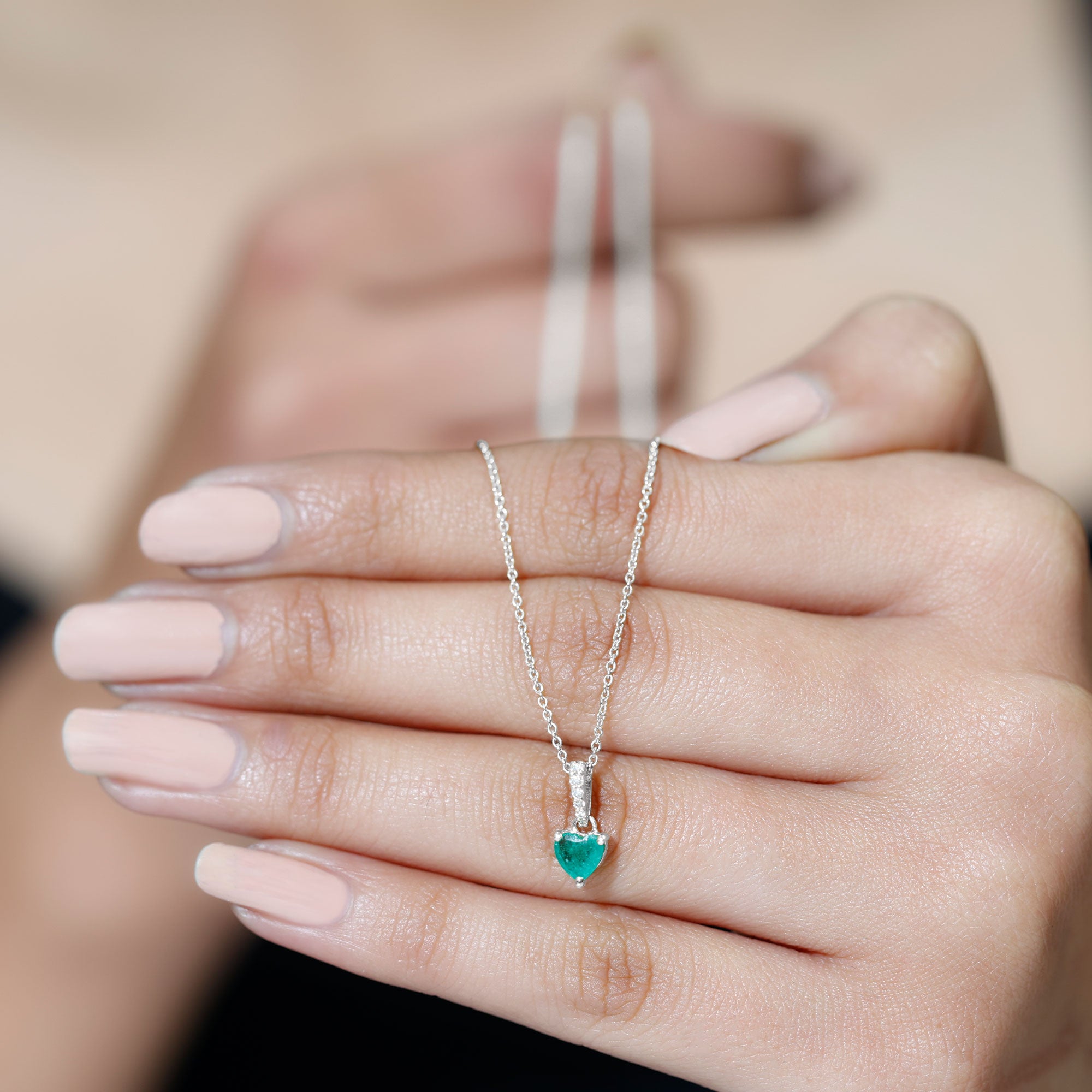 Heart Shape Emerald Pendant Necklace with Diamond Accent Bail