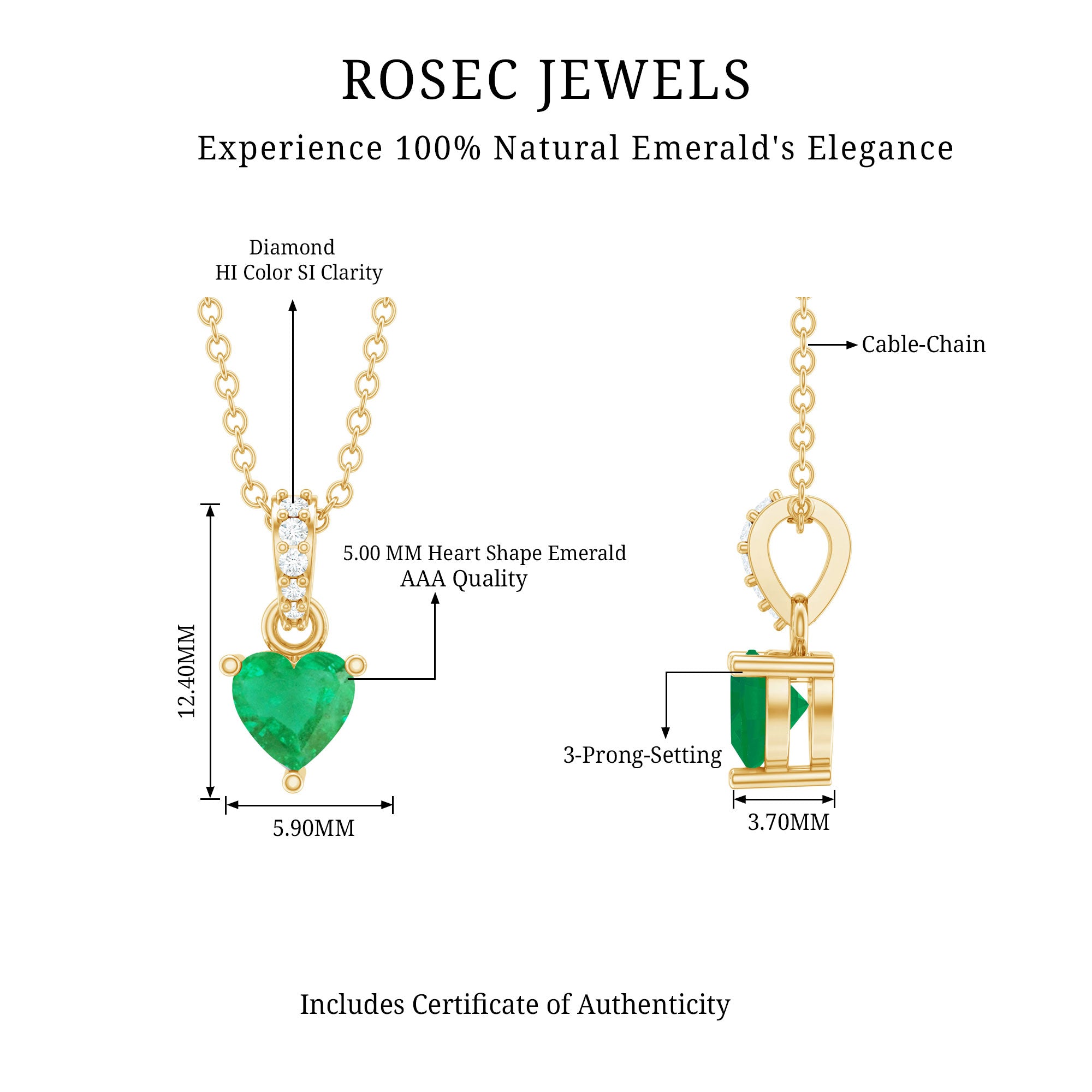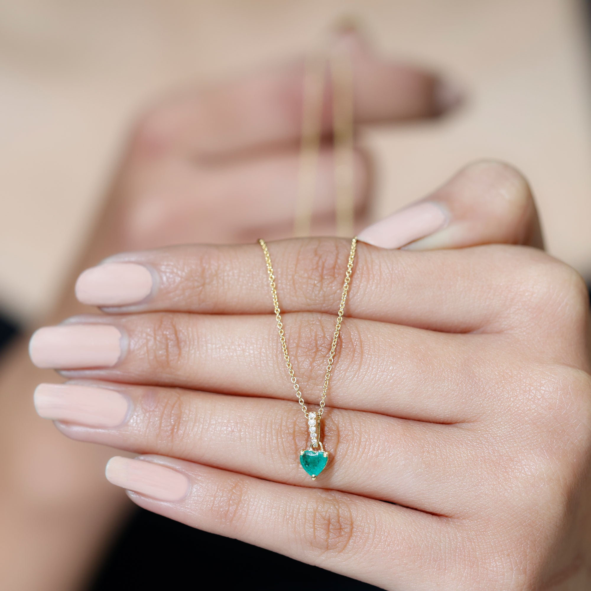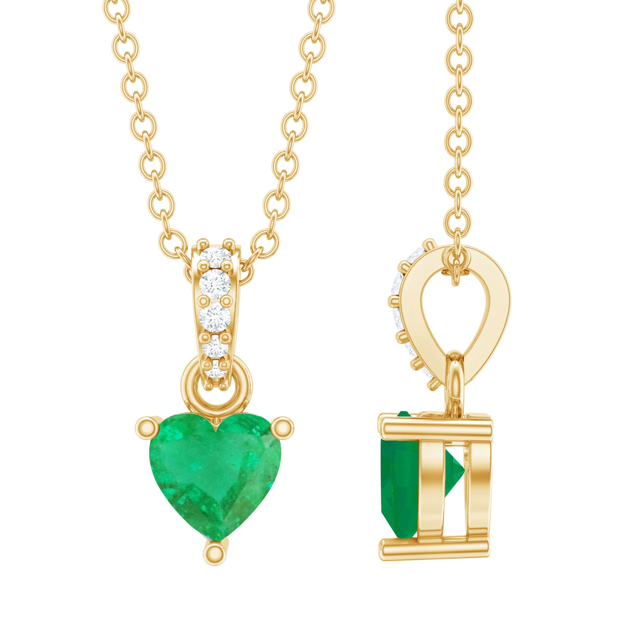 Heart Shape Emerald Pendant Necklace with Diamond Accent Bail