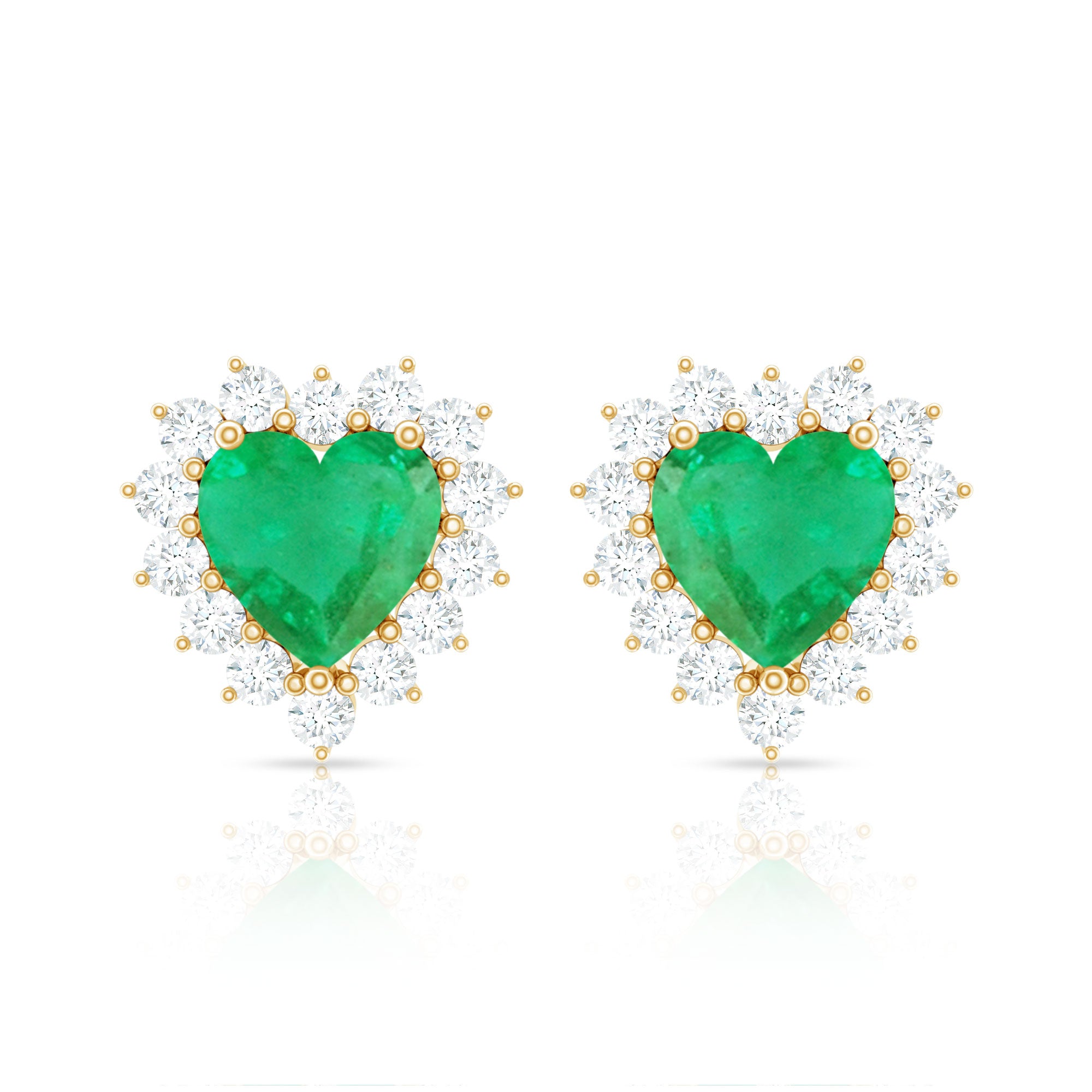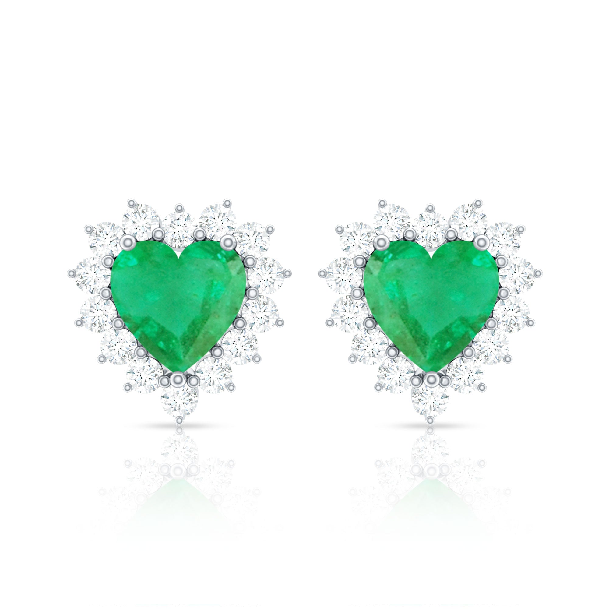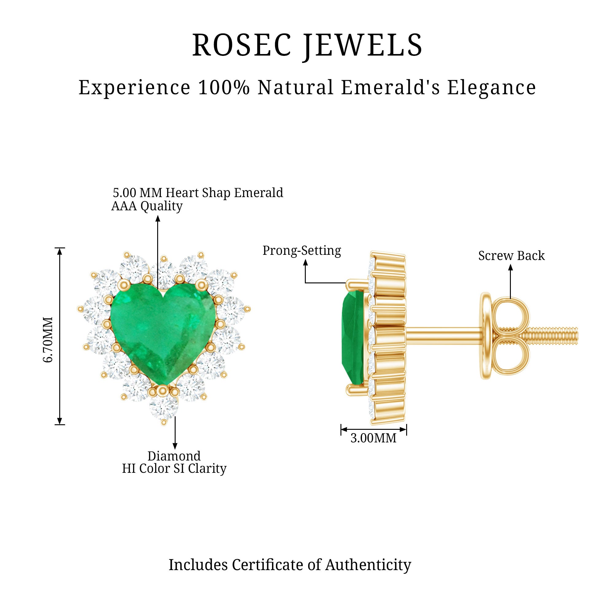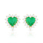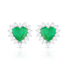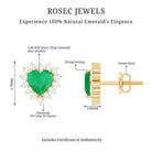Green hearts brilliance dazzles best with diamonds zest! Witness the magic with our Emerald Heart Stud Earrings adorned with a 4 MM Emerald centerpiece, amplified by a dazzling halo of HI-SI Diamond gemstones. Experience not just beauty, but also safety and comfort with this exquisite piece. Its time to embrace romance and sophistication in every moment.