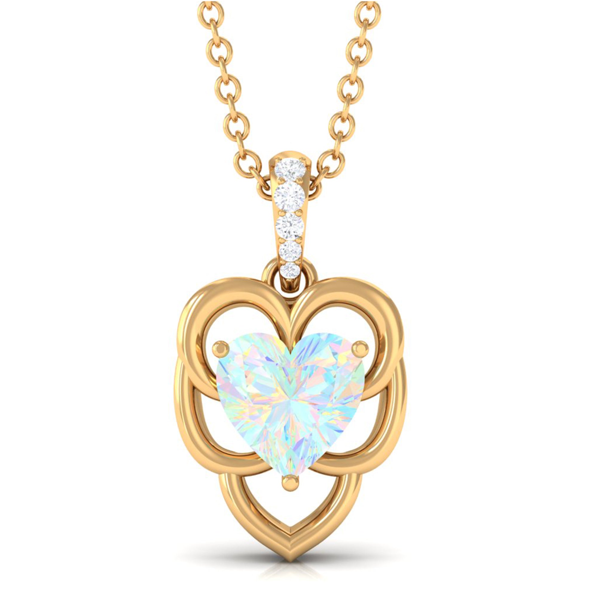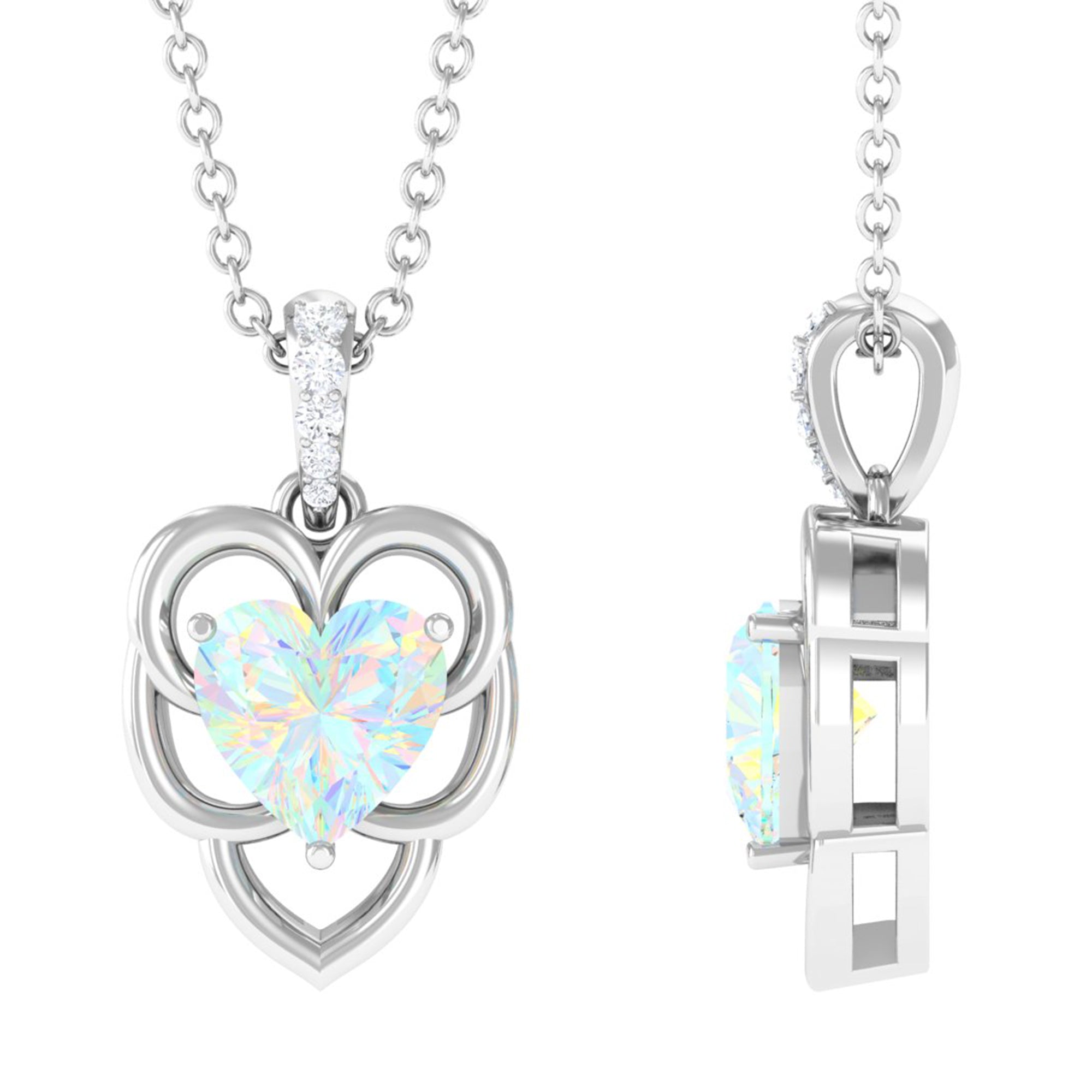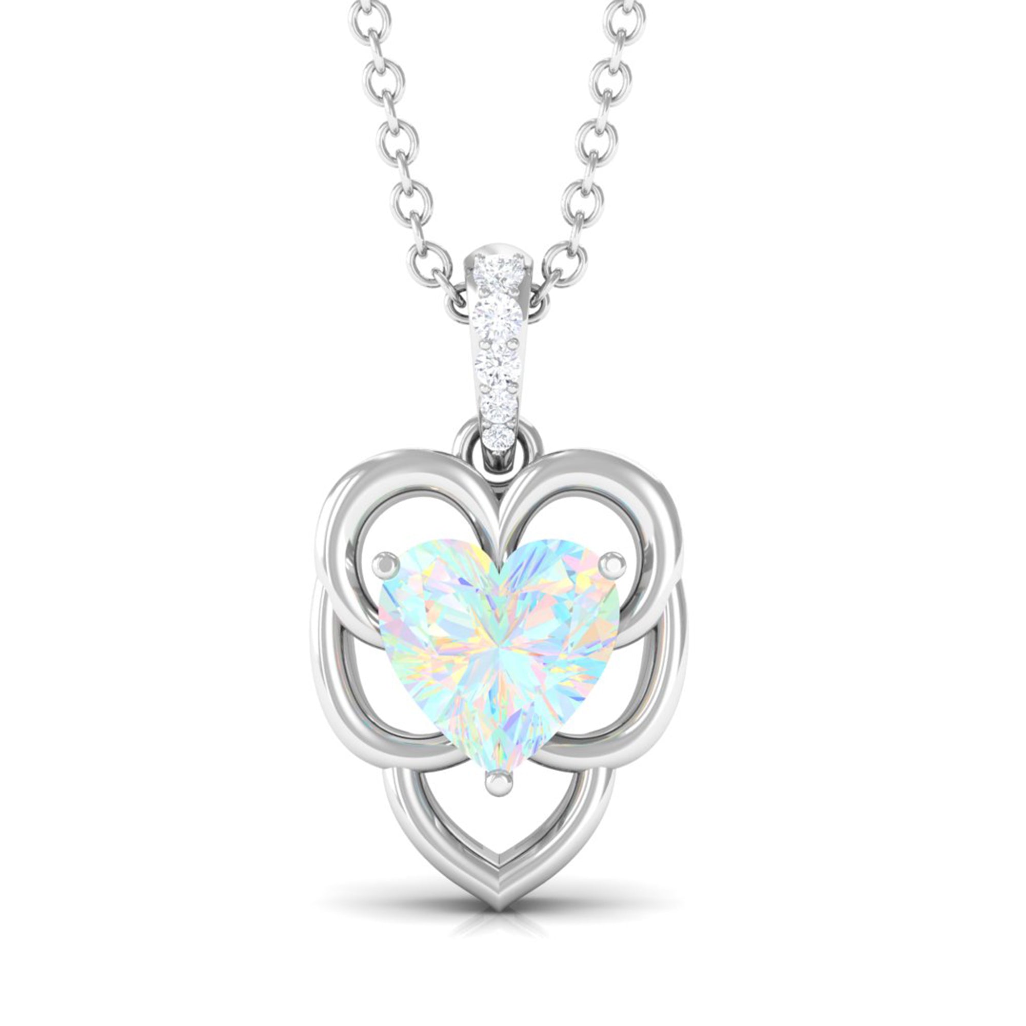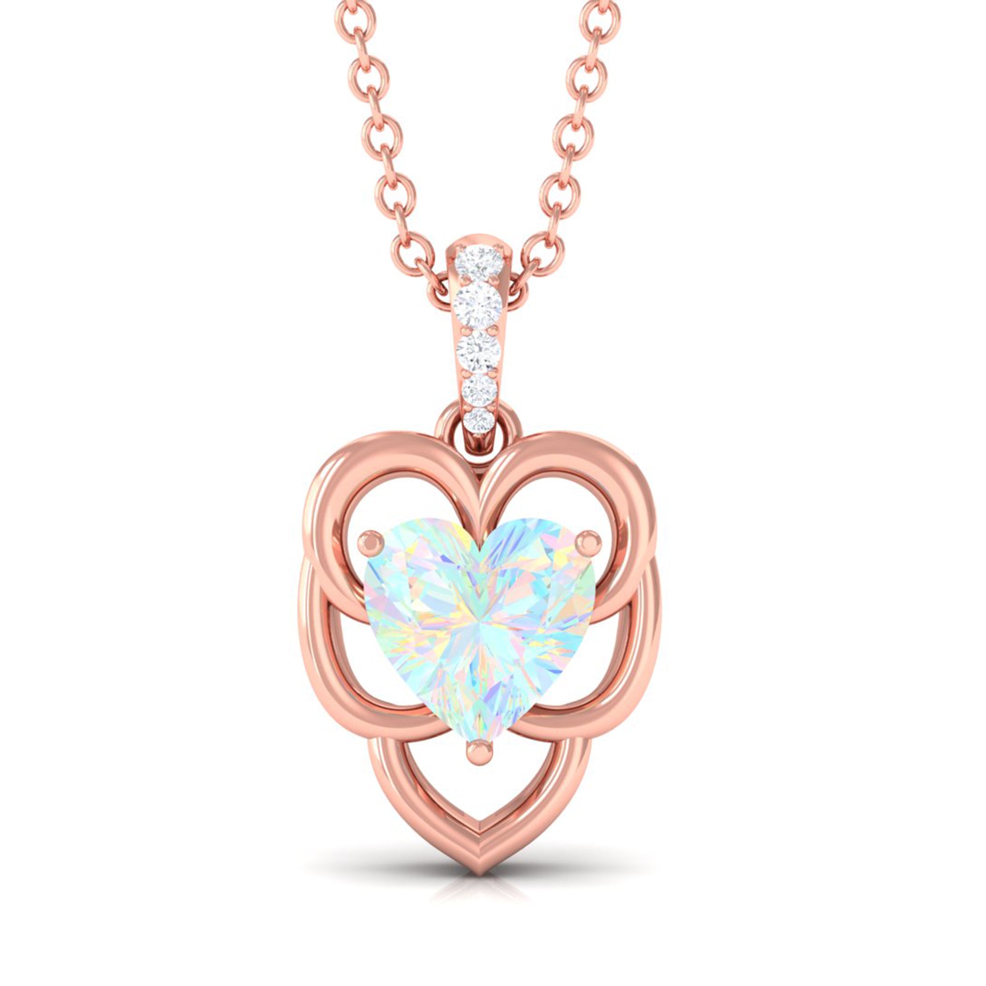 Heart Shape Ethiopian Opal Pendant Necklace with Diamond