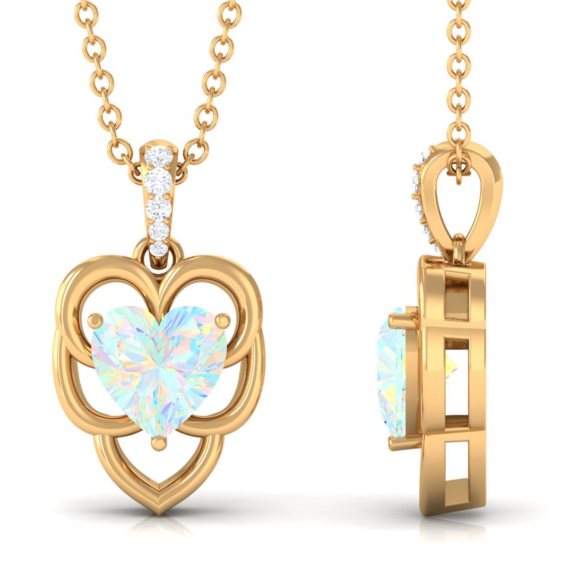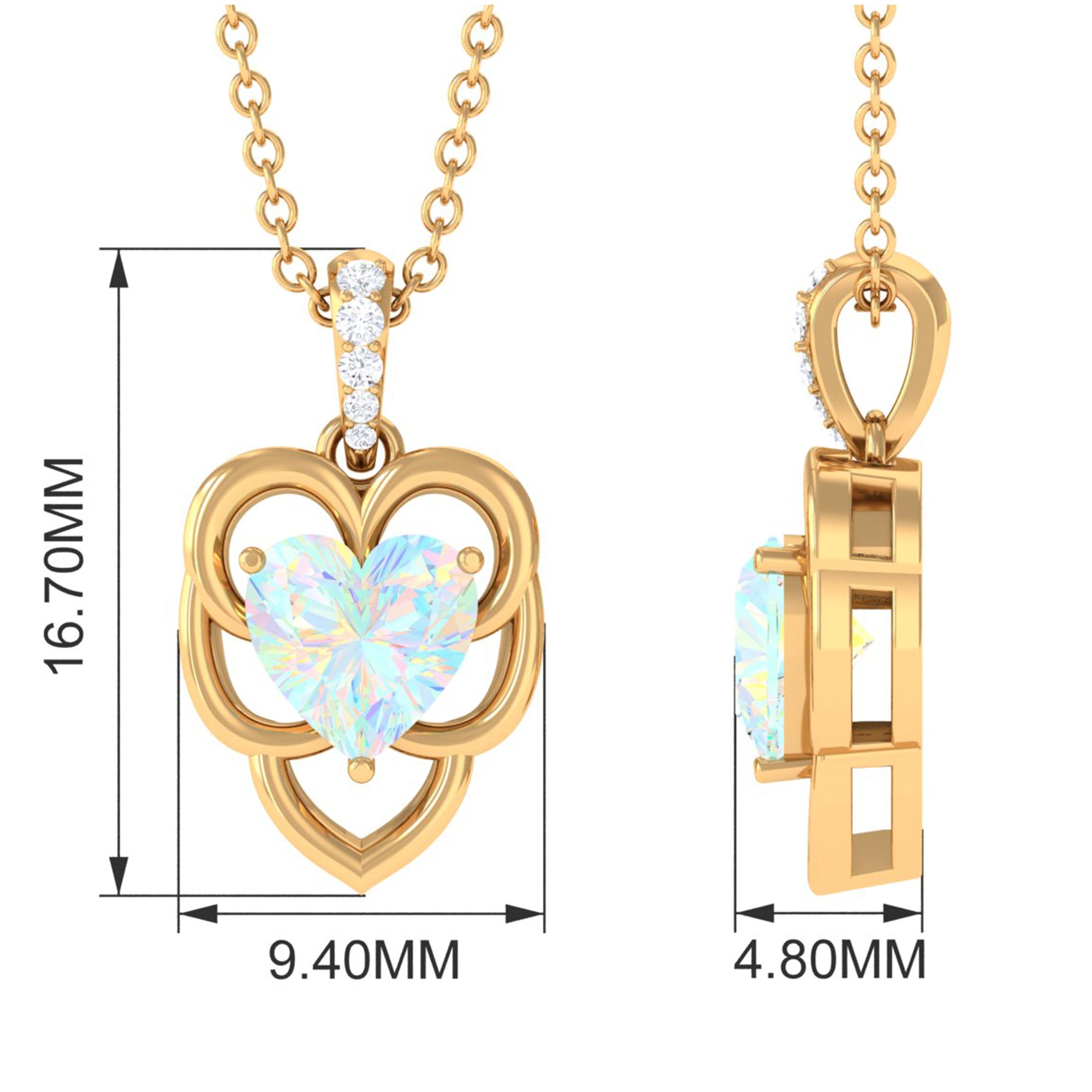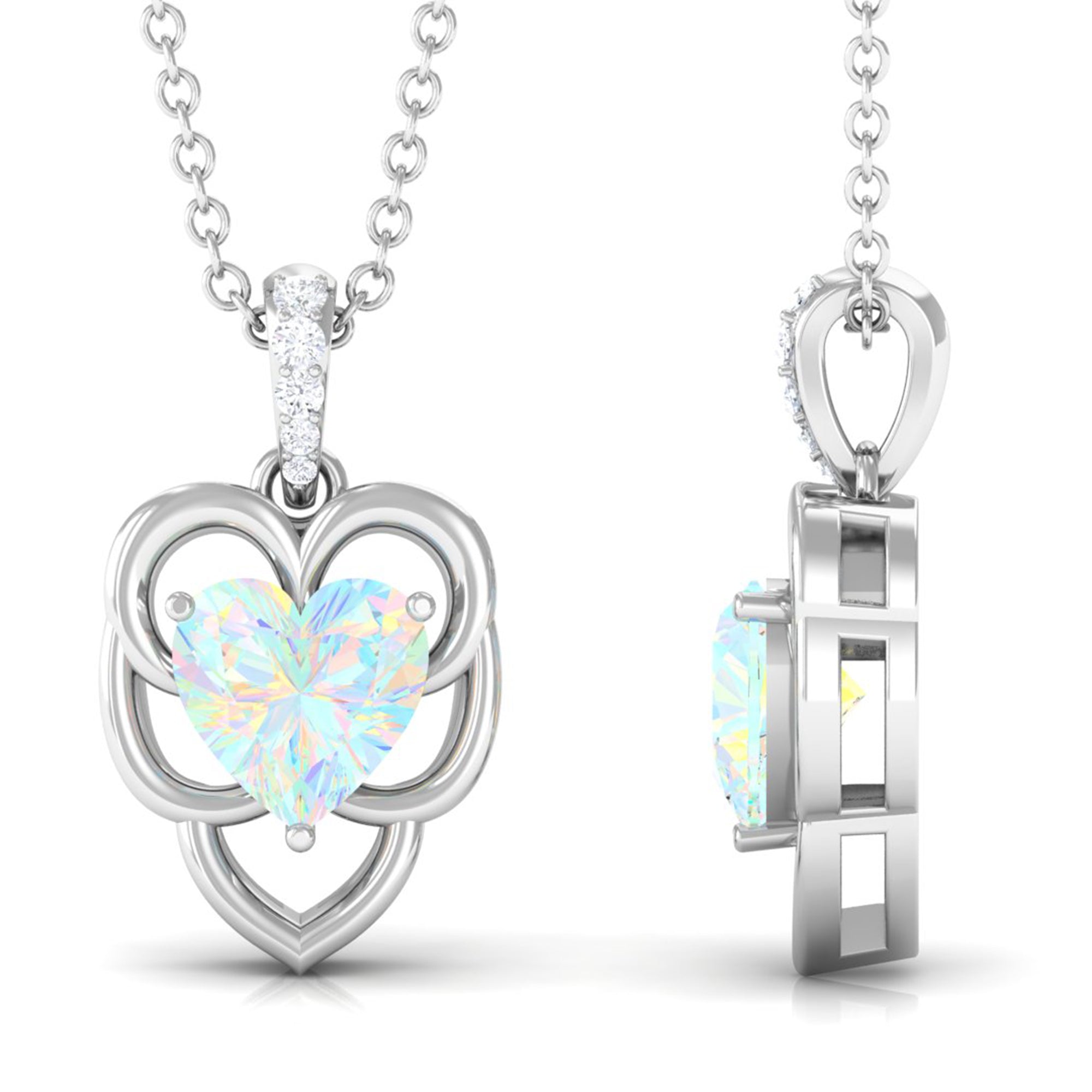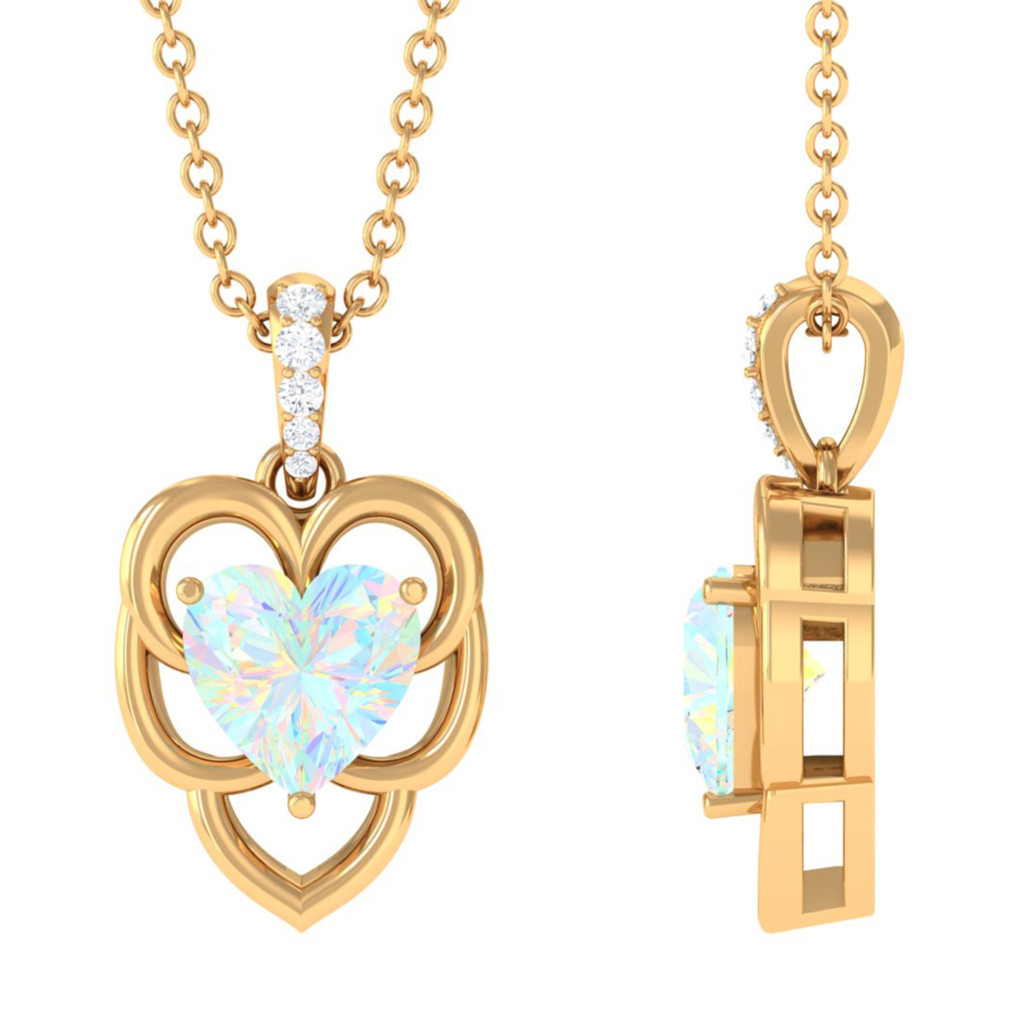 With its beautiful design, this Ethiopian Opal Pendant adds an everyday look to your statement as a promise to love yourself endlessly. The Heart Shape Ethiopian Opal in Prong Setting with Diamond and a stunning pattern of Opal Pendant, always be a special jewelry for your better half. Polish your looks with this Opal Heart Pendant Necklace.