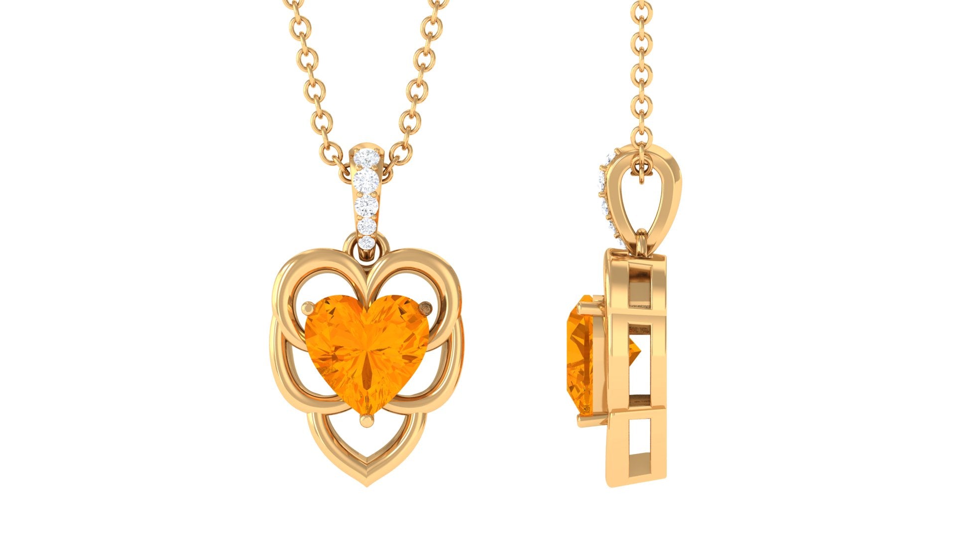 This exquisite leaf pendant is a true statement piece. The centerpiece is a stunning heart shape Fire Opal gemstone, expertly cut to showcase its beauty and elegance. The gold leaf design adds a touch of nature and organic beauty, while the Diamond accent bail adds a touch of glamour and refinement. This Fire Opal heart pendant is perfect for those who love to make a statement with their jewelry, and its a perfect gift for a loved one or a beautiful addition to your jewelry collection.