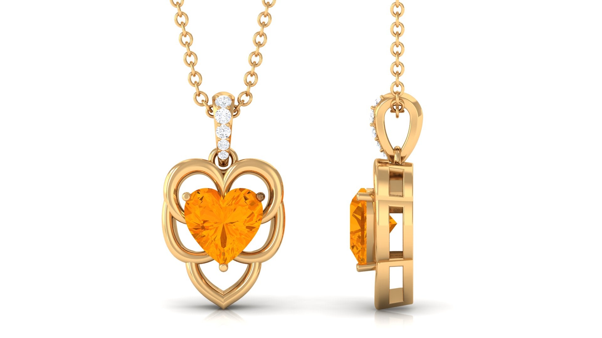 Heart Shape Fire Opal Leaf Pendant with Diamond Accent Bail