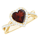Heart Shape Garnet Crossover Engagement Ring with Diamond