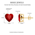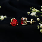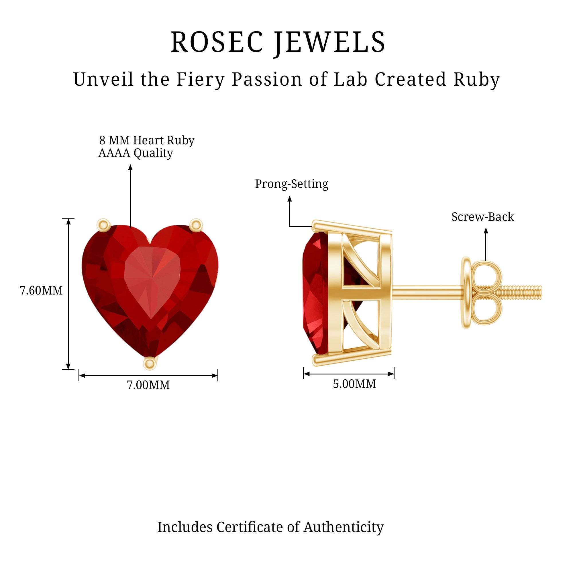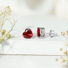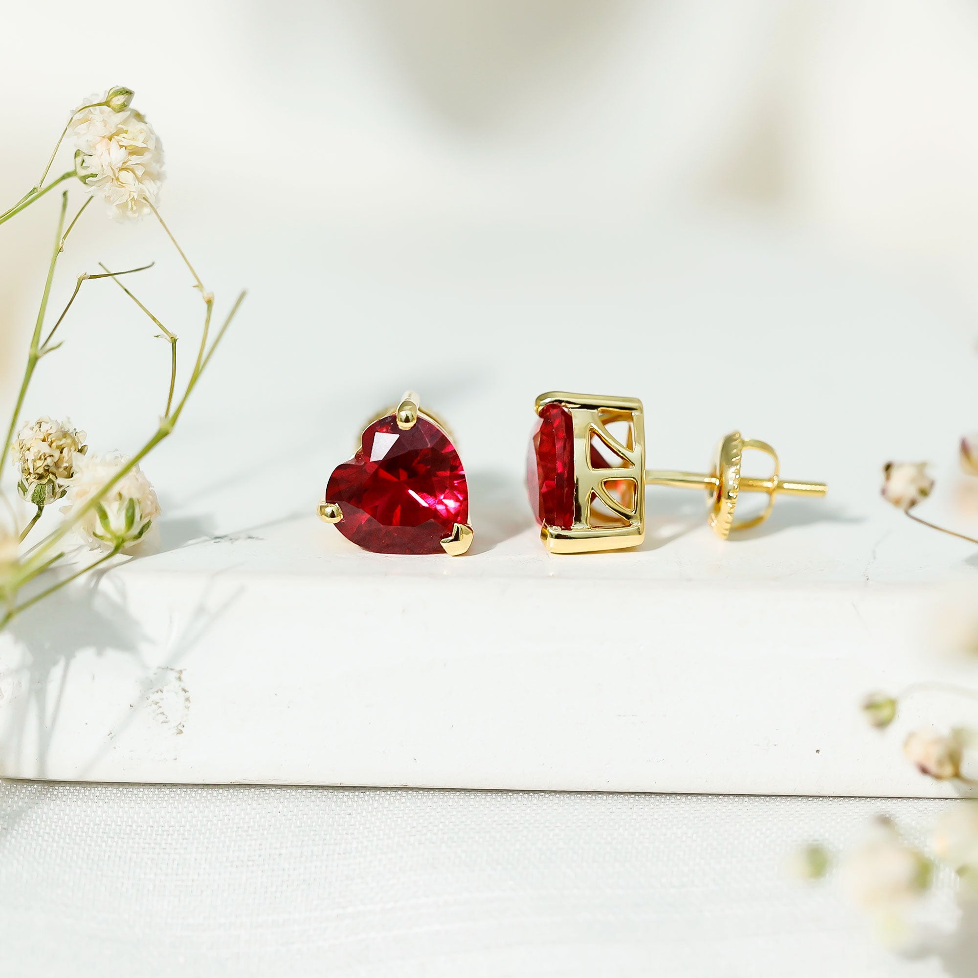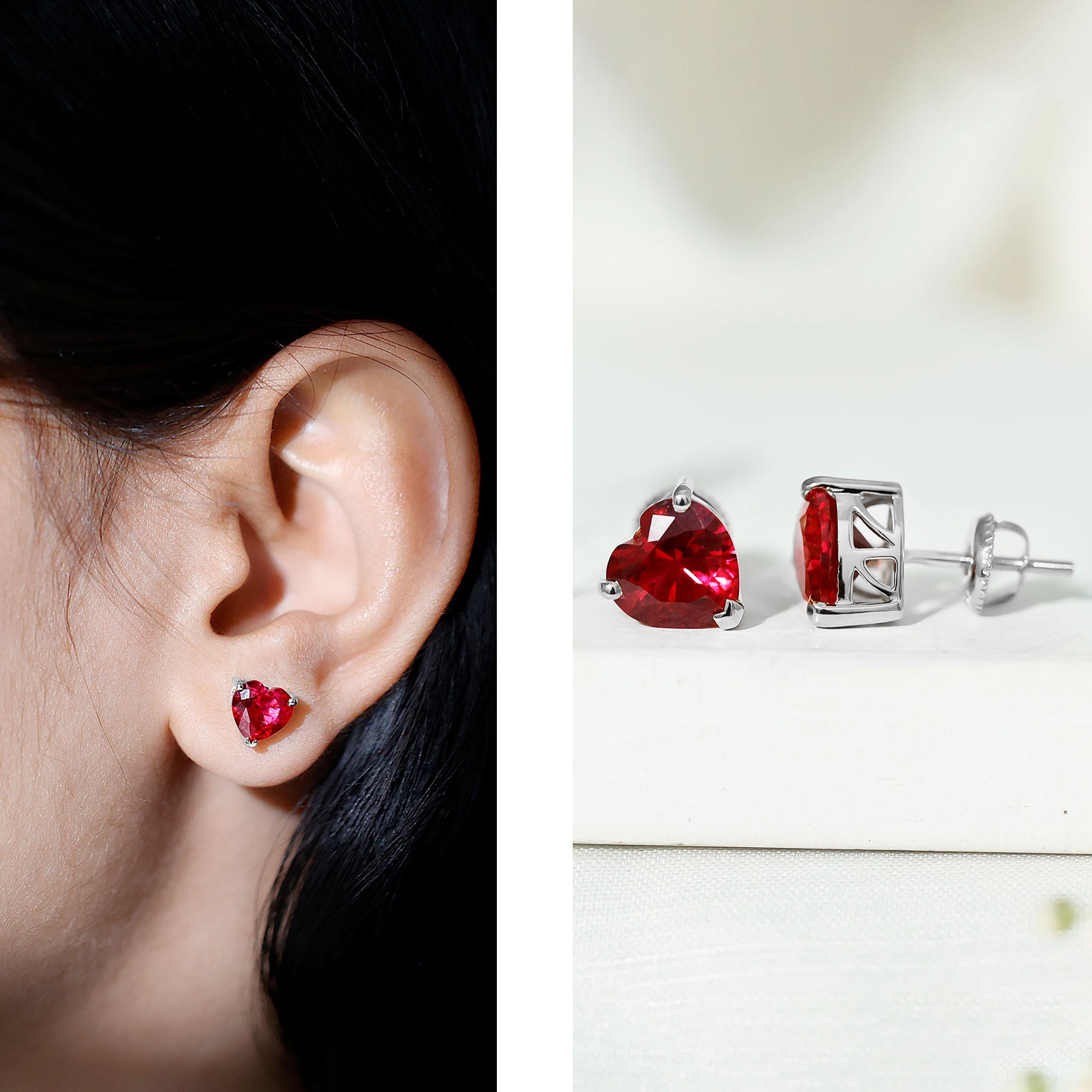 Designed to stand out, the design features an 8 MM heart shaped lab created ruby held securely in a 3-prong setting. The solitaire design keeps the focus on the ruby, allowing its shape and color to shine brightly. As the Ruby Stud Earrings catch the light, they create a lively glow that draws attention. Their heart shape adds a meaningful touch, making them perfect for someone who enjoys jewelry with emotion and character. Built for everyday comfort, the Heart Stud Earrings are lightweight and easy to wear. The secure screw back closures provide peace of mind, ensuring they stay in place throughout the day. Whether worn to work, on a casual outing, or at a special event, they fit effortlessly into many styles. Crafted with AAAA quality lab created rubies, the Solitaire Heart Earrings offer long-lasting color and brilliance while remaining an ethical choice. Presented in a jewelry box and ready for gifting, they make a thoughtful present for anniversaries, birthdays, or moments when words are not enough.