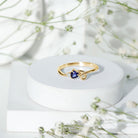 Make your proposal truly unforgettable with this Heart Promise Ring. The Heart-Shaped Lab-Created Blue Sapphire adorned beautifully with Moissanite on the twisted shank creates an elegant and captivating combination of gemstones that will undoubtedly steal everyones heart. The unique and aesthetic design of the Lab-Created Blue Sapphire Ring will make you fall for it. Cherish every moment with the mesmerising allure of these two gemstones making this ring a must-have in your jewelry collection.