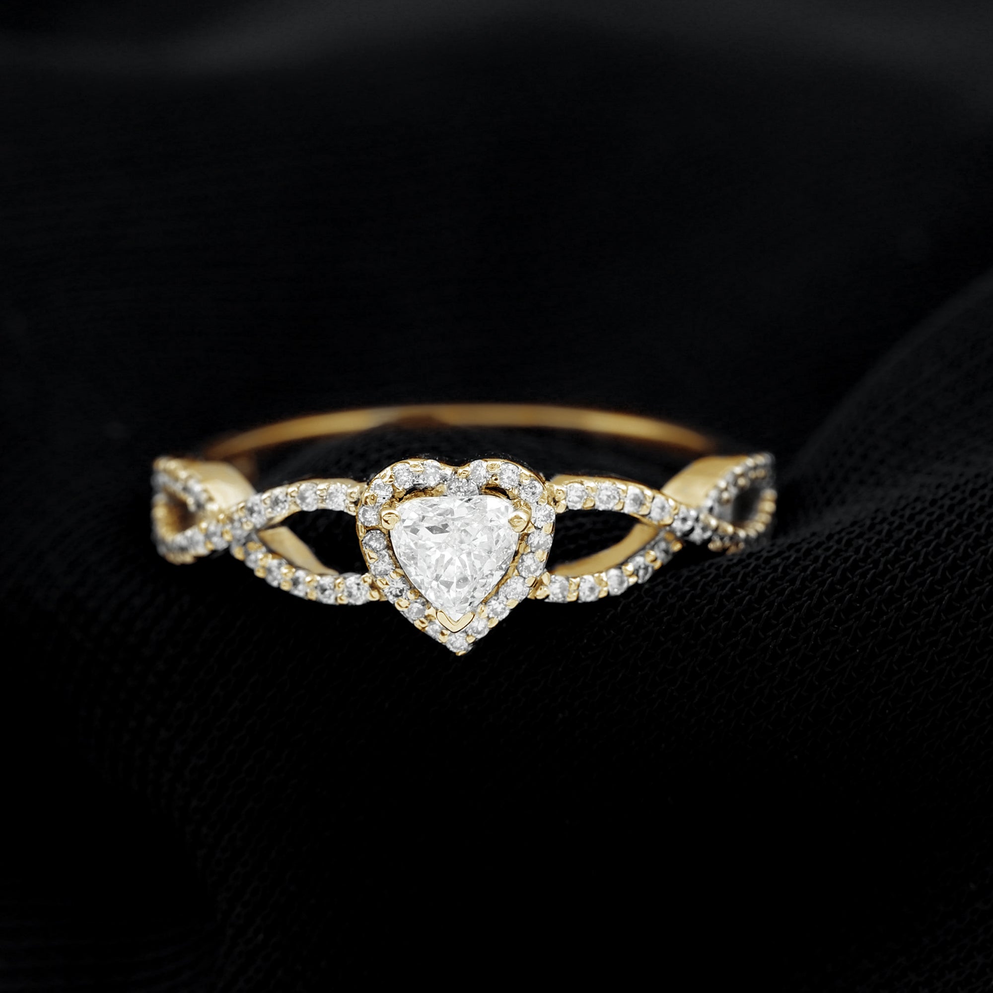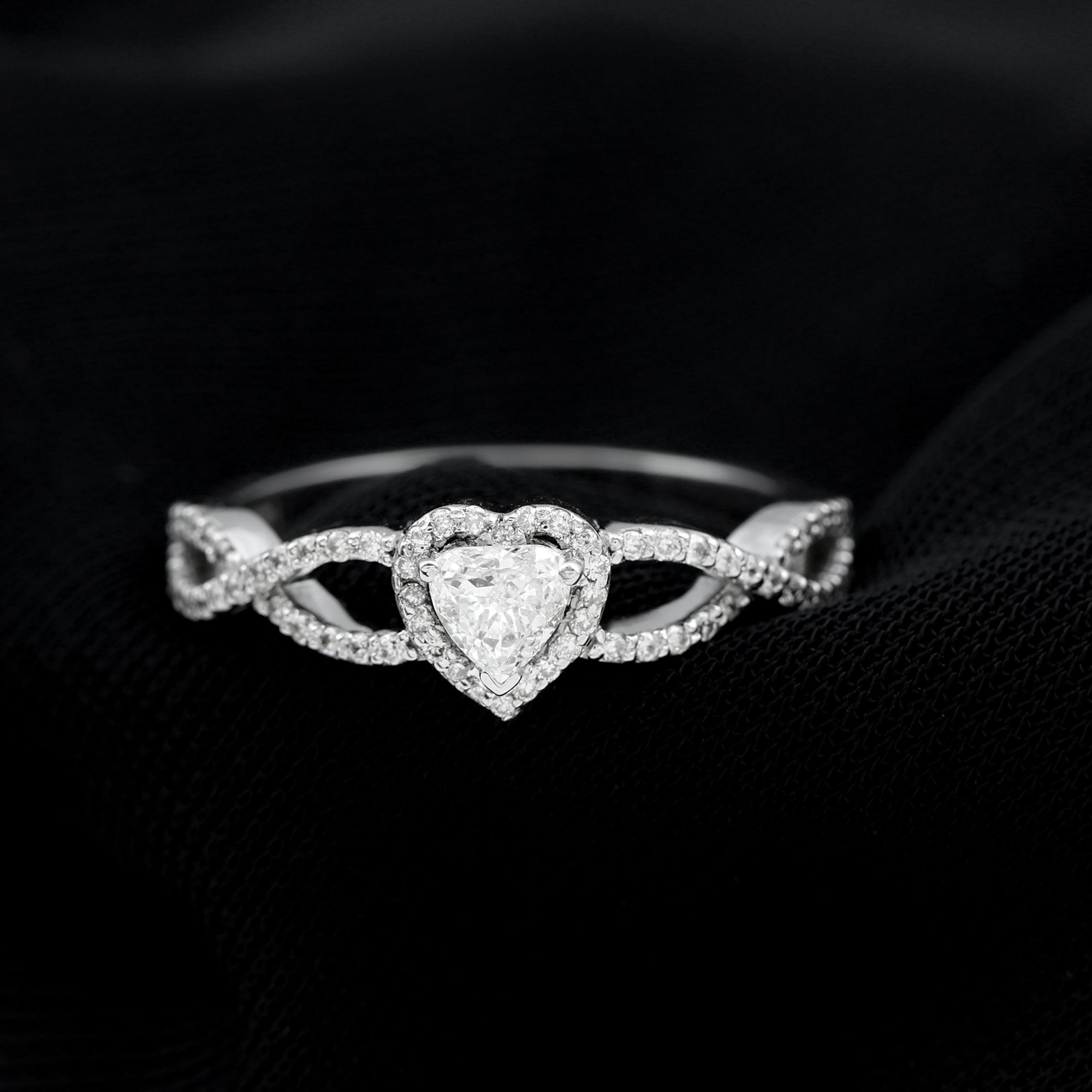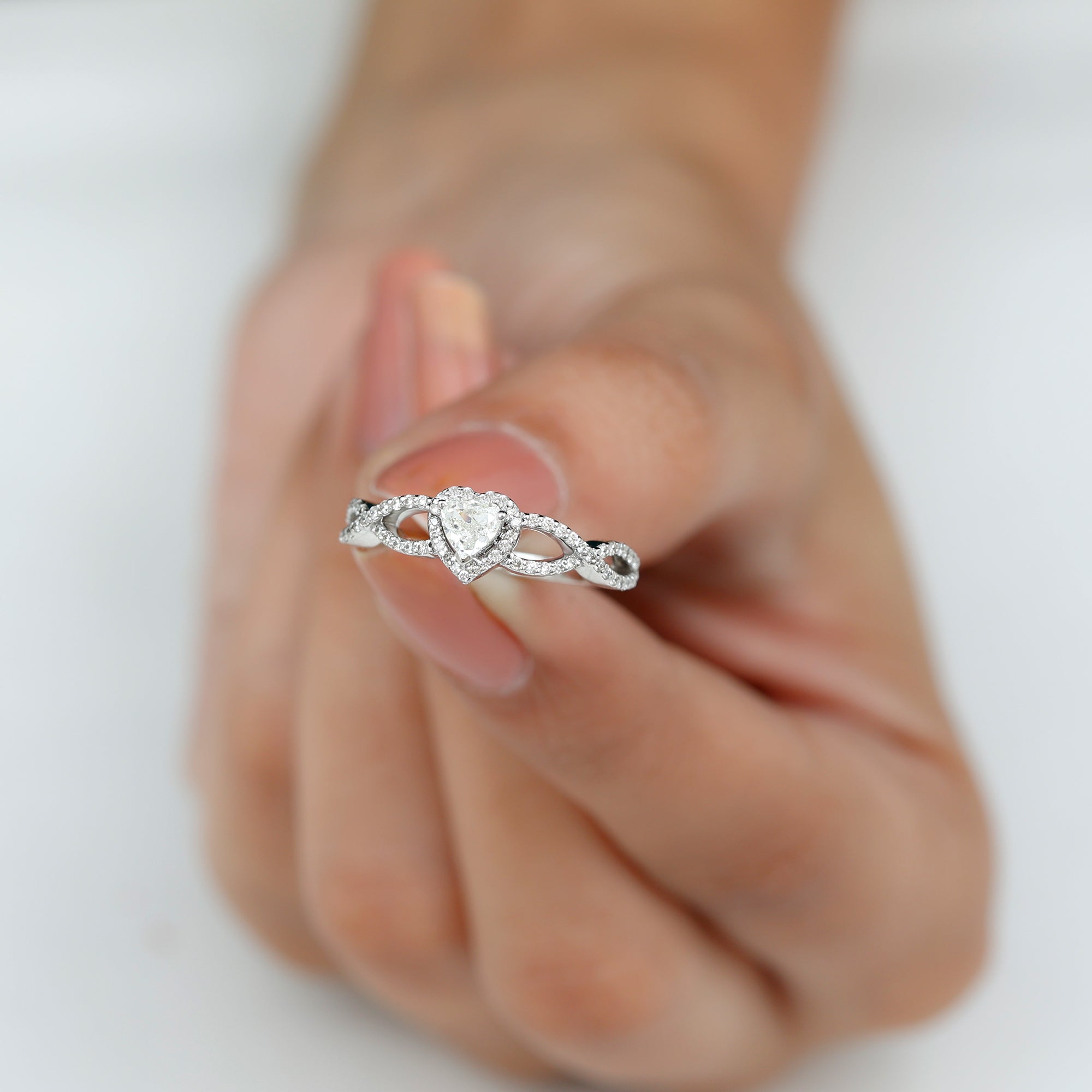 Elevate your love story to a symphony of style and commitment with this Heart Engagement Ring, that creates a harmonious melody of timeless beauty and eternal love. It features a 5 MM Heart Shape Lab Grown Diamond over the mesmerizing Criss Cross band studded with petite Lab Grown Diamond gemstones. A perfect choice to express your deep love and commitment.
