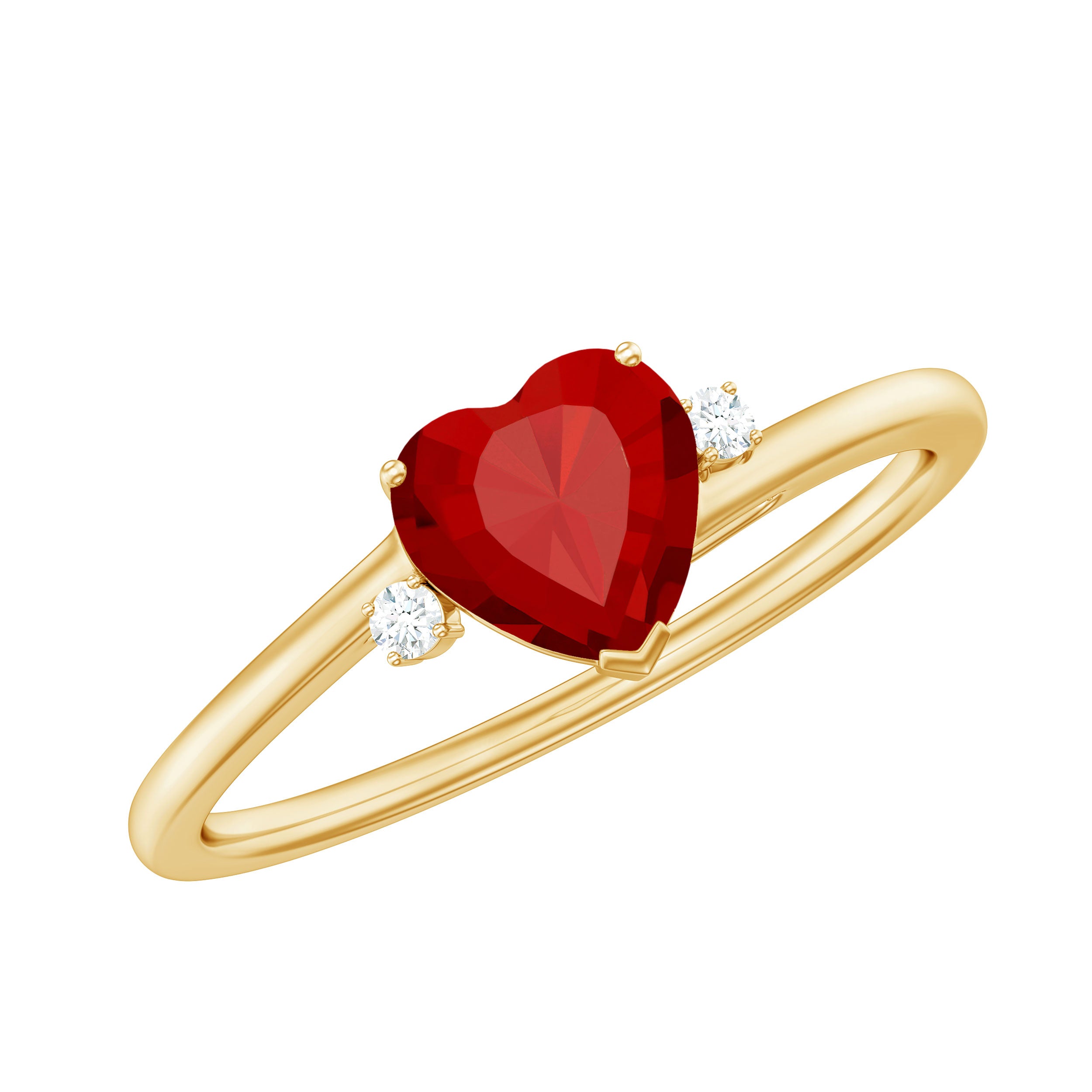 Heart Shape Lab Grown Ruby Solitaire Promise Ring with Diamond