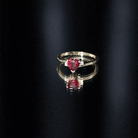 This stunning promise ring features a heart shaped created ruby stone in prong setting with Diamond on both sides. The vibrant, fiery red of the created ruby is accentuated by a small sparkling Diamond, adding just the right amount of glamour to the piece. This ring is perfect for those seeking a meaningful and sentimental way to express their love and commitment. Whether its for a special occasion or simply to show your affection, this ring is sure to be treasured by your loved one for years to come.