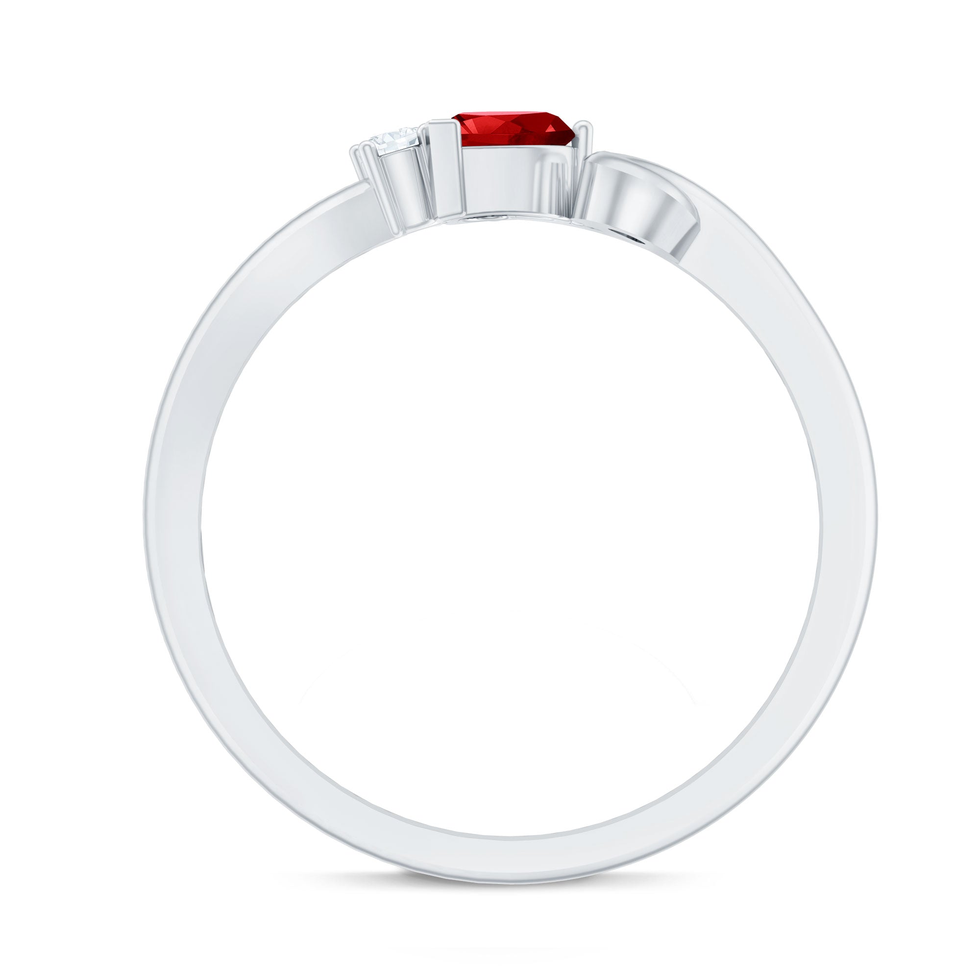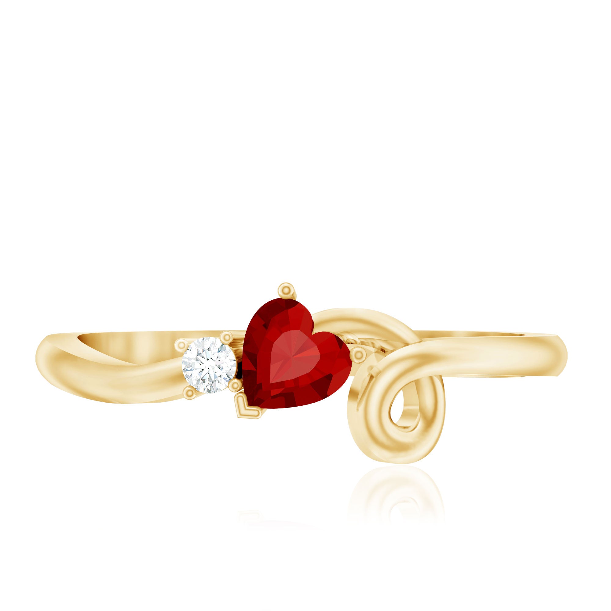 Embrace eternal love with our Heart Promise Ring, a ring as timeless as your love. Adorned with Heart-Shaped Created Ruby meticulously set in prong setting along with Round Moissanite embracing the beauty of twisted shank. Make every moment sparkle with the brilliant touch of this Created Ruby Ring showcasing both elegance and sophistication. If you are looking for a unique piece to enchant her eyes then grab this Ruby Heart Ring crafted with proper care and precision.