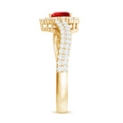Celebrate love in its most romantic form with this Lab Grown Ruby Engagement Ring. Designed to capture the feeling of devotion, the Bypass Ring features a 6 MM heart shaped ruby at the center, beautifully set on a graceful bypass band, where two arms gently curve around the gemstone, creating a sense of unity and connection. A halo of shimmering moissanite stones surrounds the ruby, enhancing its sparkle and giving the Heart Engagement Ring a radiant glow. Additional moissanites along the band add brilliance from every angle, reflecting light beautifully with each movement. The mix of the vivid ruby and the clear moissanites creates a breathtaking balance of shine. Crafted with precision and artistry, this Heart Shaped Ruby Ring offers a modern take on a classic romantic design. Its center stone and fluid band make it a meaningful choice for expressing everlasting love. Perfect for engagements, anniversaries, or special celebrations, this Lab Grown Ruby and Moissanite Ring is a symbol of two hearts coming together. Elegant, thoughtful, and full of emotion, it is a piece that will always hold a special place in her heart.