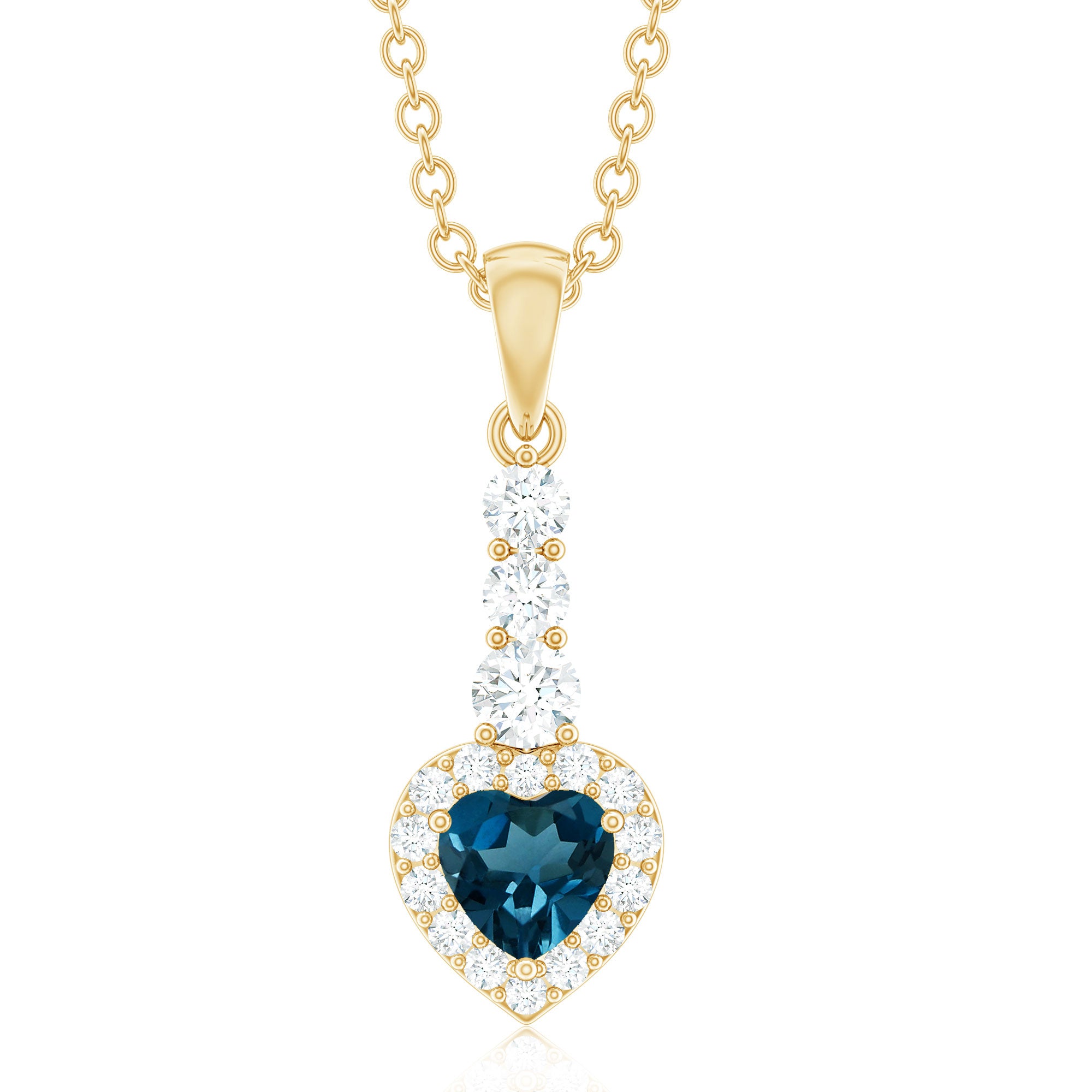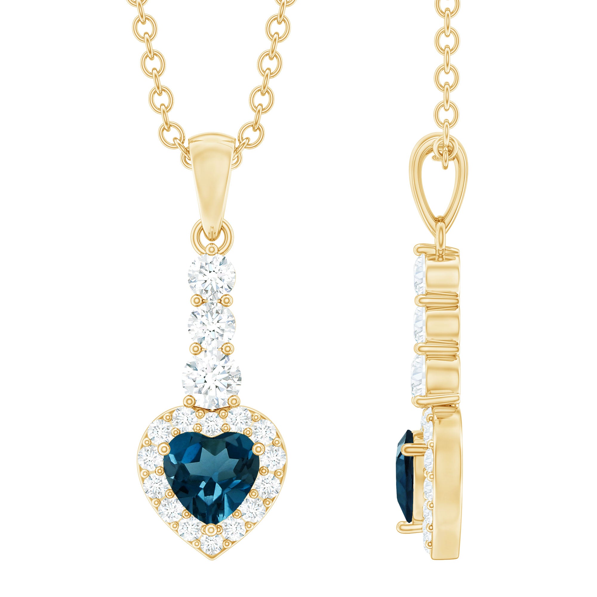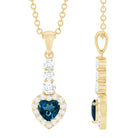 Heart Shape London Blue Topaz Drop Pendant with Diamond
