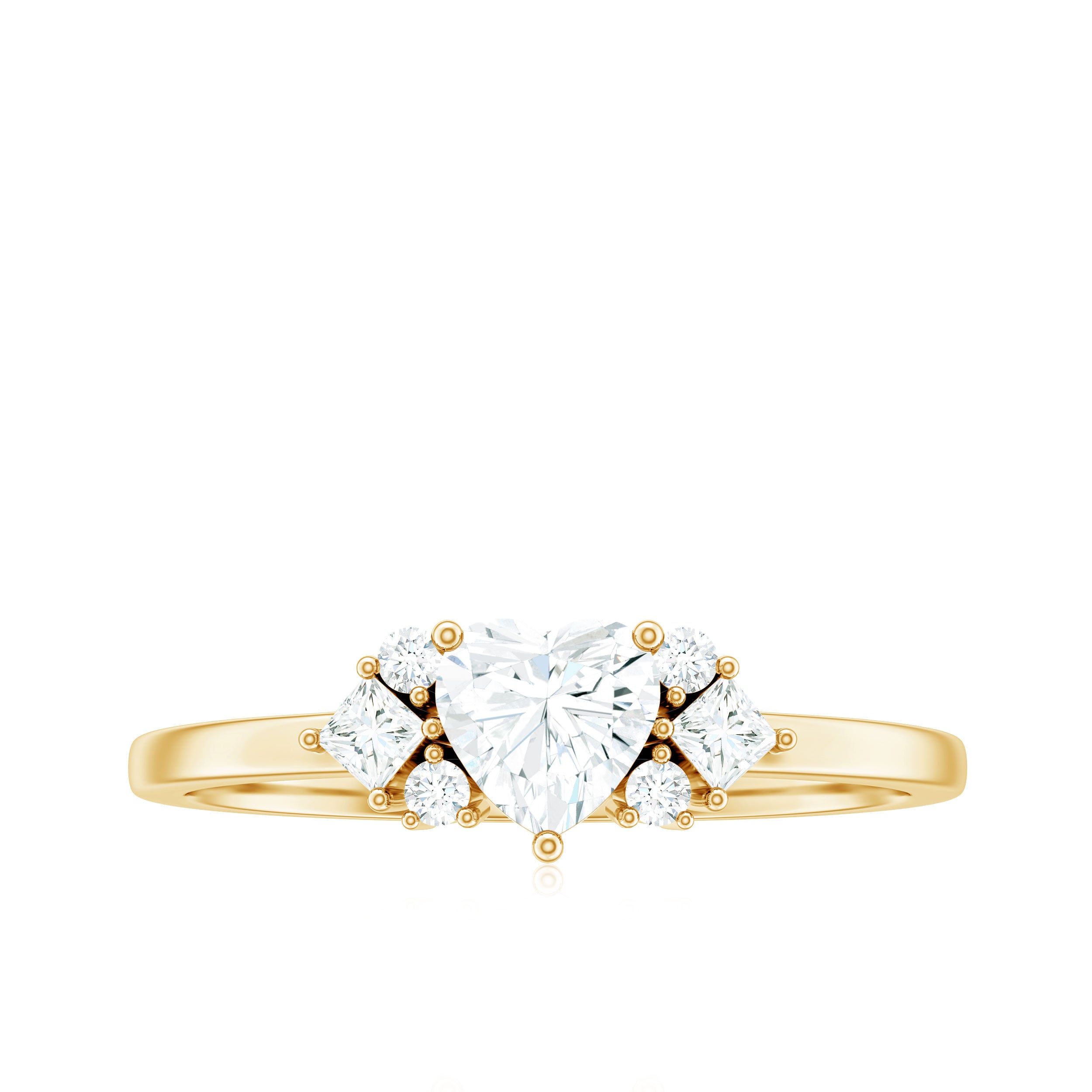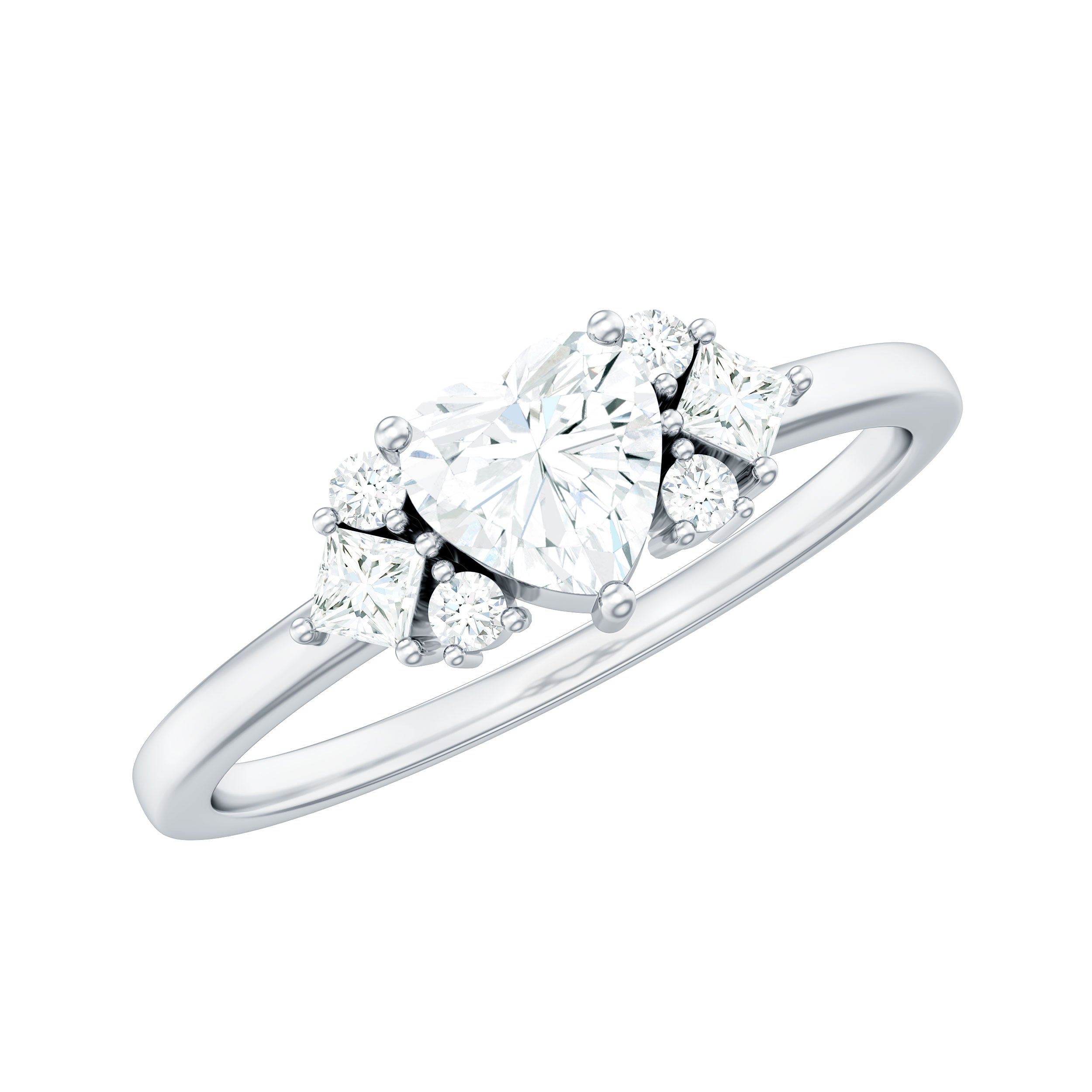 Heart Shape Moissanite Engagement Ring with Cluster Stones