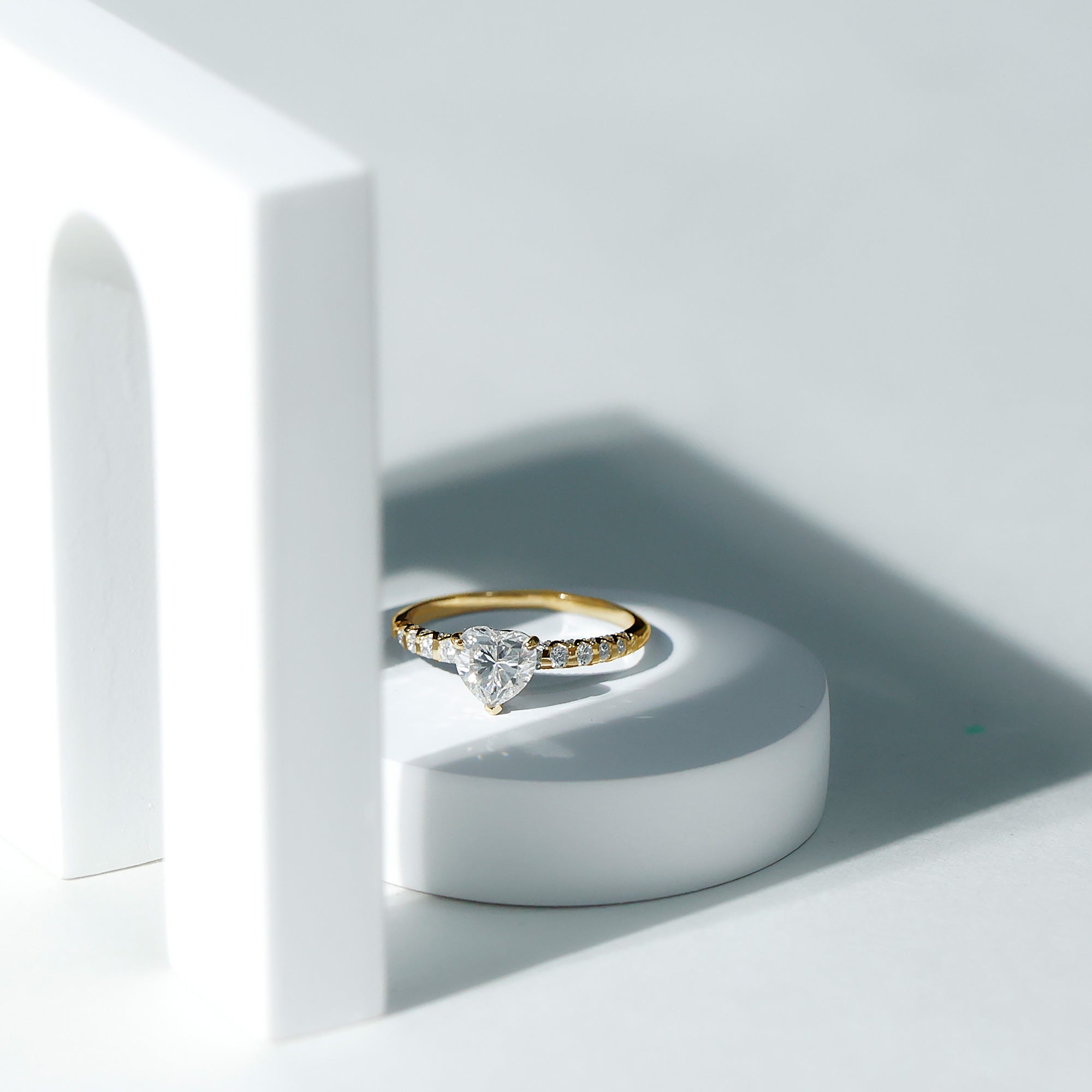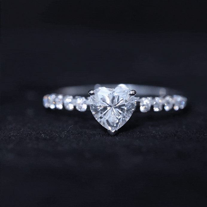 Heart Shape Moissanite Solitaire Engagement Ring With Side Stones