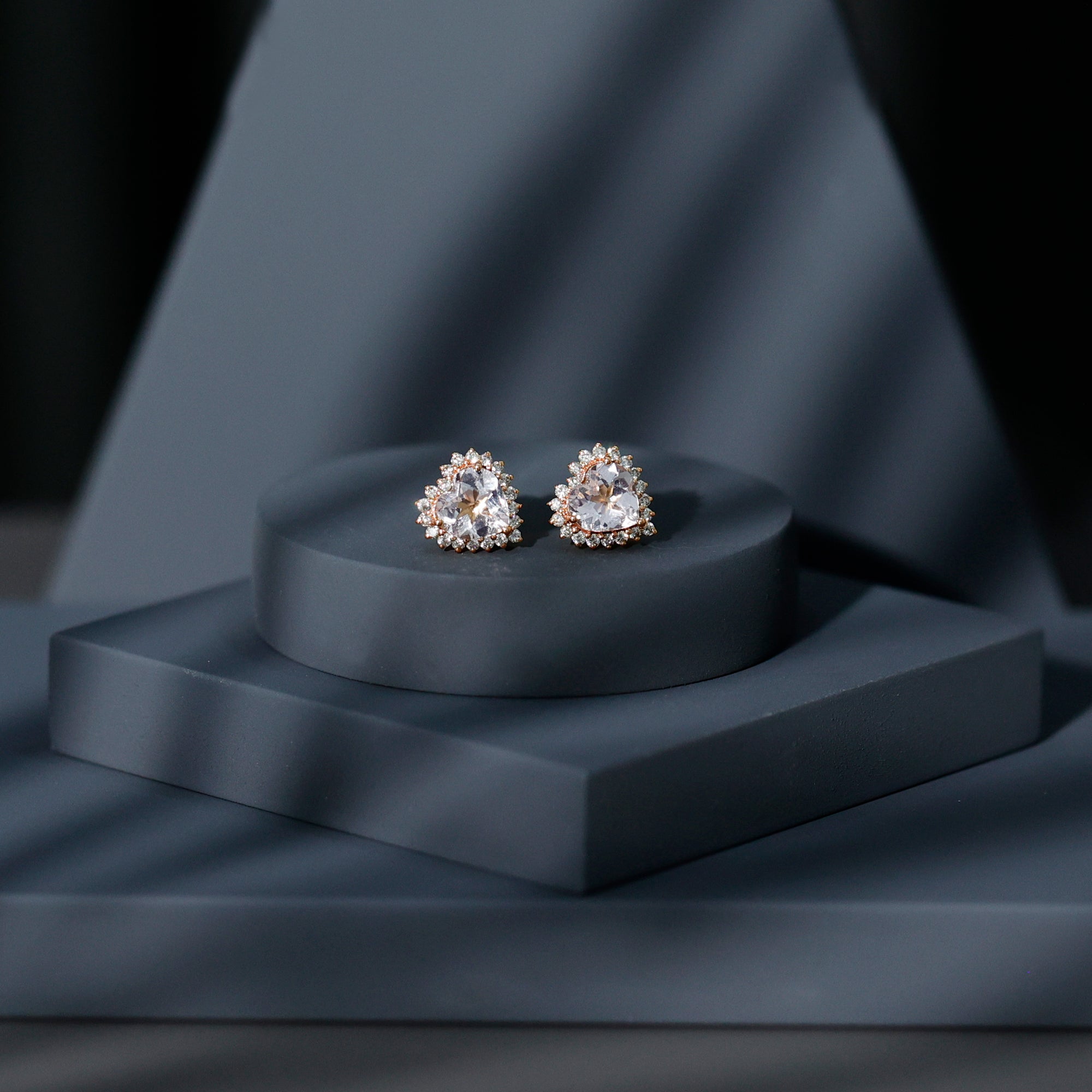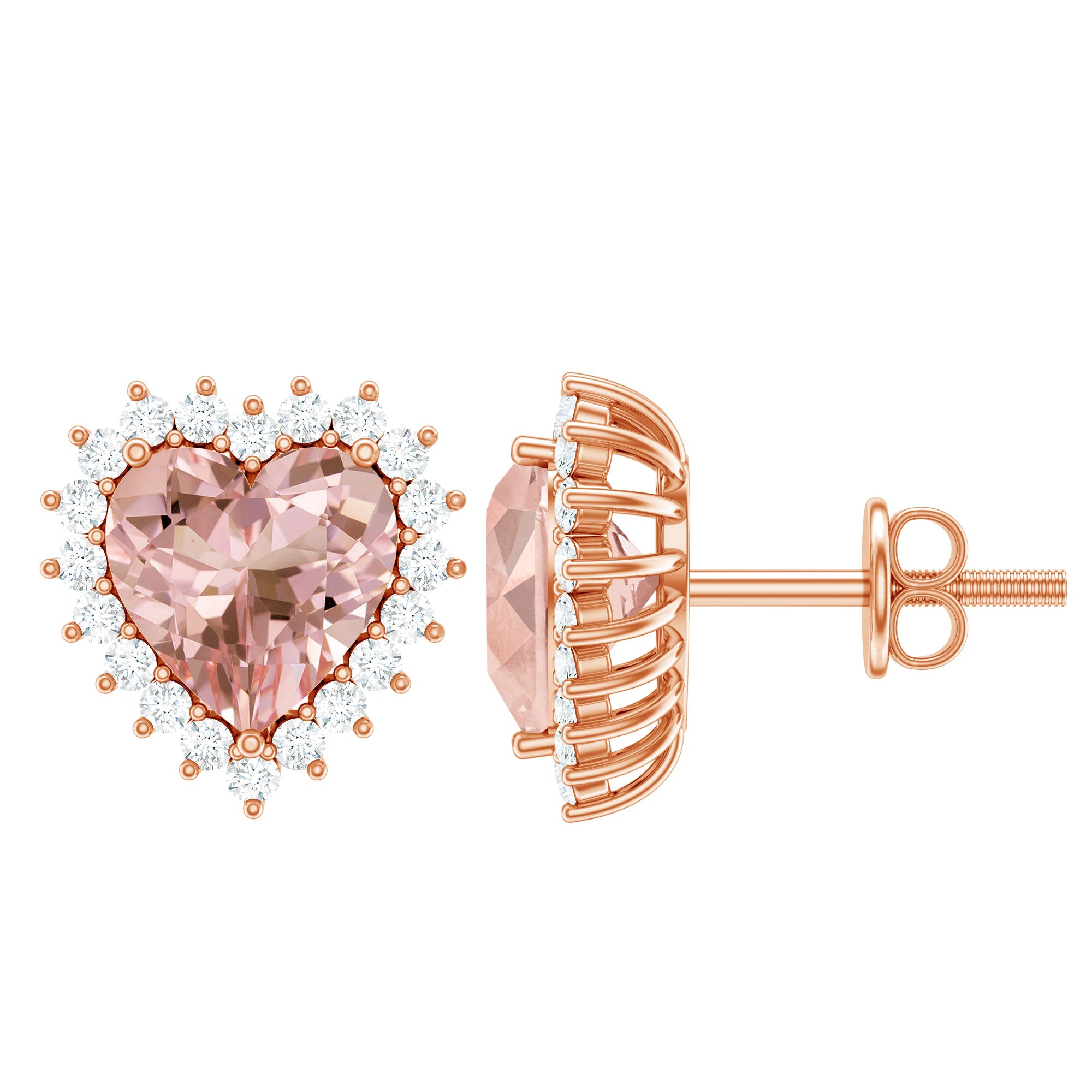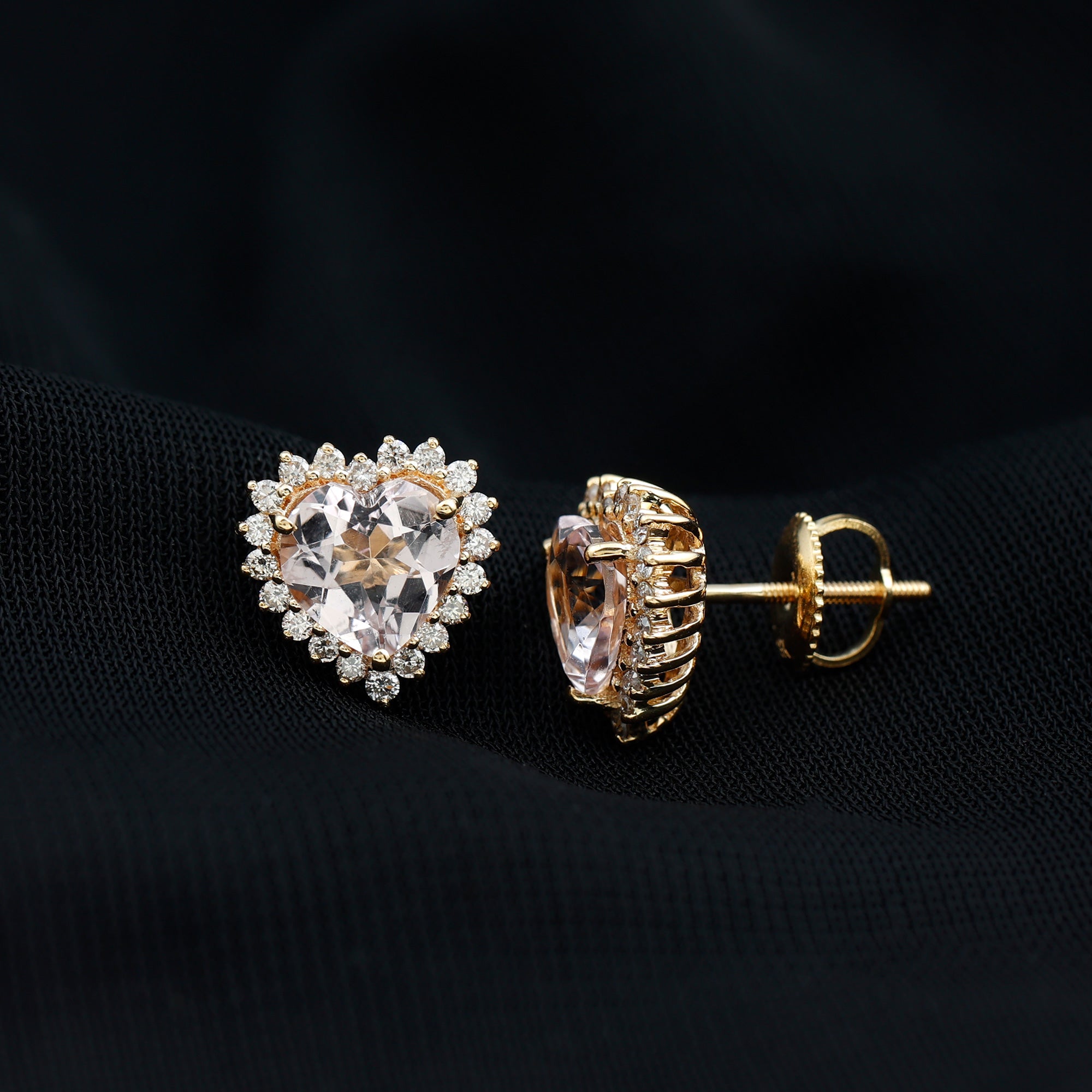 Heart Shape Morganite Halo Stud Earrings with Diamond