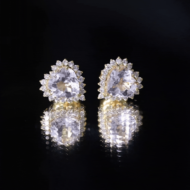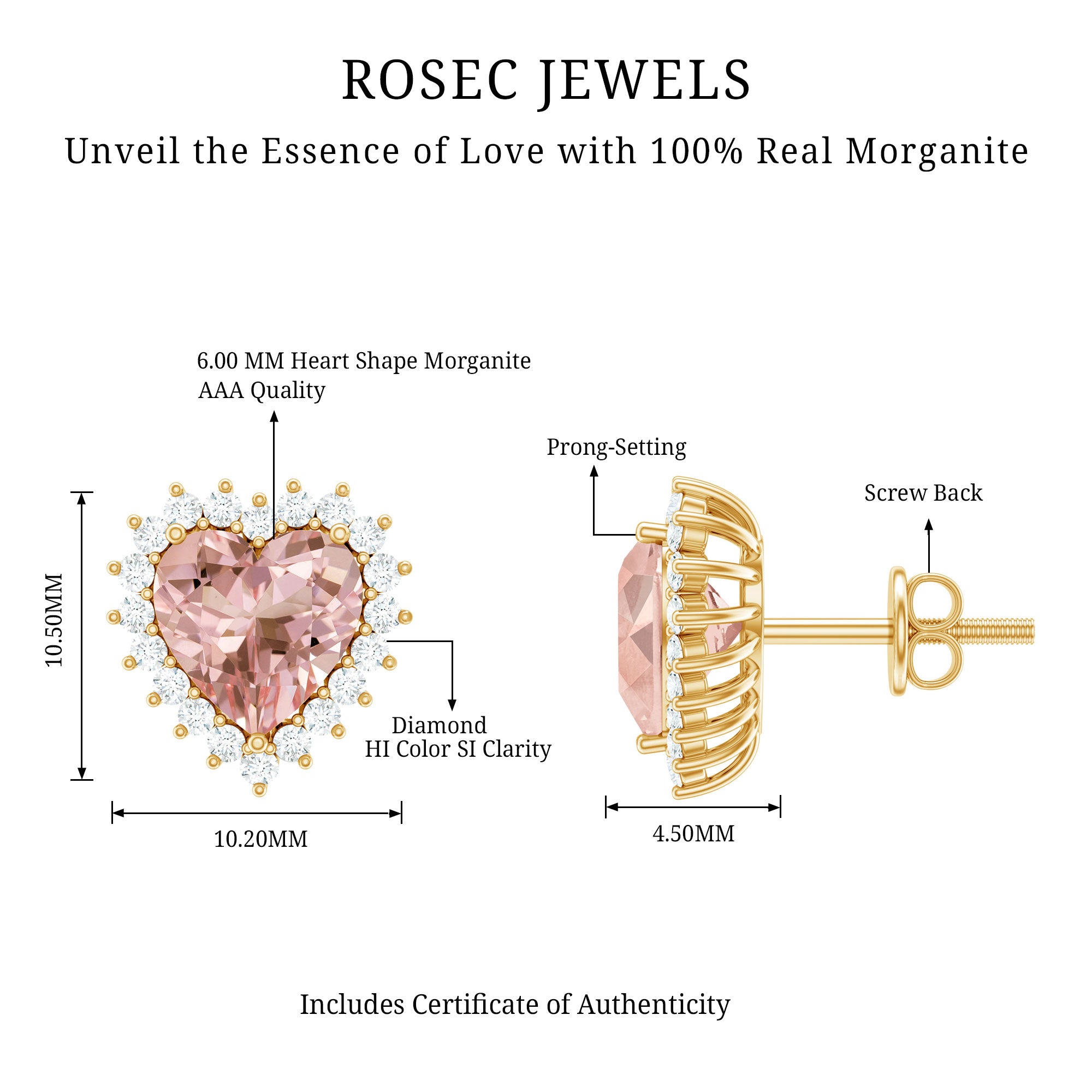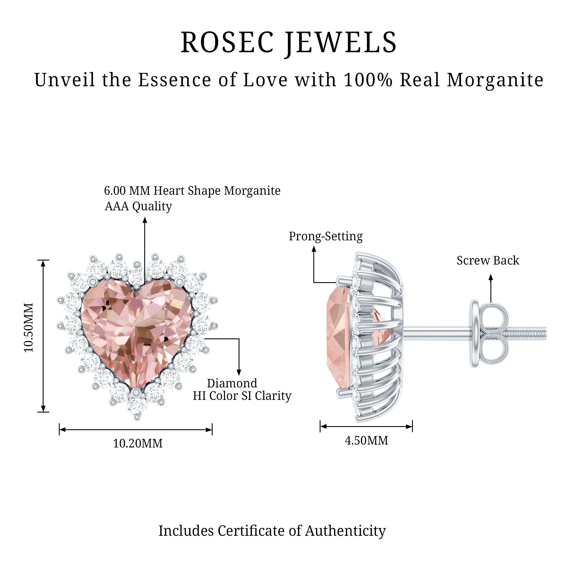 Heart Shape Morganite Halo Stud Earrings with Diamond