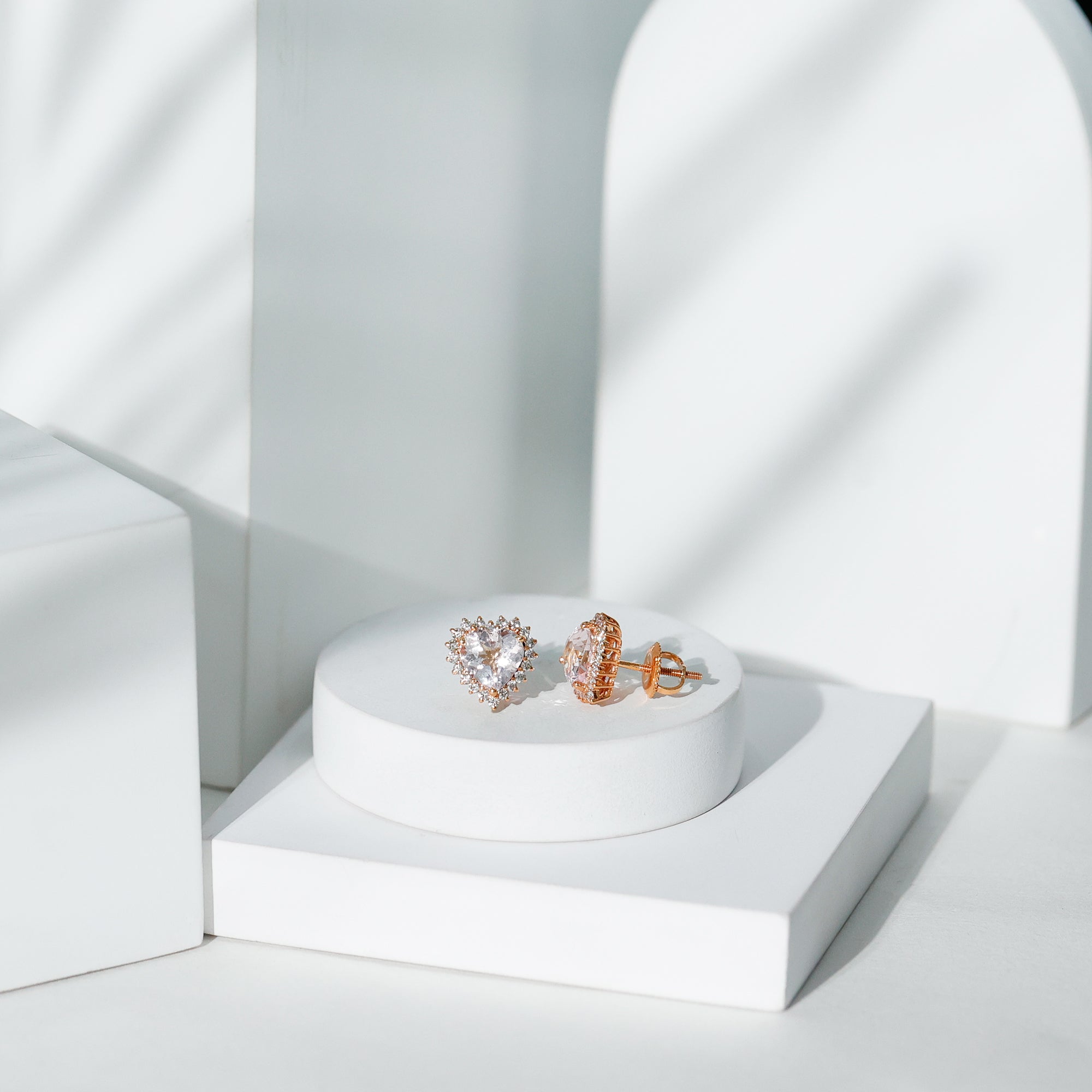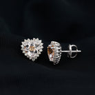 Turn heads and make a bold statement with these striking Stud Earrings. The centerpiece of each earring is a dazzling 7 MM Heart Shape Morganite Solitaire, elegantly enhanced by a halo of sparkling Round Brilliant Diamond. These exquisite Statement Stud Earrings are designed to captivate and leave a lasting impression wherever you go.