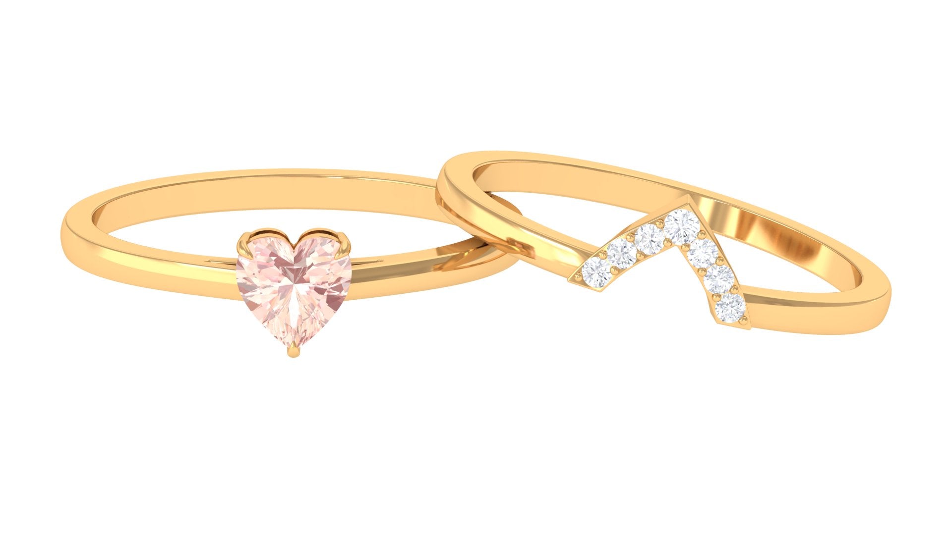 Heart Shape Morganite Solitaire Ring Set with Diamond