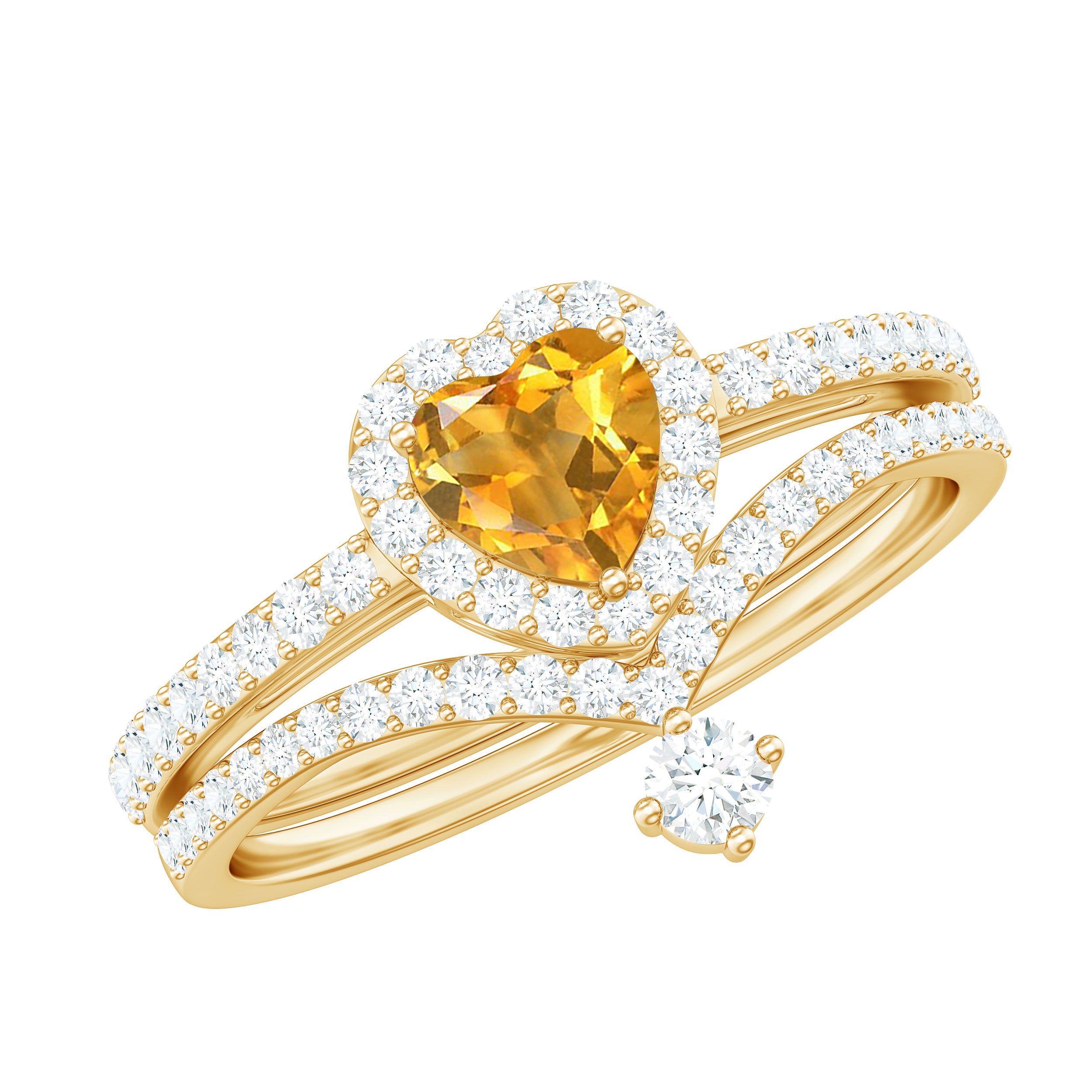 Heart Shape Natural Citrine Ring Set with Moissanite