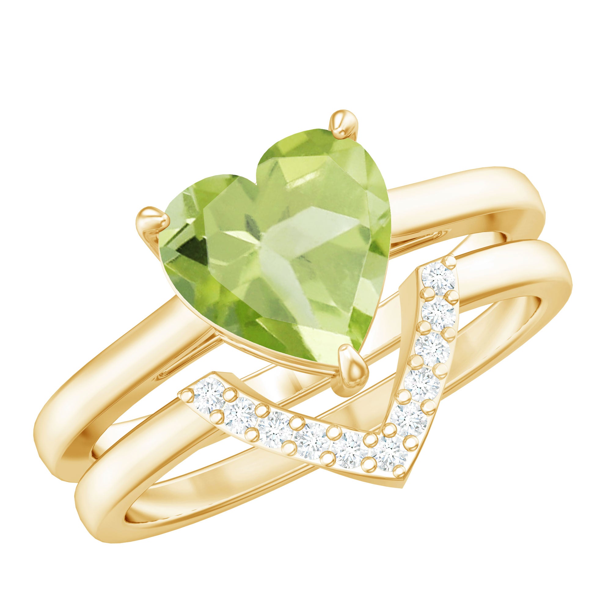 Capture the essence of love with this Heart Shape Peridot and Diamond Ring Set, a symbol of affection and devotion, crafted to sparkle eternally.