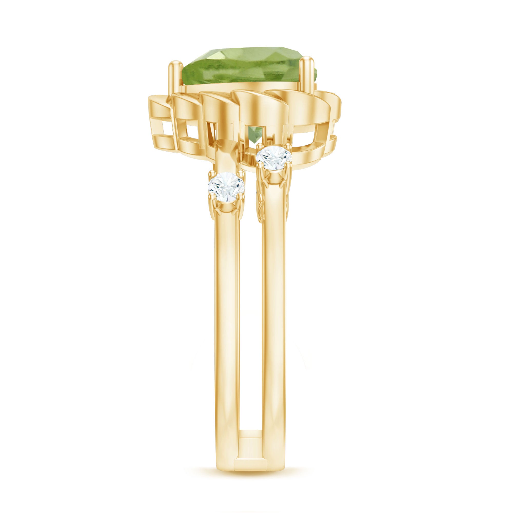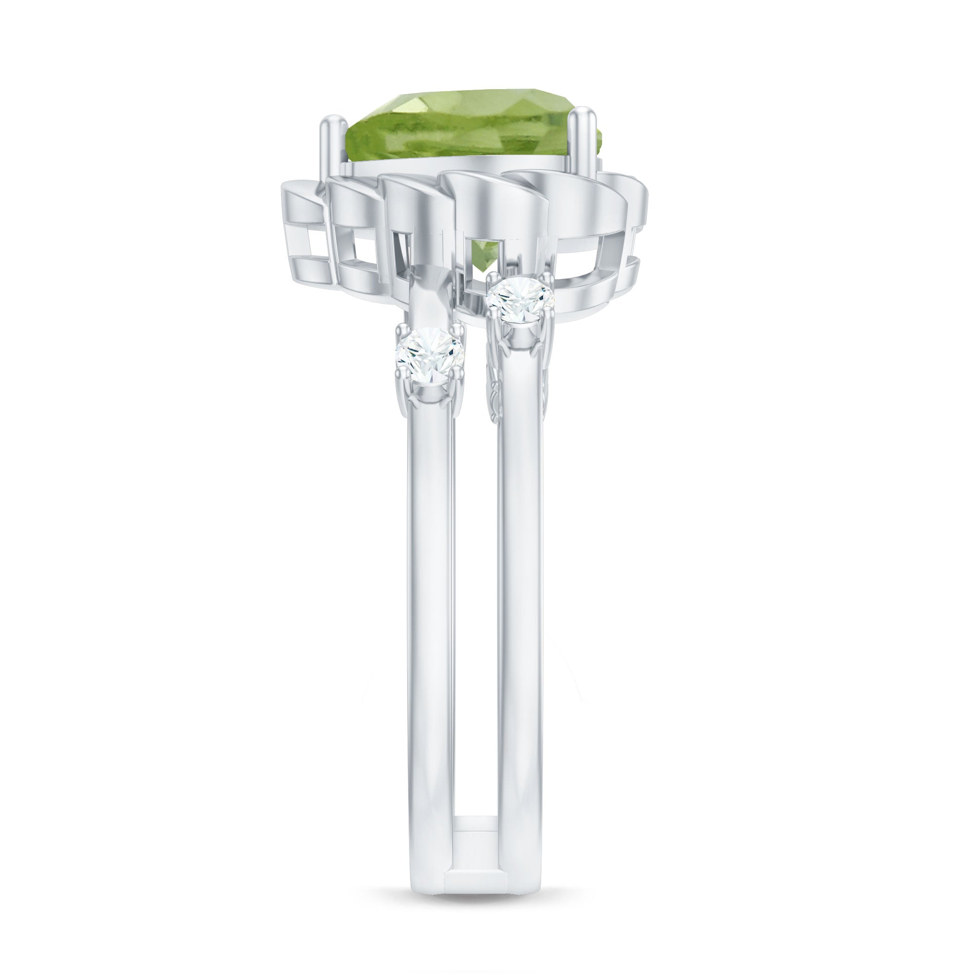Heart Shape Peridot Solitaire Band Ring with Diamond Stones