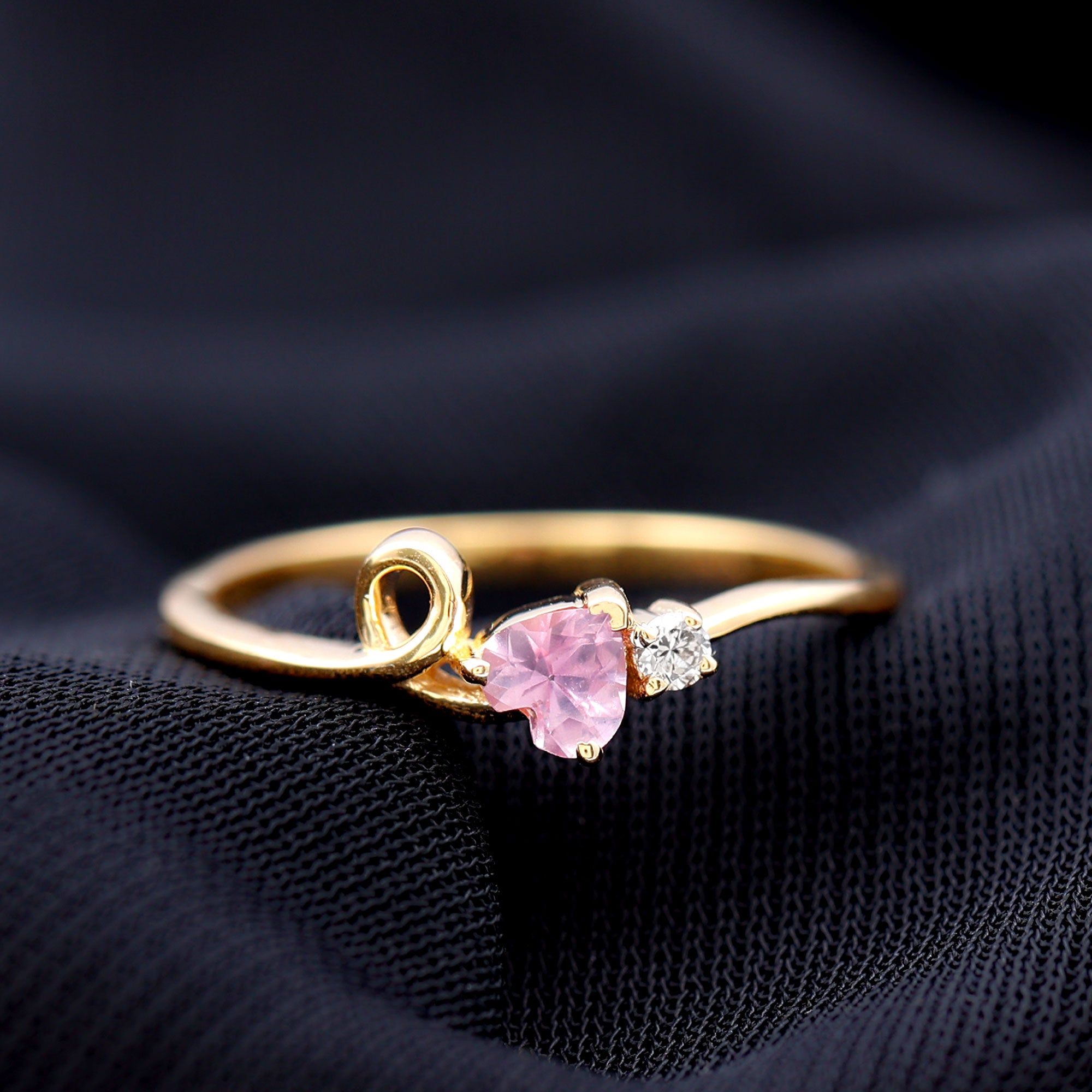 Witness the resplendent beauty of our Heart Promise Ring, a symbol of love and commitment designed exclusively for women. This enchanting ring features a heart-shaped pink sapphire cradled gracefully in a secure prong setting, complemented by the dazzling brilliance of diamond. The ring boasts an exquisitely crafted twisted band, expertly fashioned from top-quality metal to ensure both durability and timeless elegance.