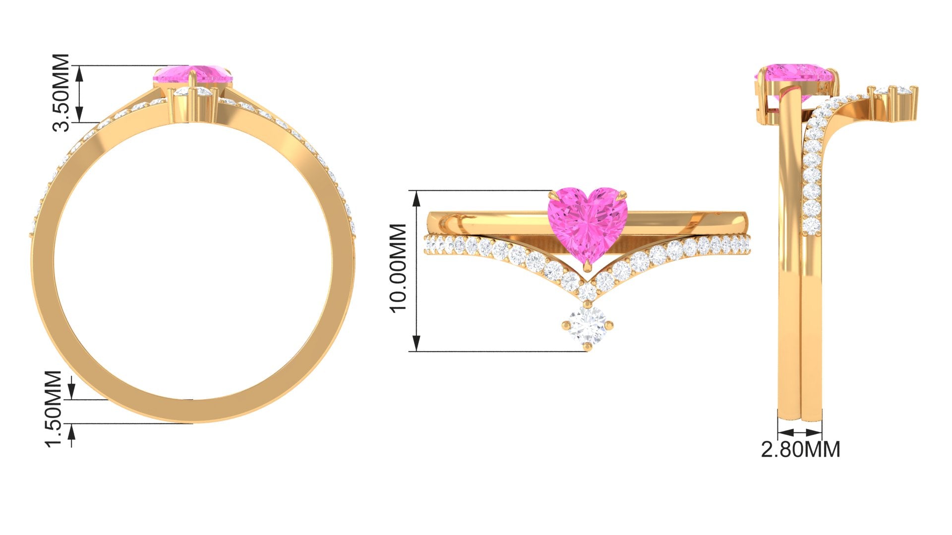 Embrace elegance with this Heart Shape Pink Sapphire Stackable Ring Set. The Diamond gemstones add a touch of brilliance to this romantic Ring Set.