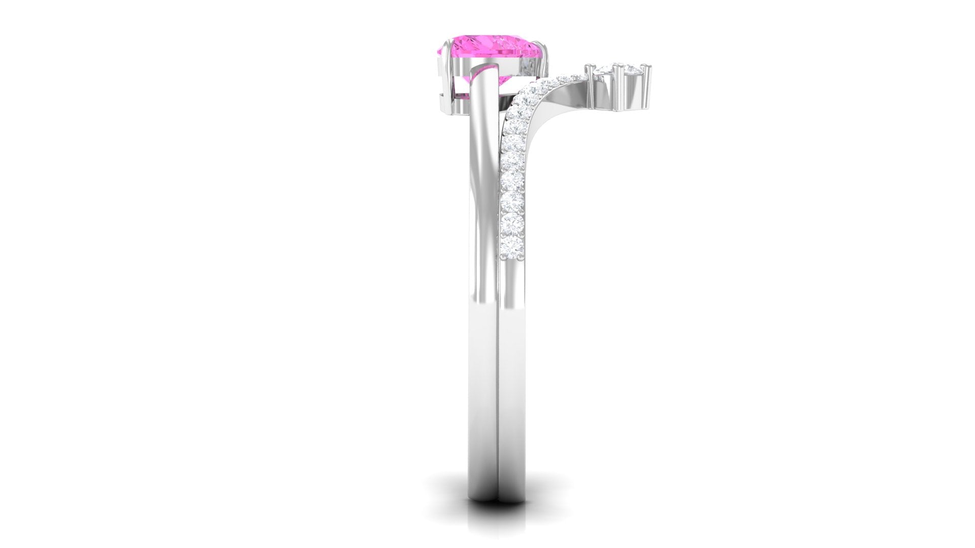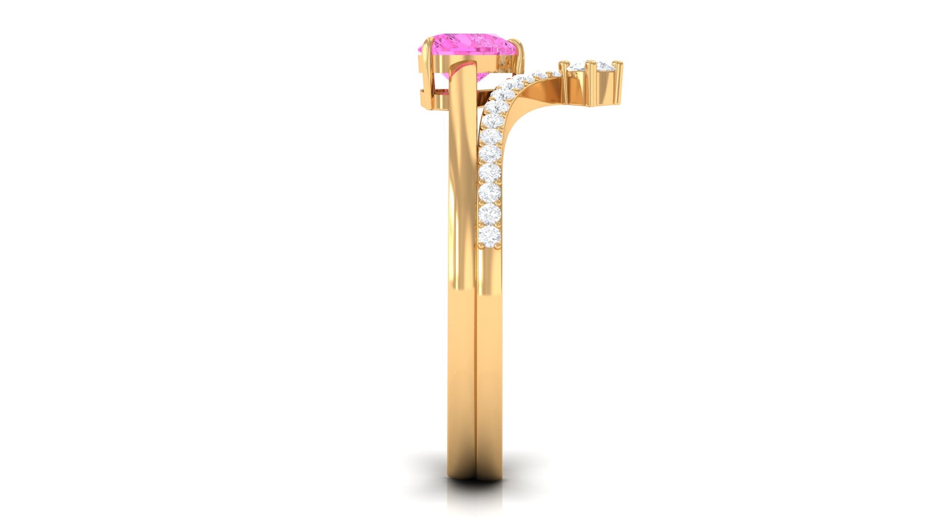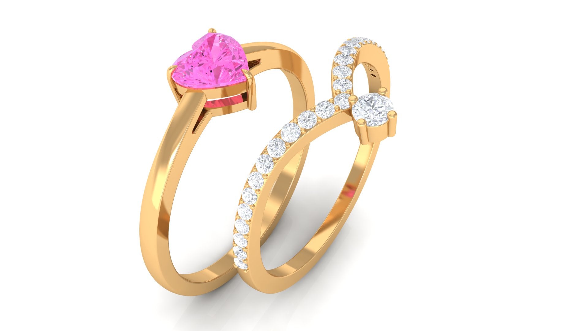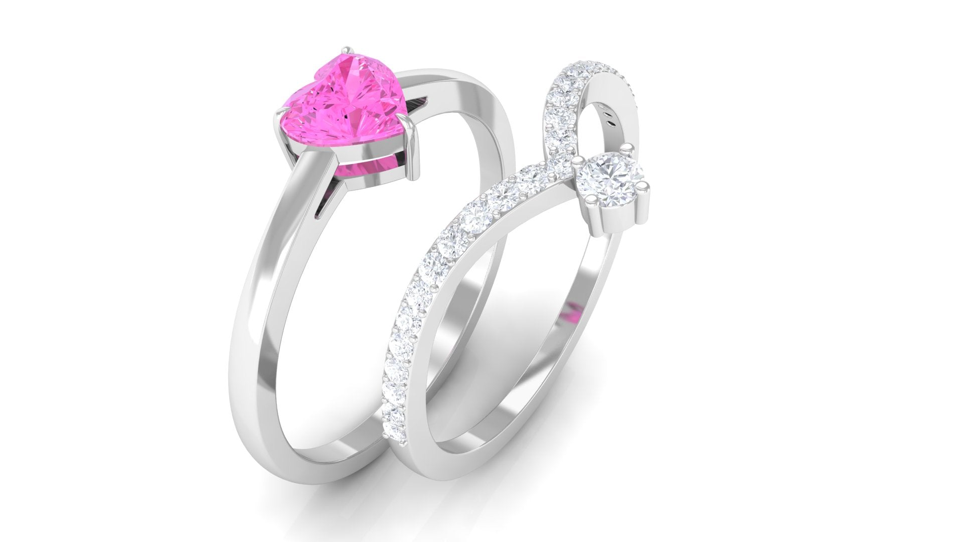 Heart Shape Pink Sapphire Stackable Ring Set with Diamond