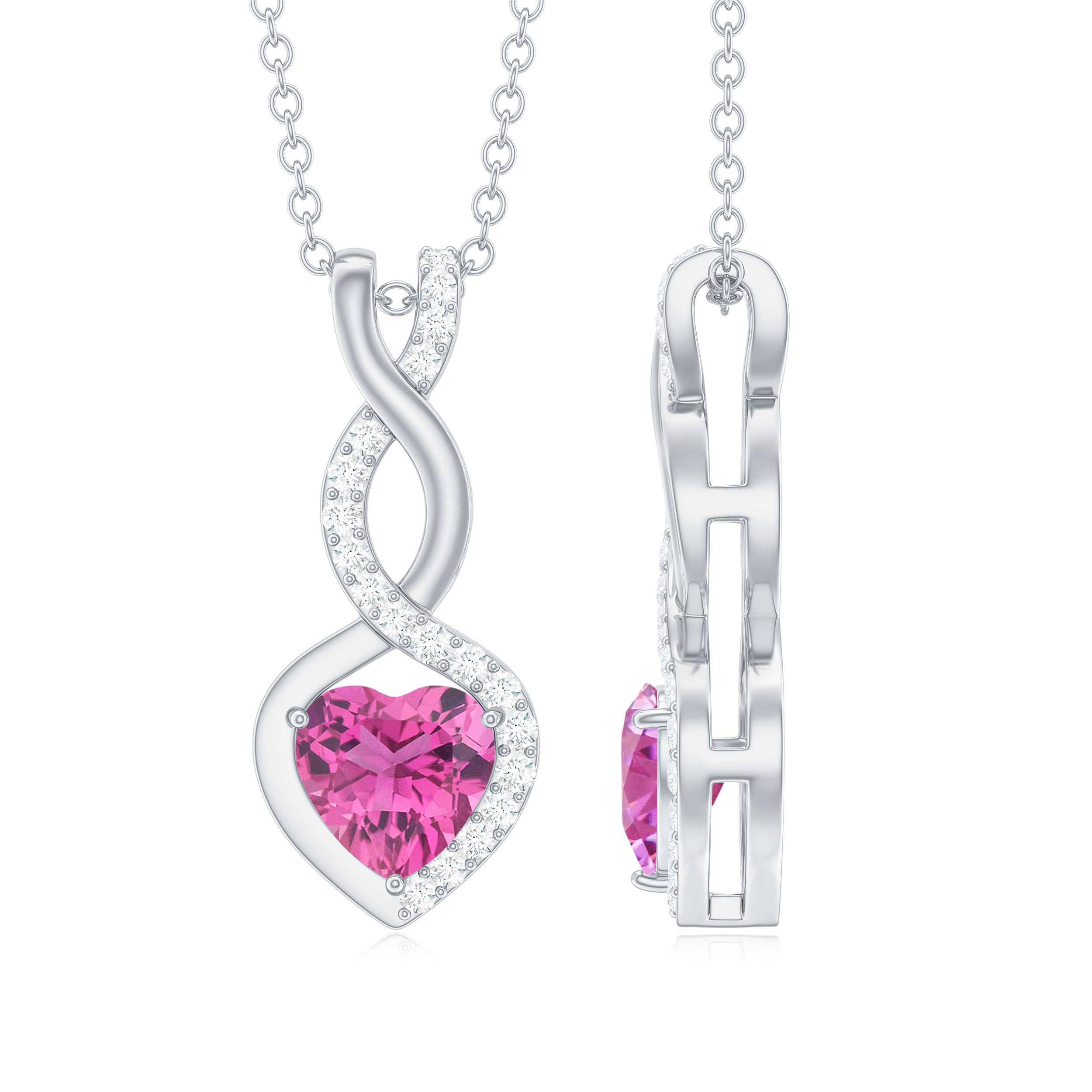 Heart Shape Pink Tourmaline and Diamond Infinity Pendant