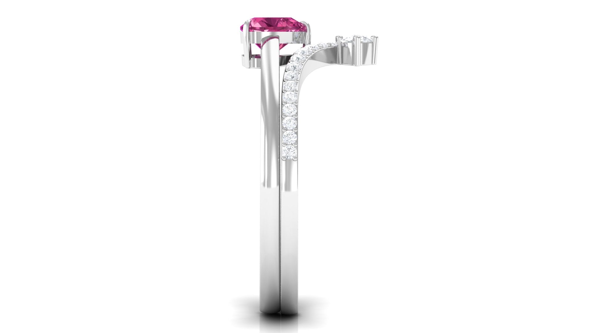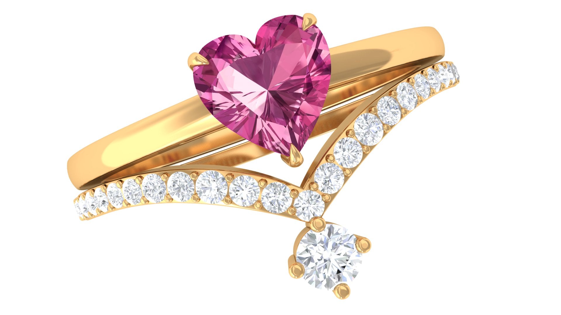 Heart Shape Pink Tourmaline Ring Set with Diamond