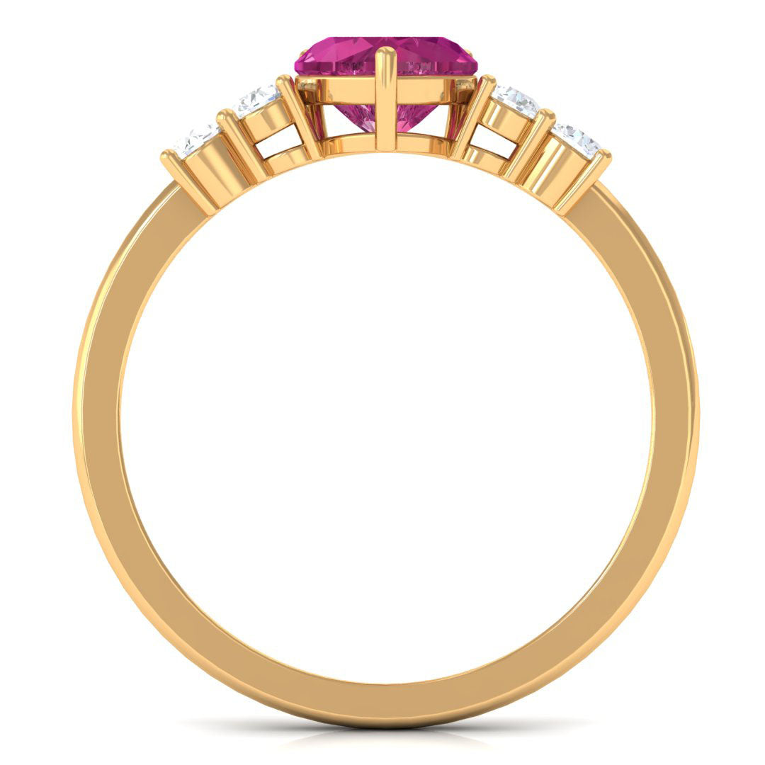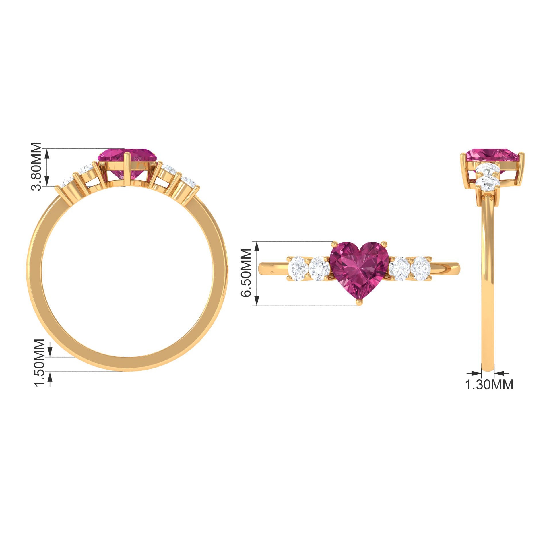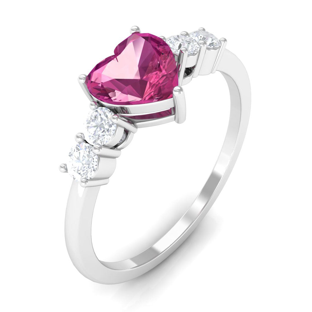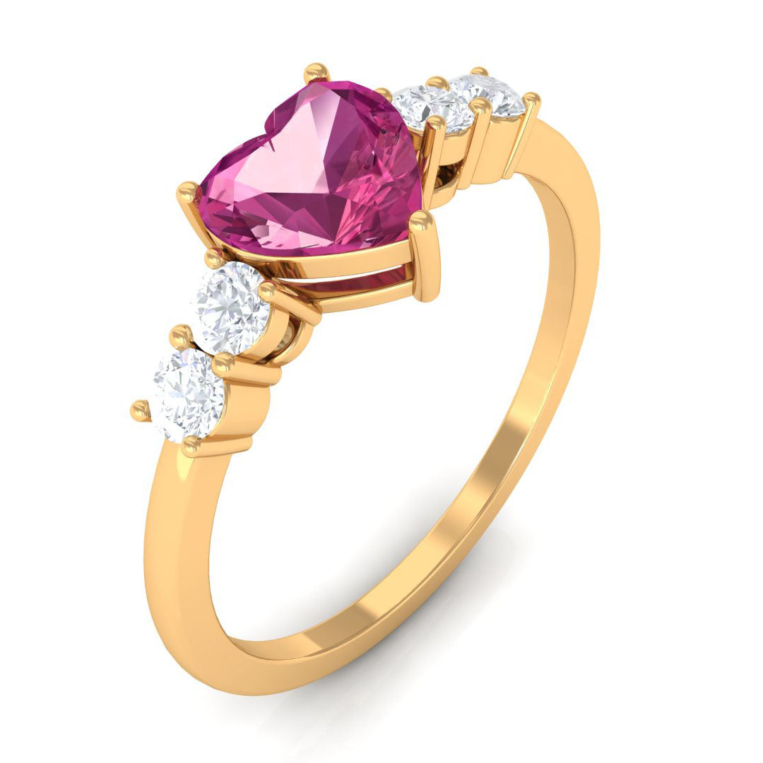 Heart Shape Pink Tourmaline Solitaire Promise Ring with Diamond