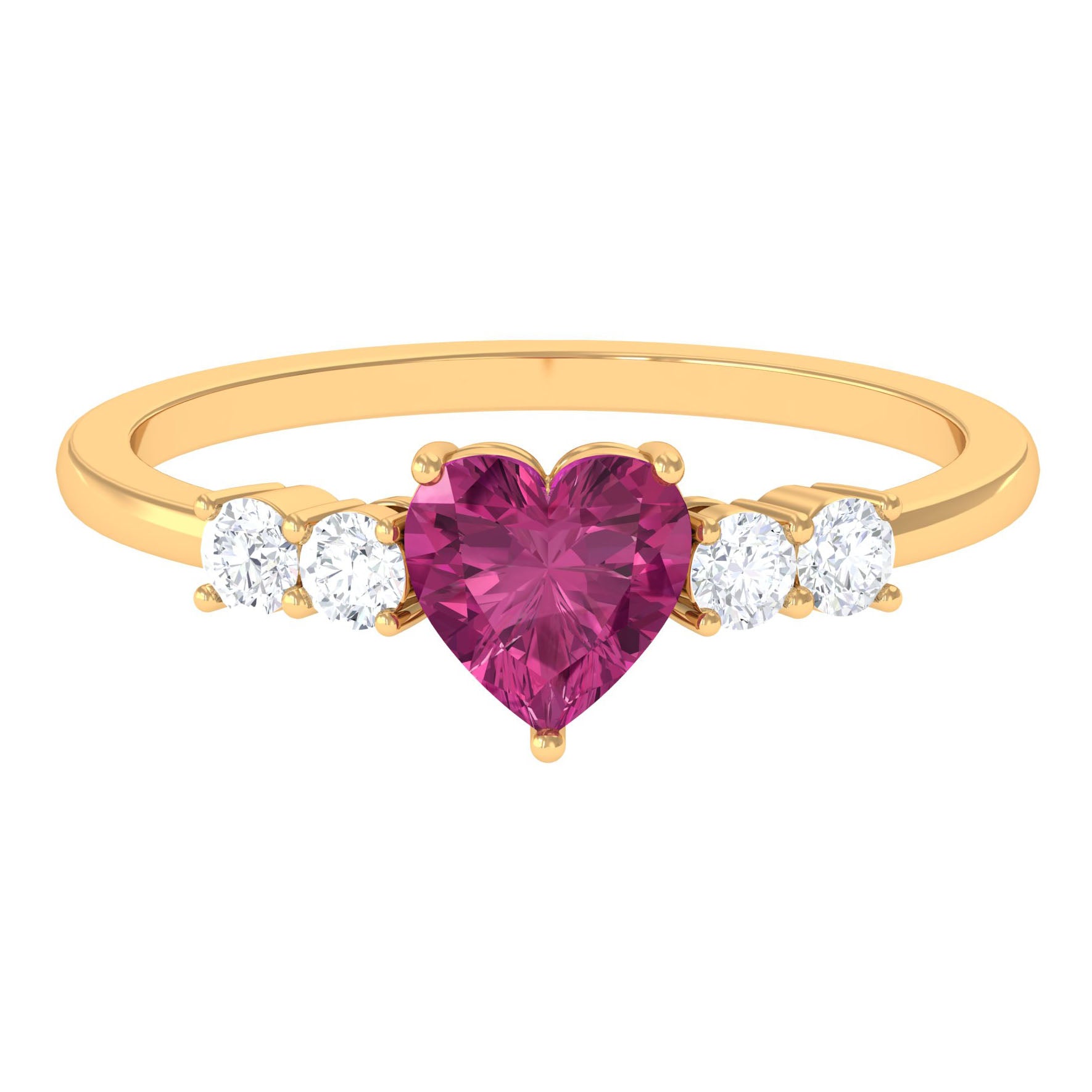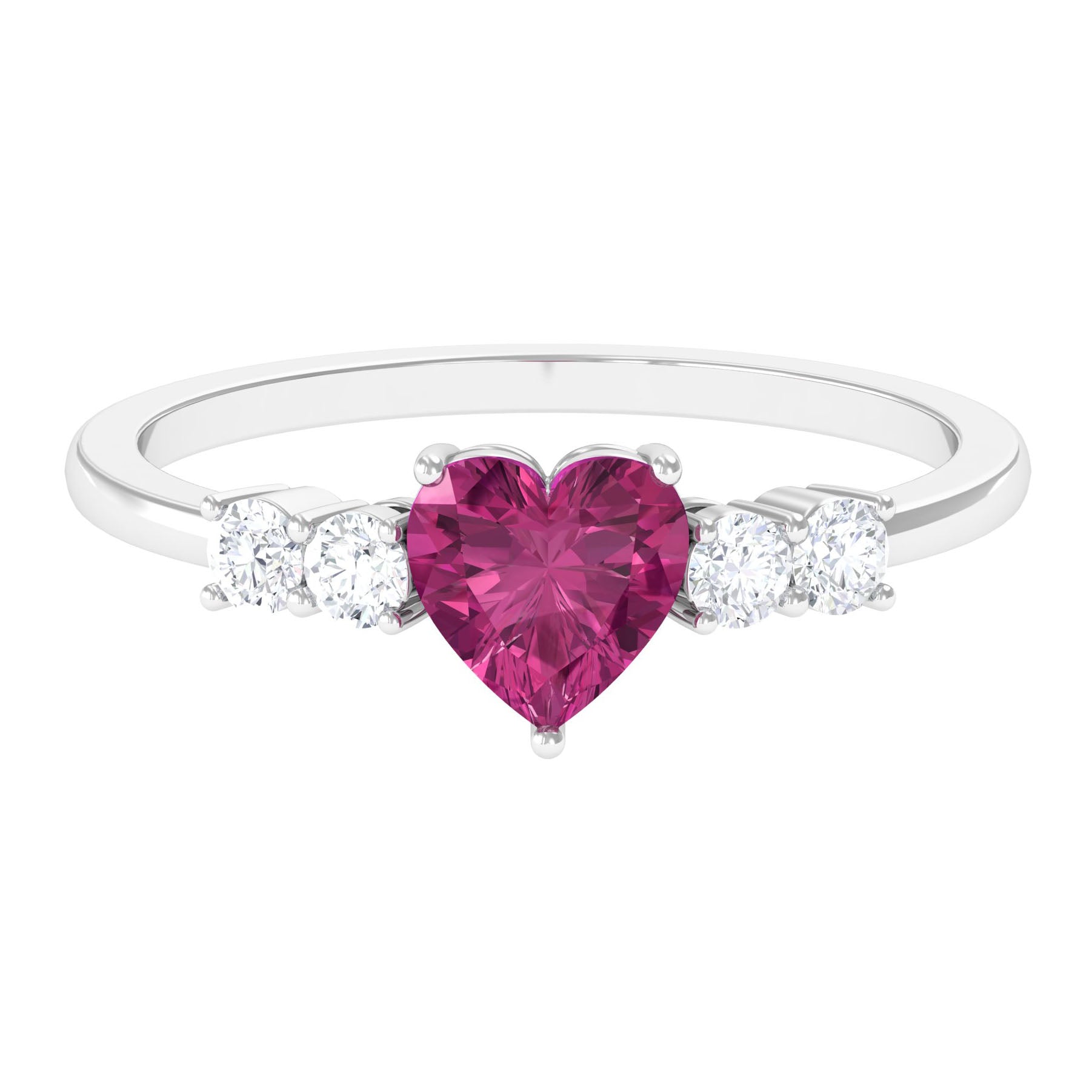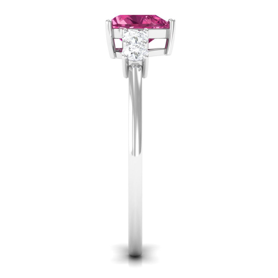 Heart Shape Pink Tourmaline Solitaire Promise Ring with Diamond