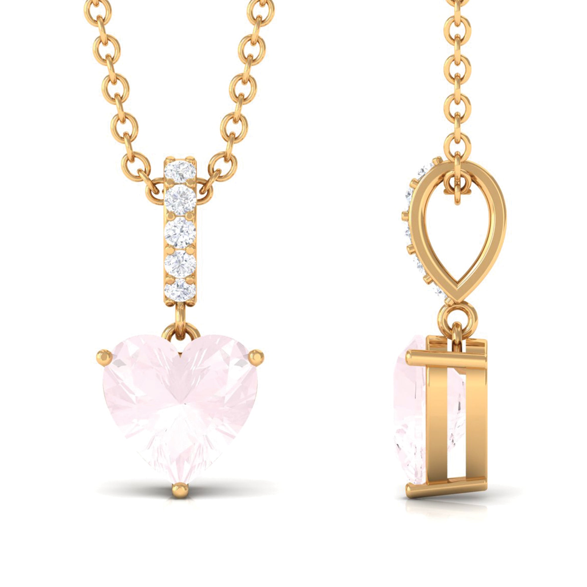 Heart Shape Rose Quartz and Diamond Solitaire Pendant