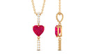This exquisite Heart Pendant in Gold is the perfect way to show your love and appreciation for that special someone. The heart-shaped Ruby is set in a prong setting, with sparkling Diamond stones, adding a touch of elegance and sophistication. The bar dangle pendant is crafted with the finest materials and designed to last a lifetime, making it a perfect addition to any jewelry collection.