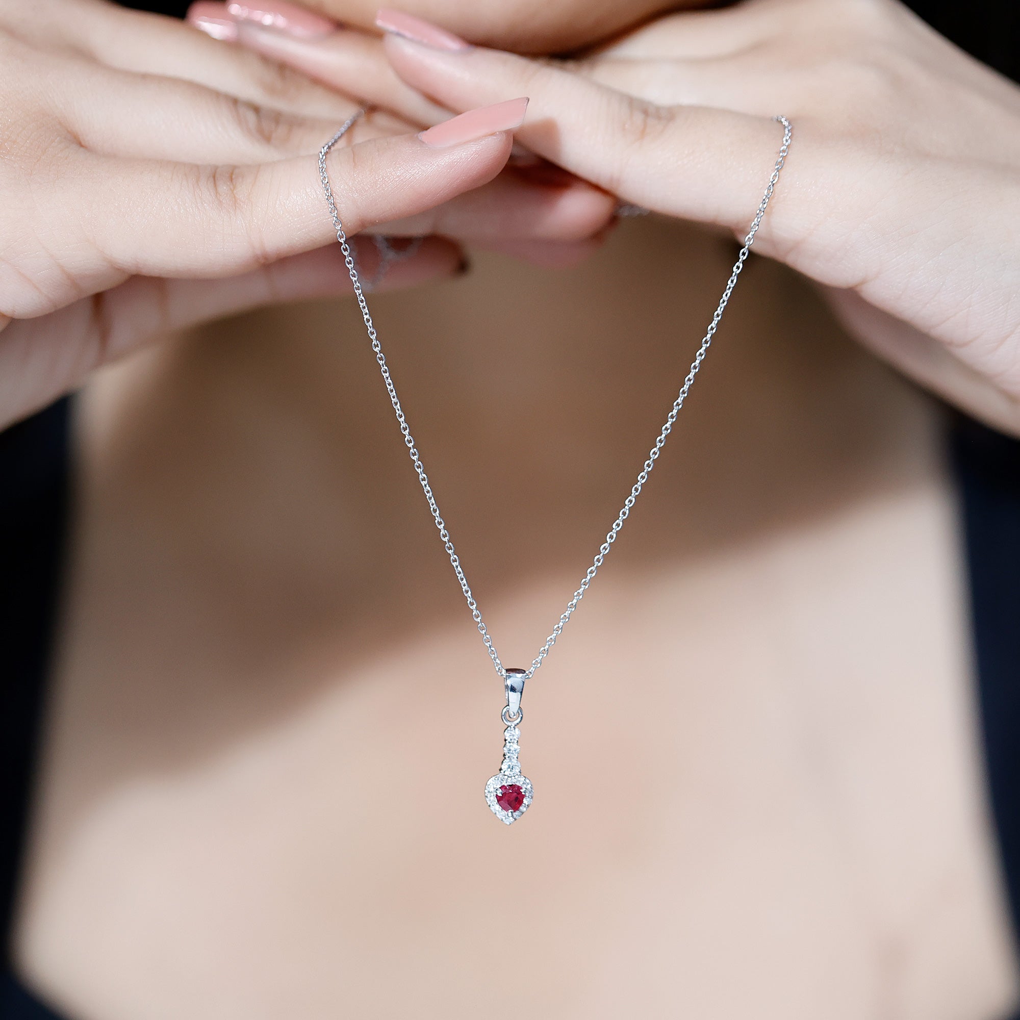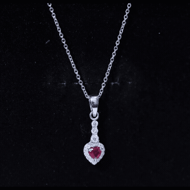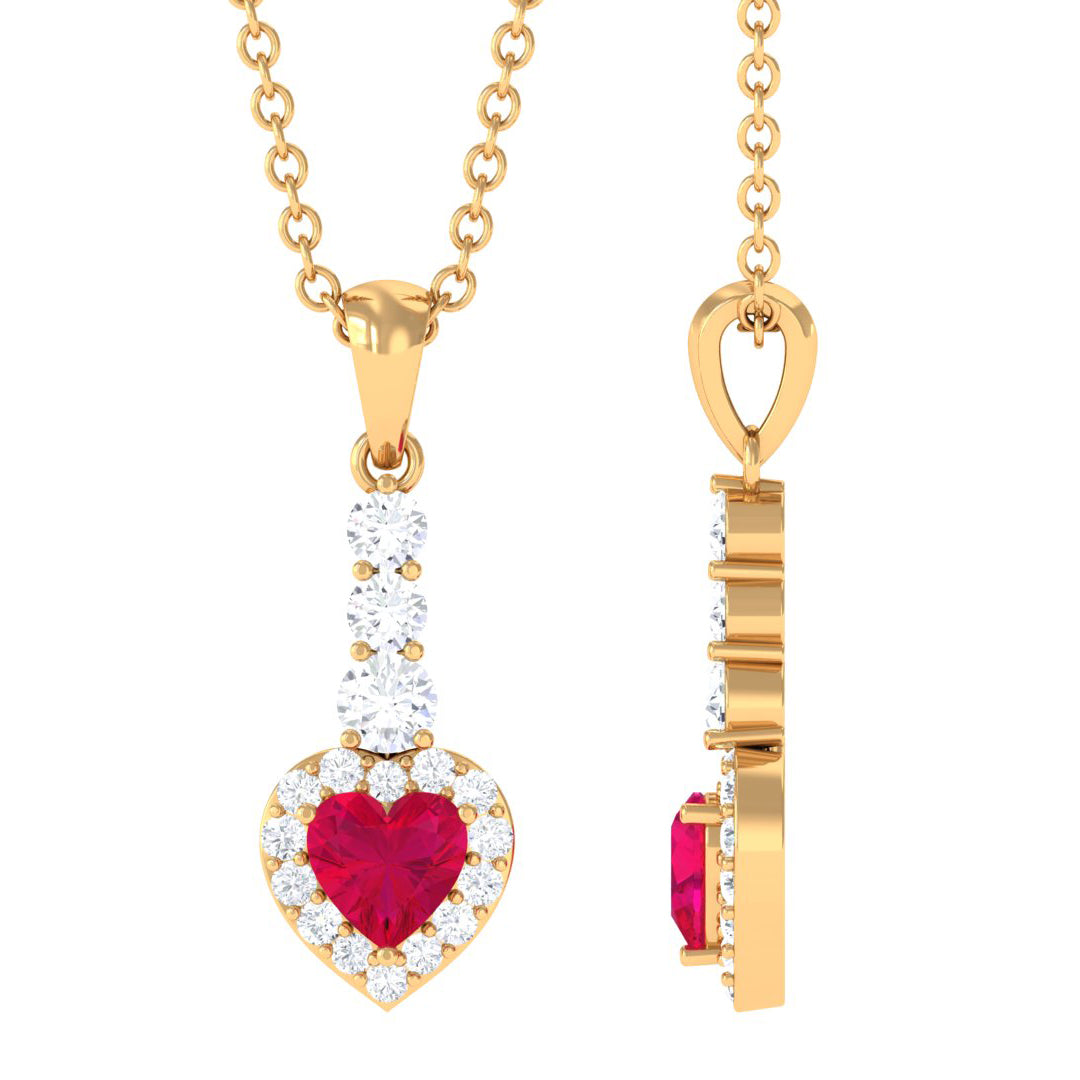 Heart Shape Ruby Drop Pendant with Diamond
