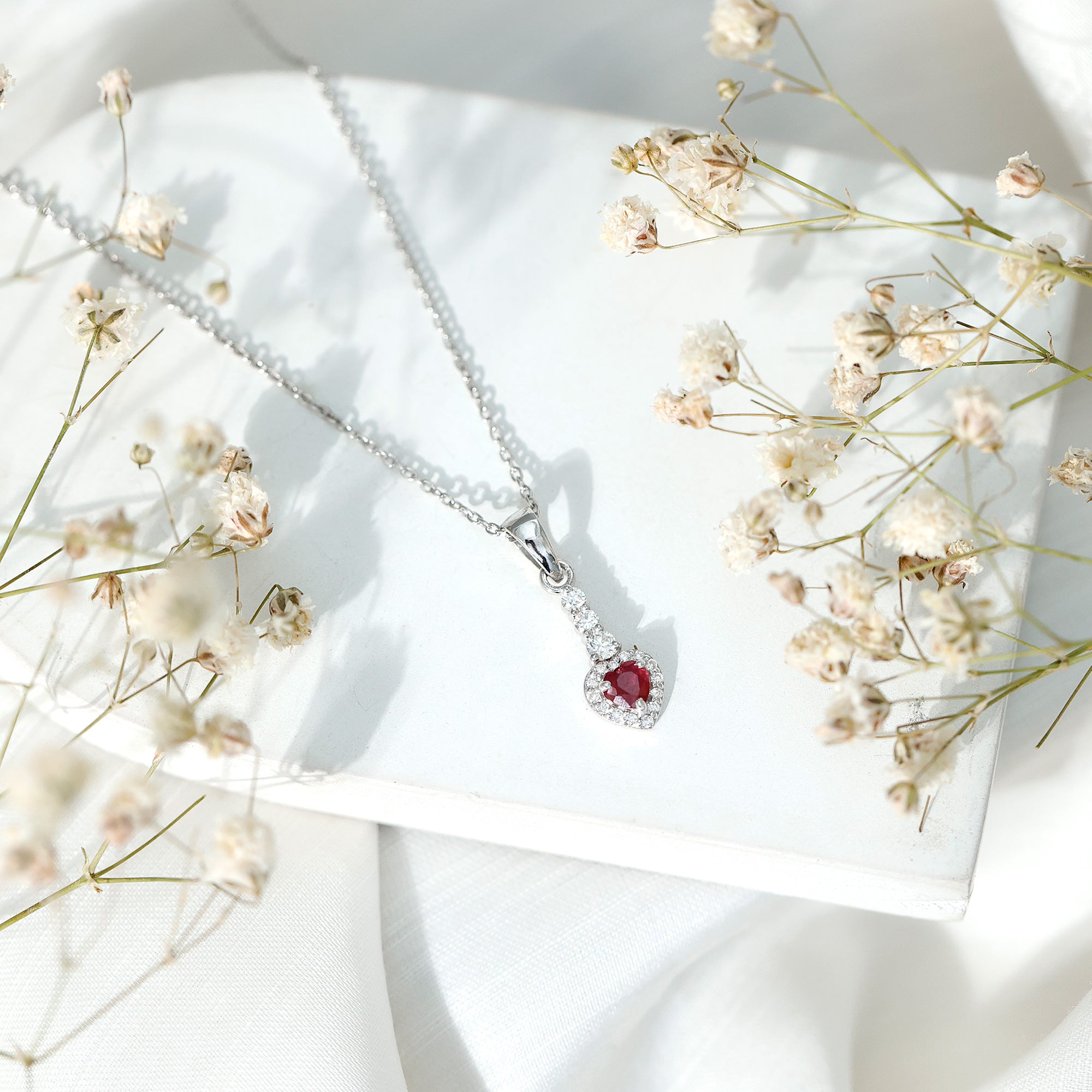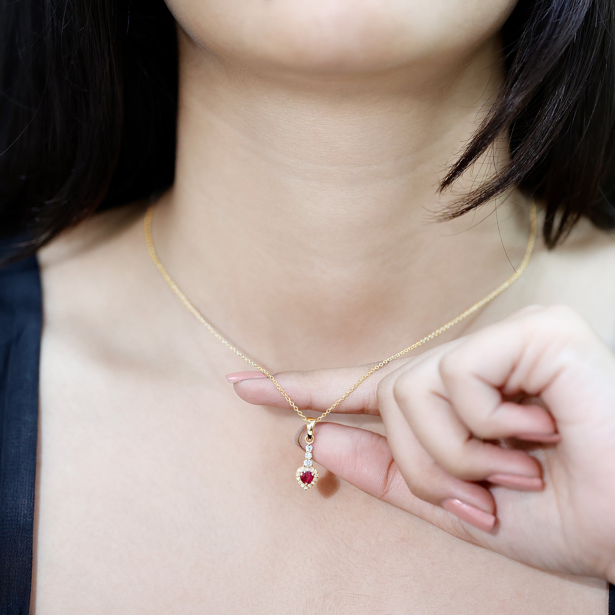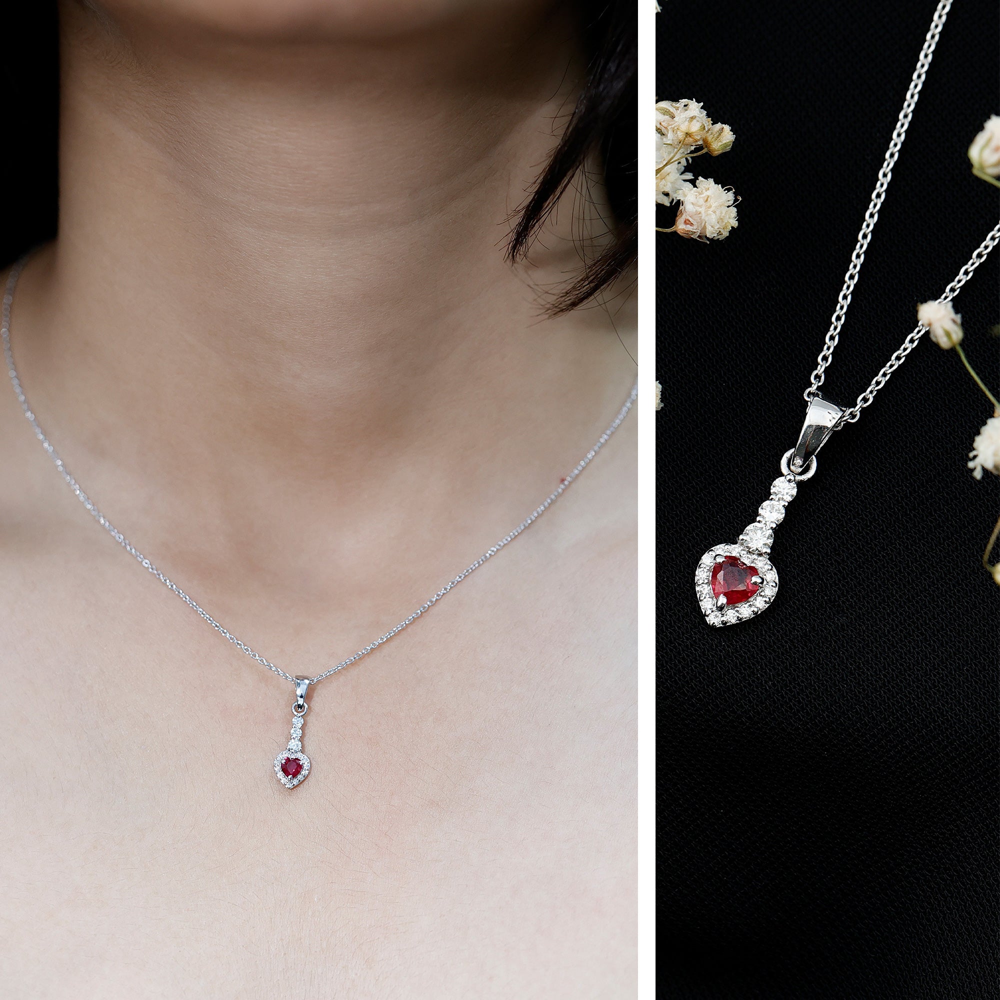 Heart Shape Ruby Drop Pendant with Diamond