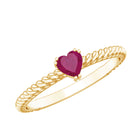 The beautiful dainty and striking Ruby Promise Ring represents an unconditional love for your special one. When modern meets stylish design with twisted rope details that add a special touch to your outfits. This Ring is adorned with a 4 mm Heart Shape Ruby in Double Prong Setting as Solitaire. This ring embodies simplicity and elegance, making it a meaningful symbol of love. Truly a versatile and beautiful Promise Ring for Her, representing a perfect anniversary, promise, or a July birthday. The center stone dazzles and sparkles with shine, symbolizing this sentiment. As a commitment symbol, this Heart Ruby Ring goes beyond just a pledge of love, creating the perfect symbol of your commitment and making a romantic gesture she will never forget.