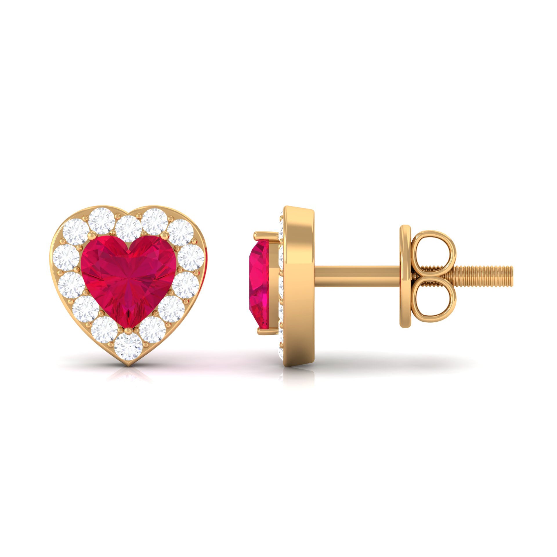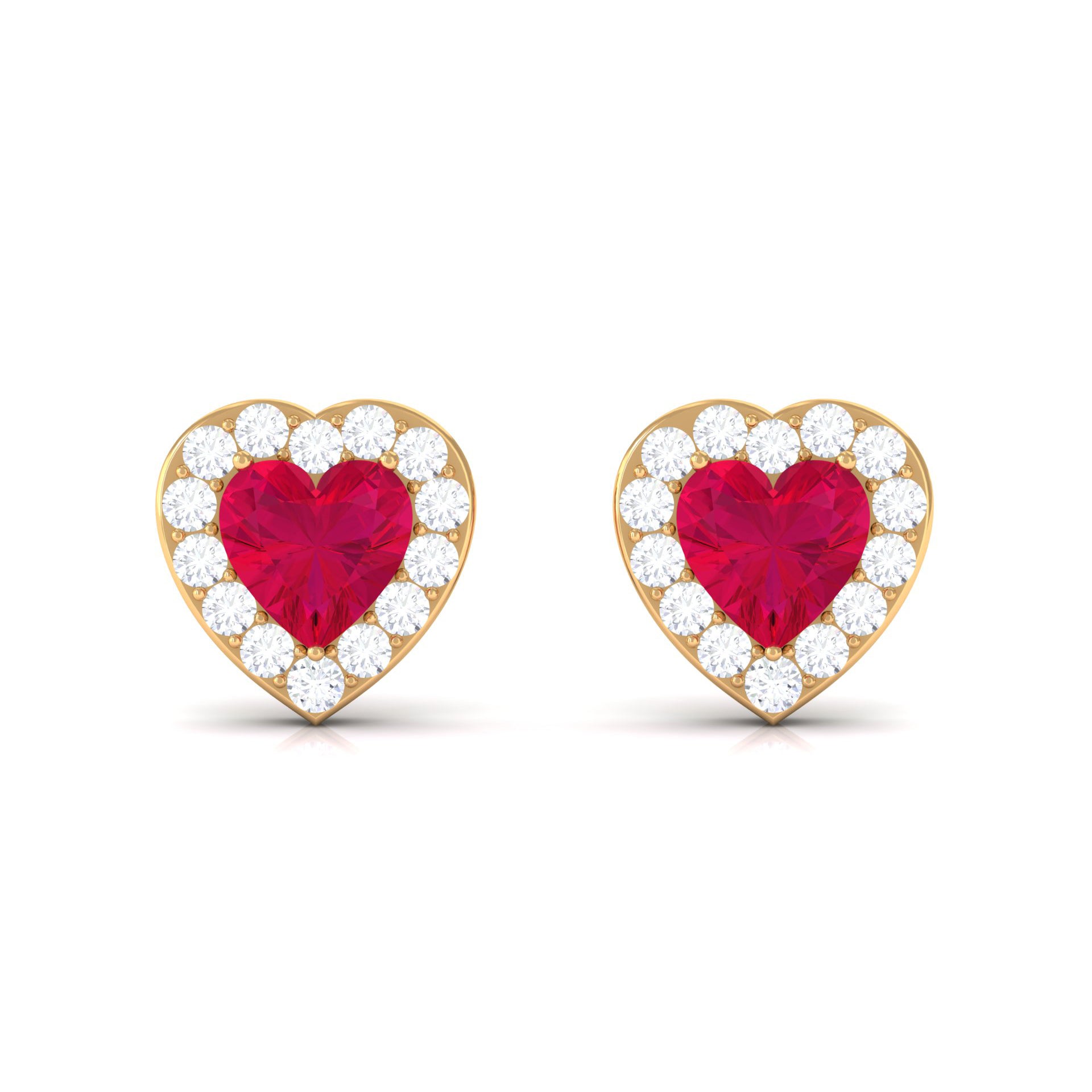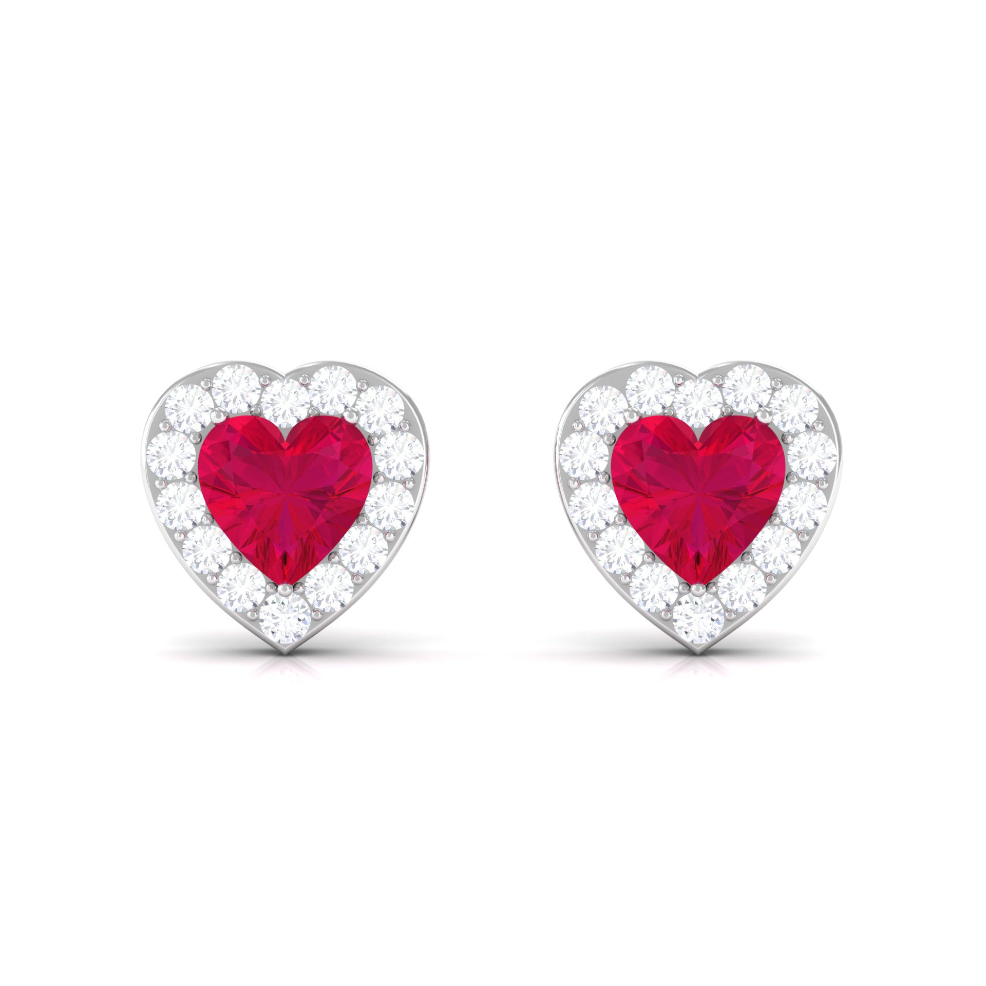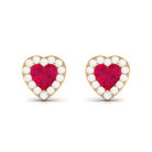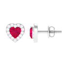 Heart Shape Ruby Stud Earrings with Diamond Halo