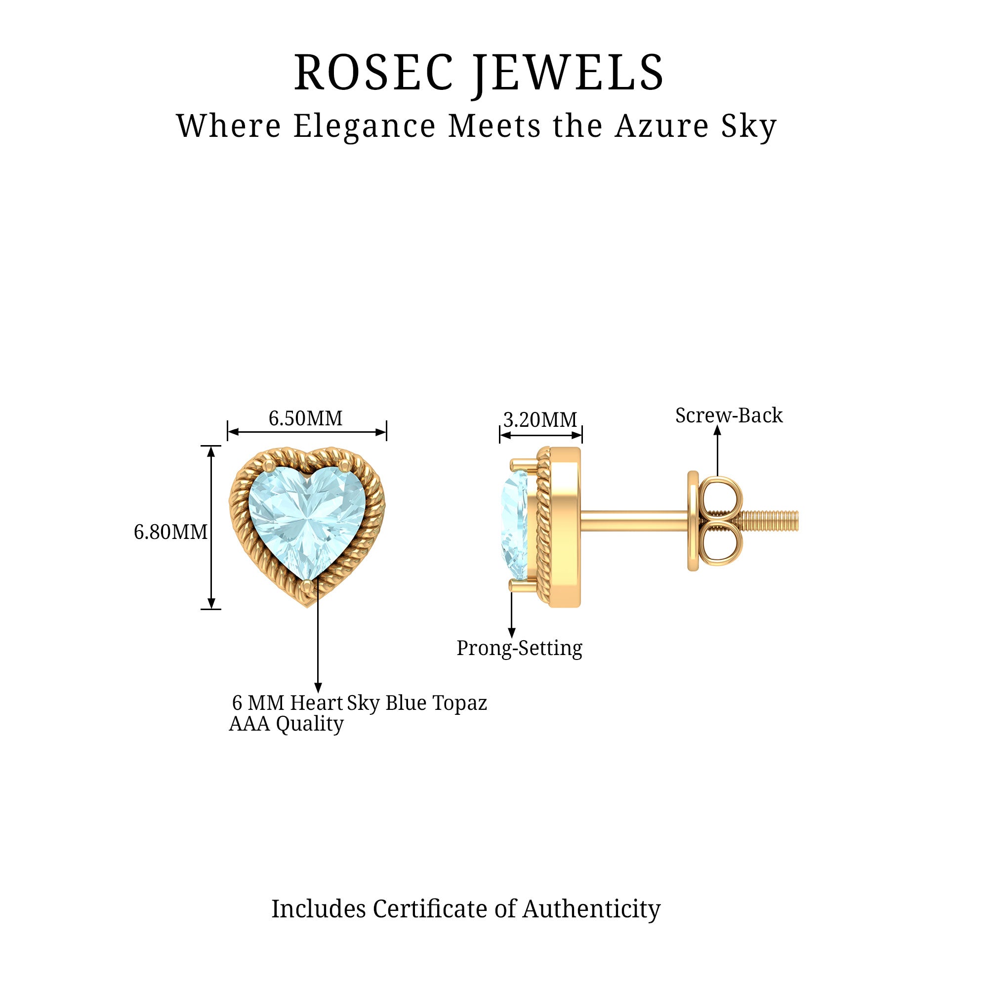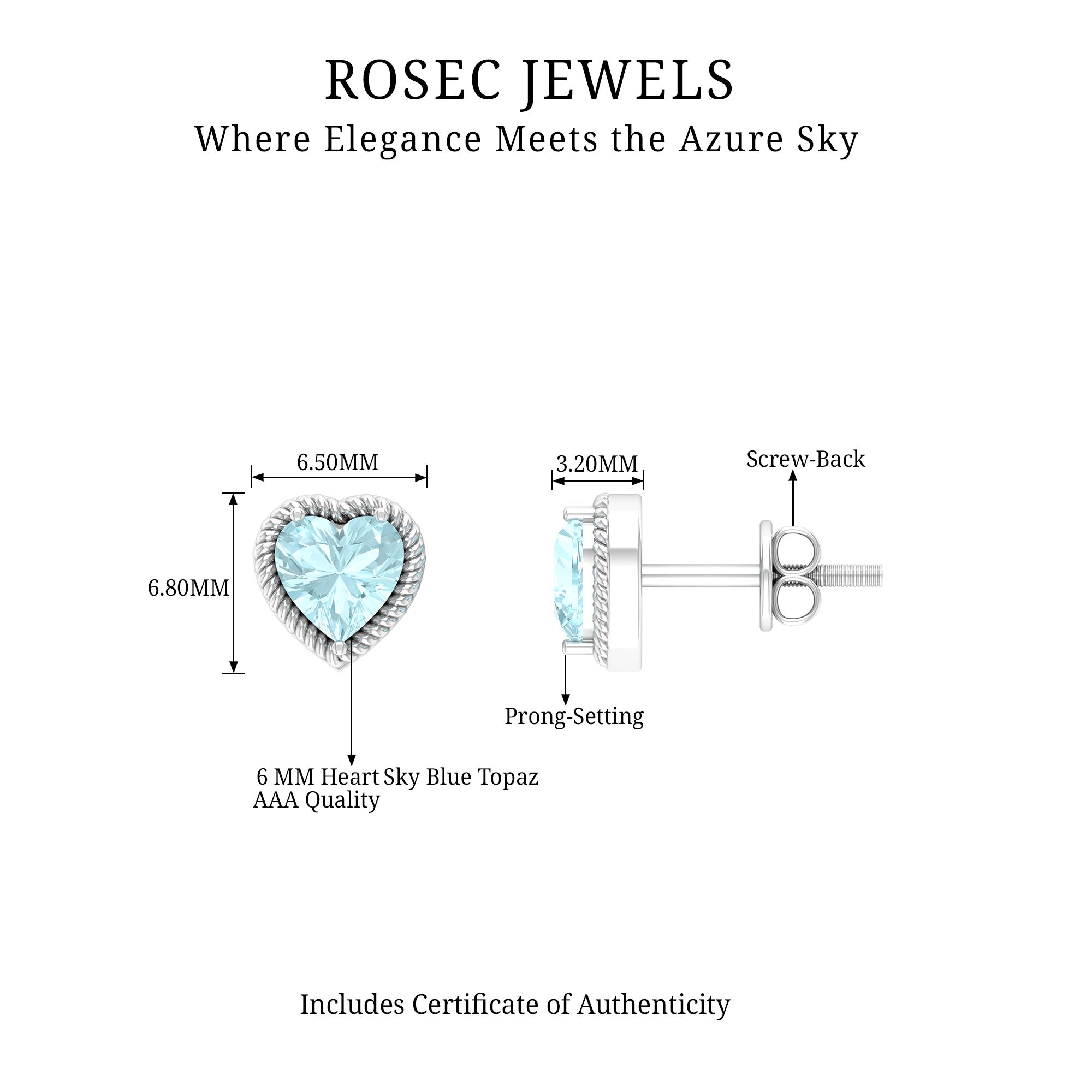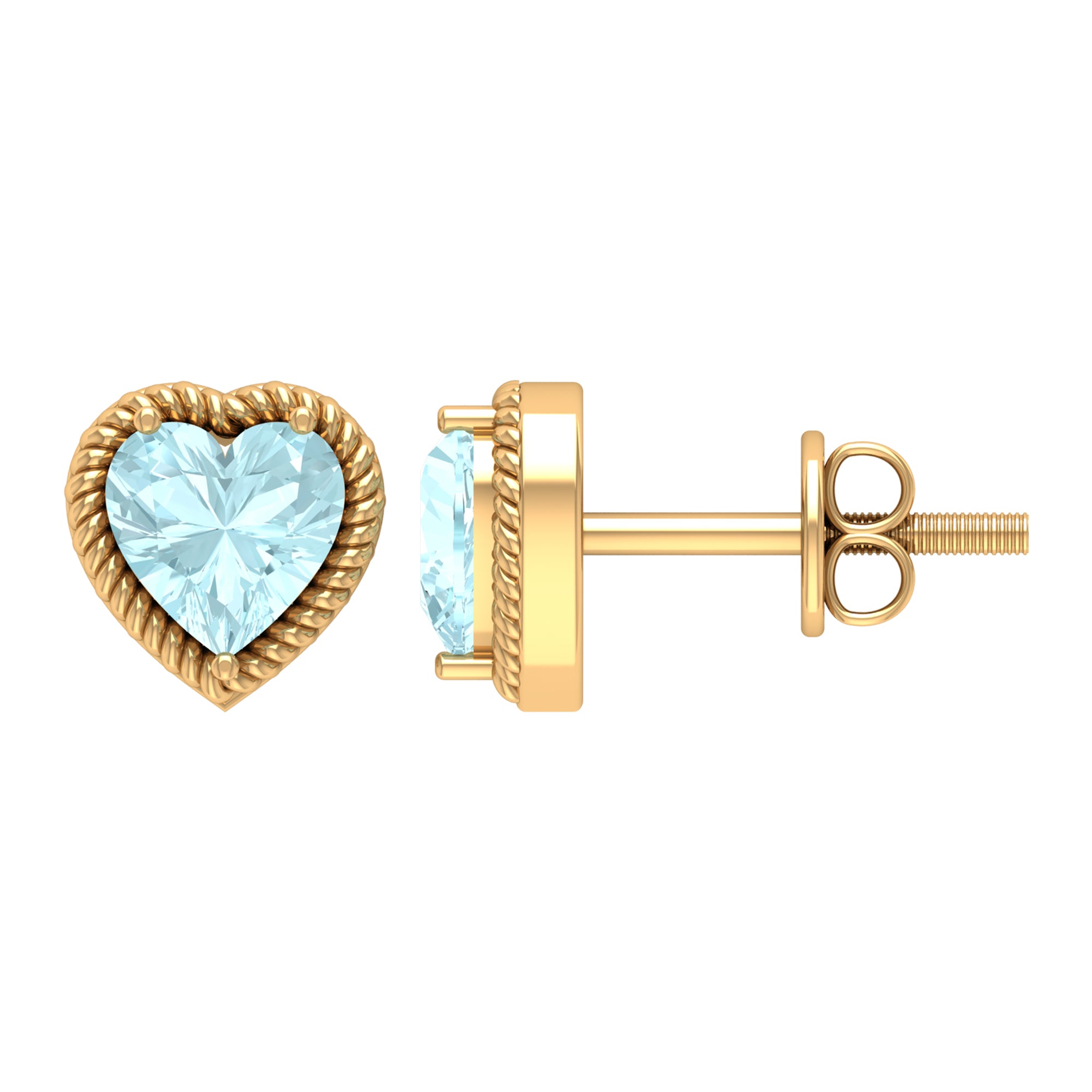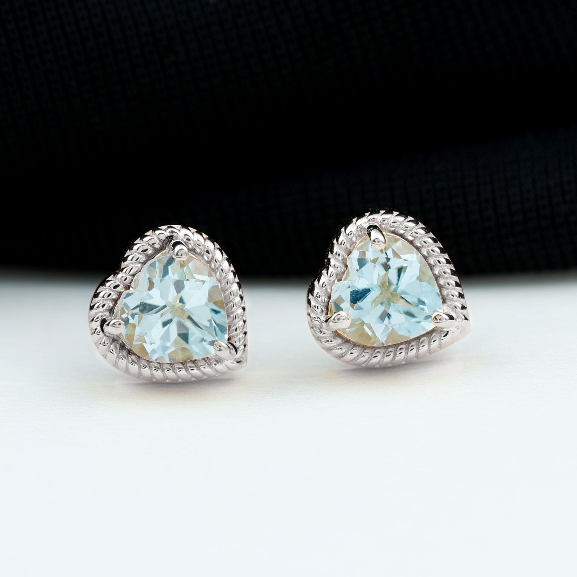 Heart Shape Sky Blue Topaz Solitaire Stud earrings with Twisted Rope Frame