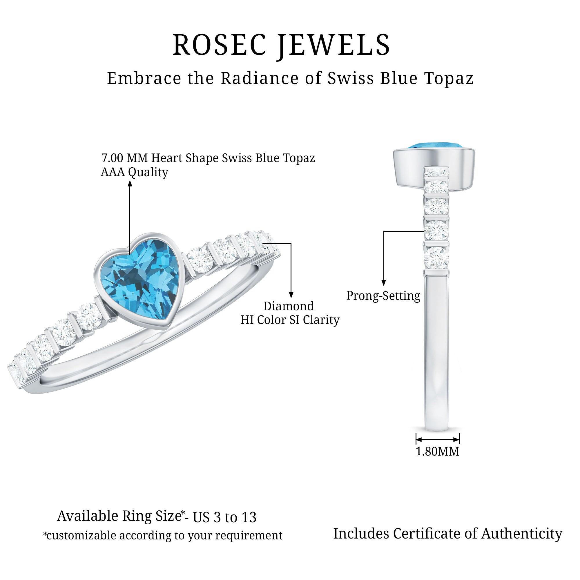 Heart Shape Swiss Blue Topaz Engagement Ring with Diamond in Bezel Setting