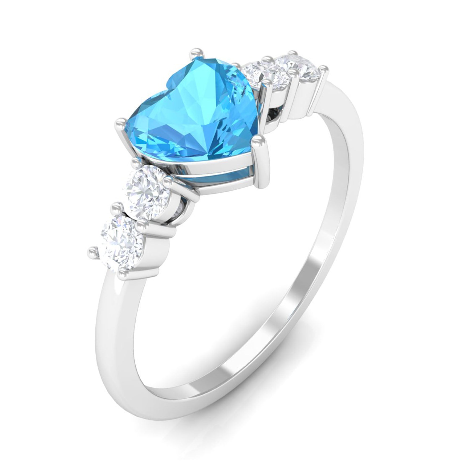 Make a promise of eternal love with this Heart Shape Swiss Blue Topaz Promise Ring with sparkling Diamond gemstones, a heartfelt symbol of devotion.