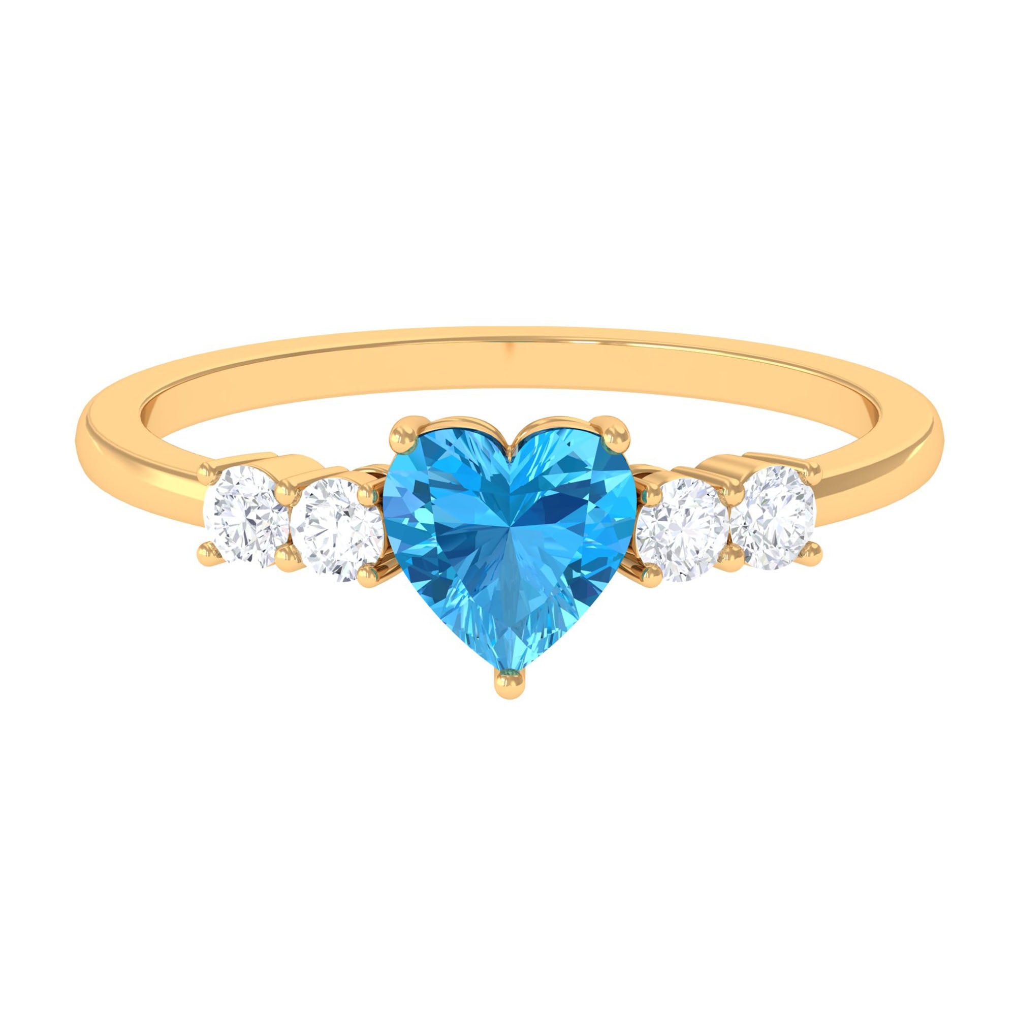 Heart Shape Swiss Blue Topaz Solitaire Promise Ring with Diamond