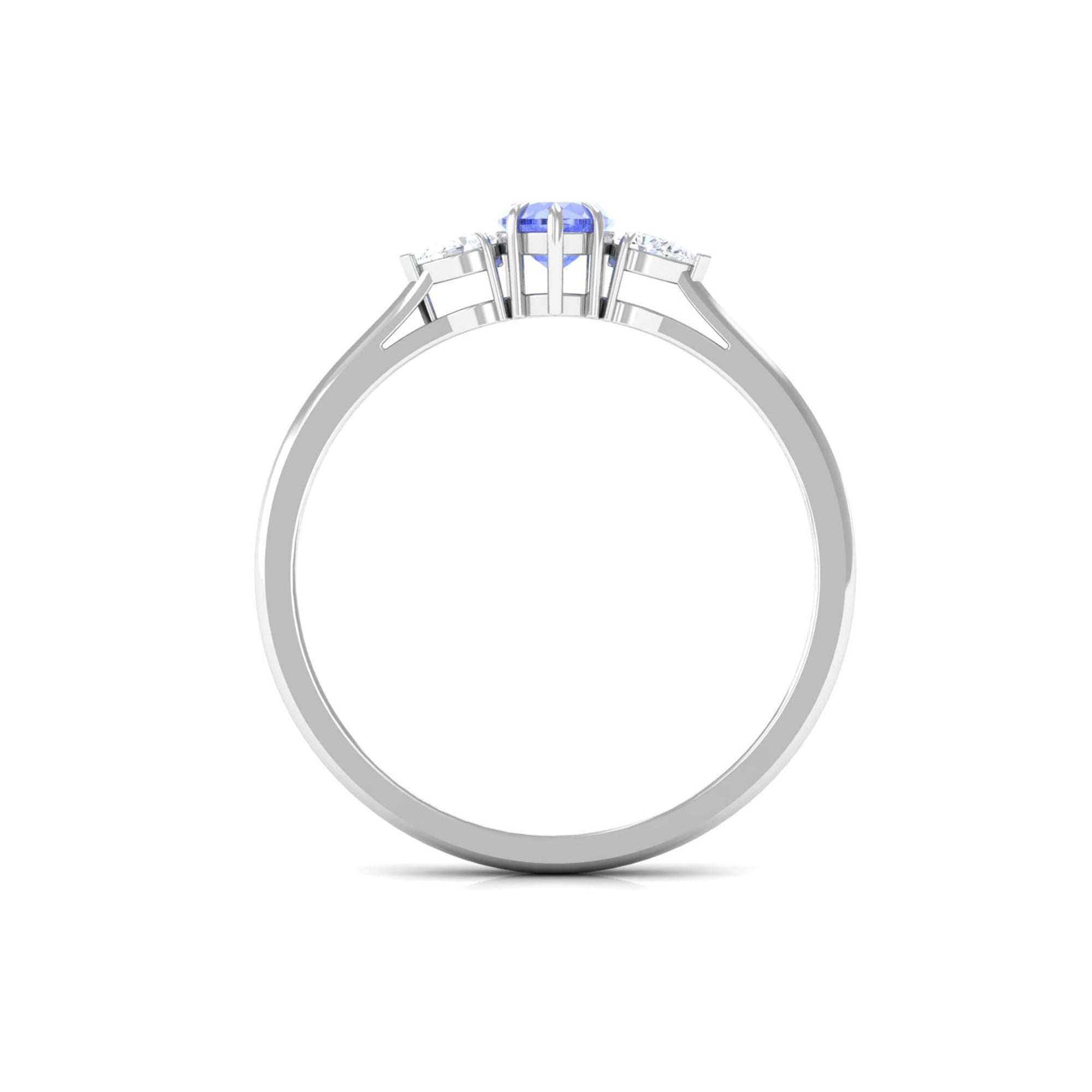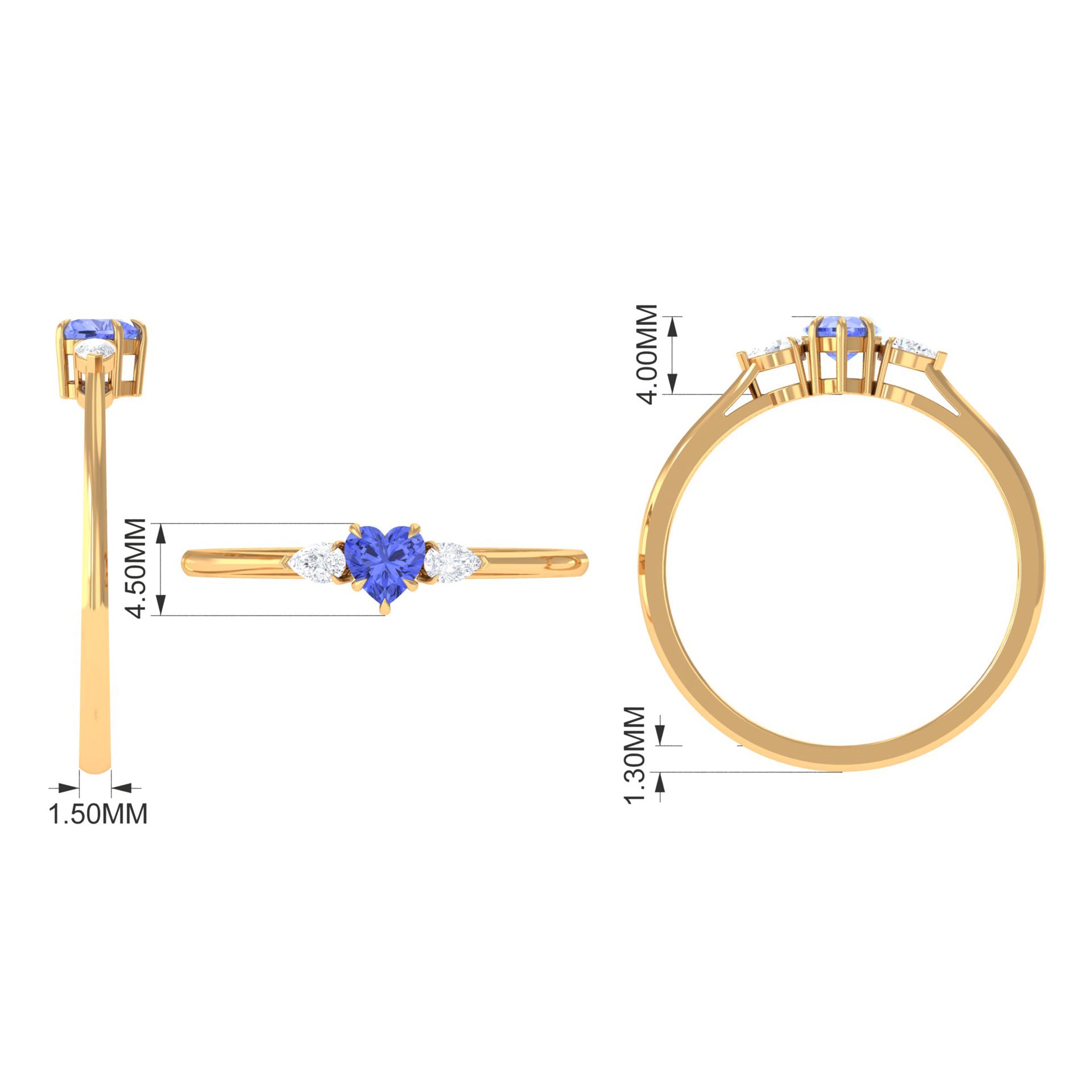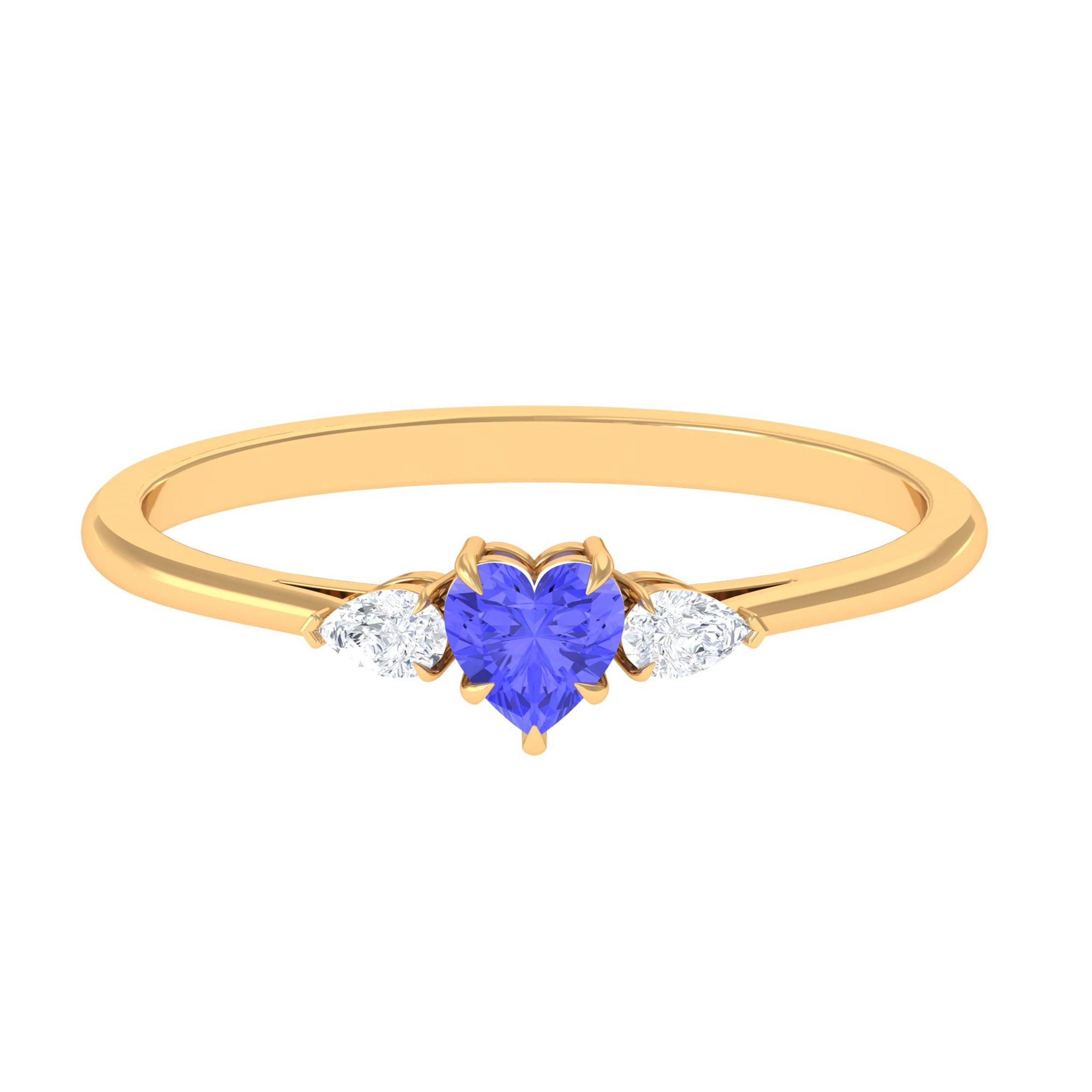Capture the essence of love with this 3 Stone Promise Ring adorned with a Heart Shape Tanzanite and Round Diamond, a heartfelt symbol of romance.