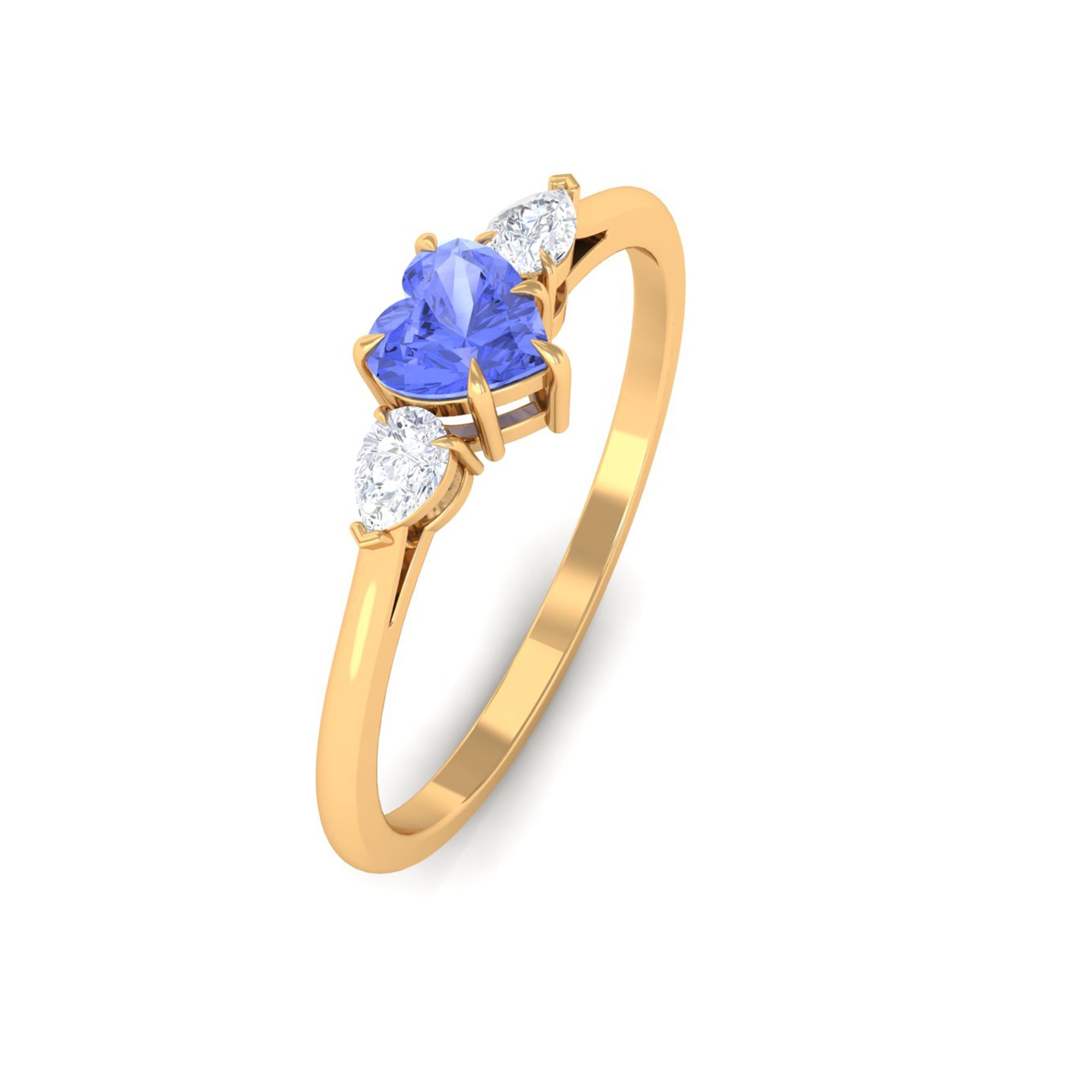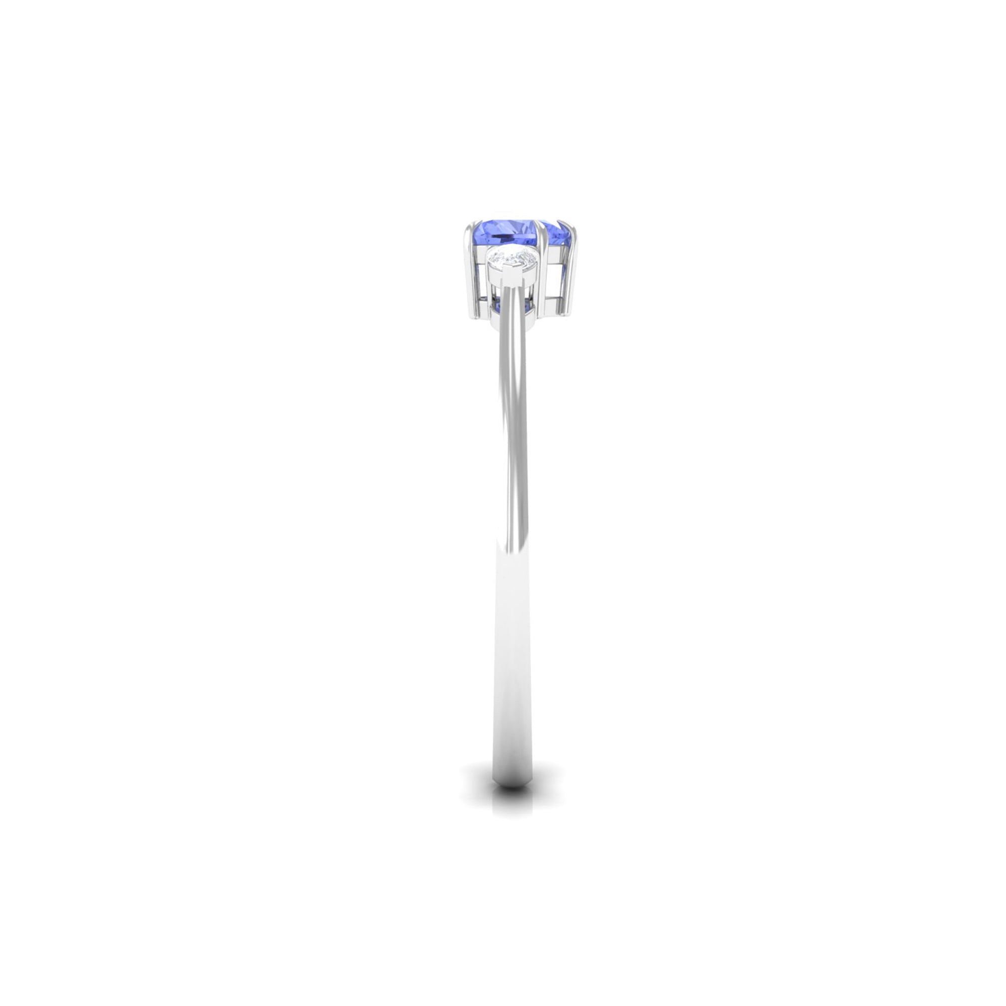 Heart Shape Tanzanite 3 Stone Promise Ring with Diamond