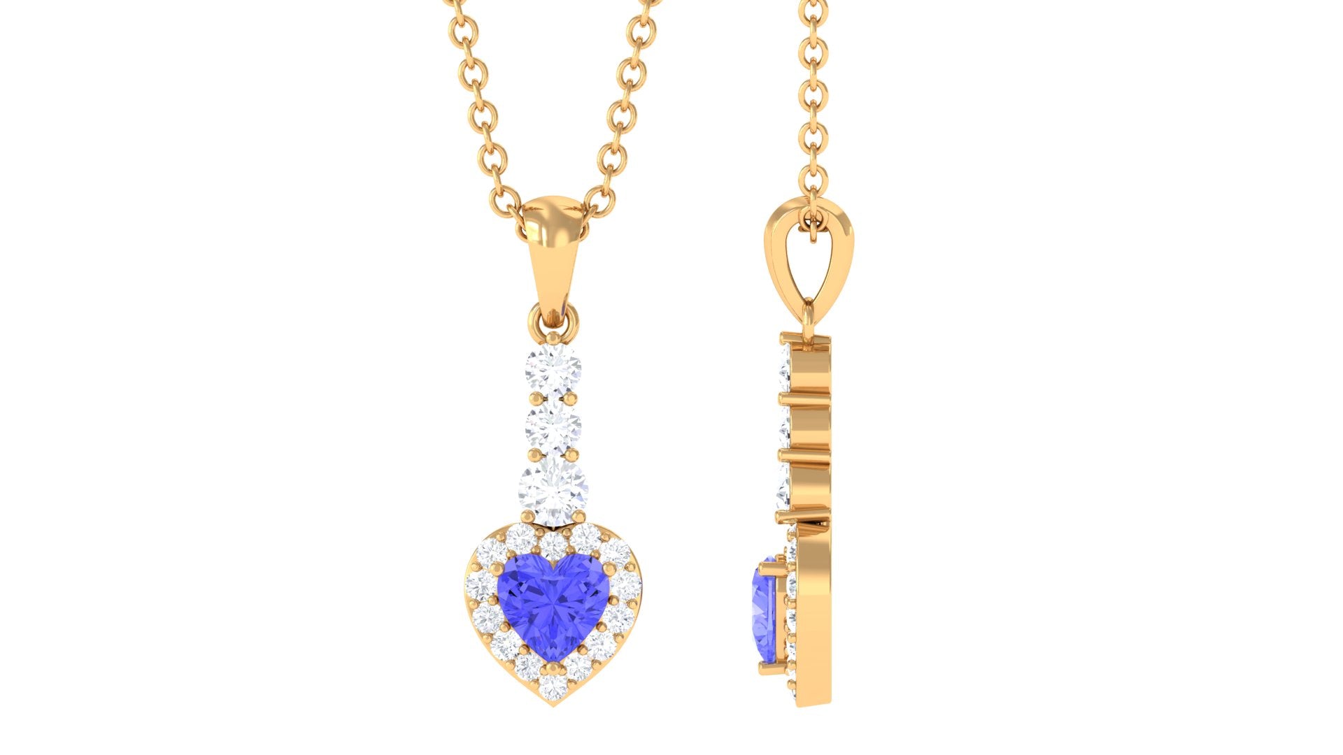 Heart Shape Tanzanite Drop Pendant with Diamond
