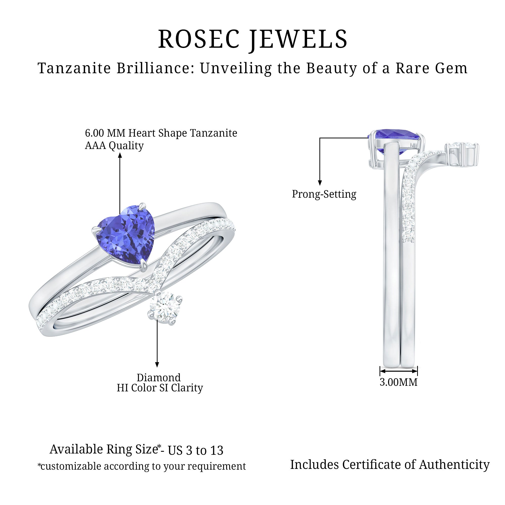 Heart Shape Tanzanite Solitaire Ring Set with Diamond