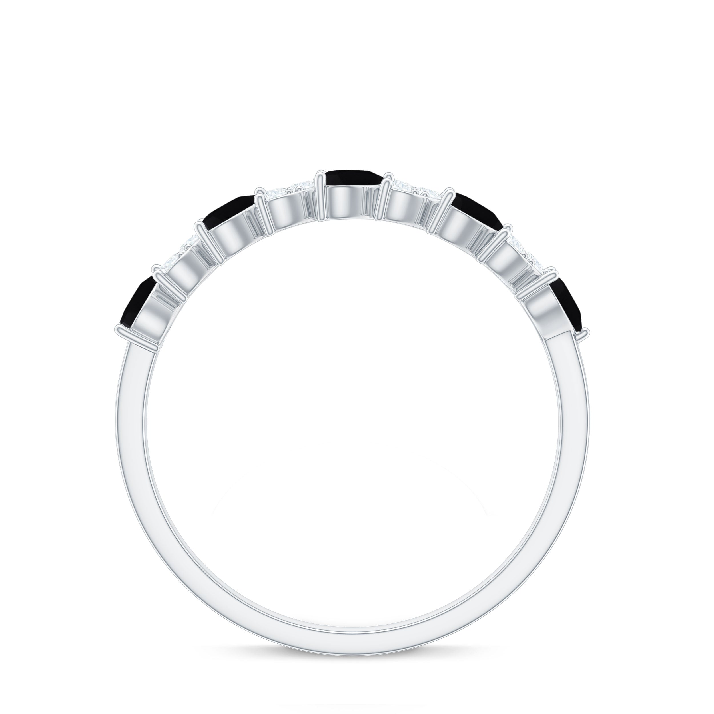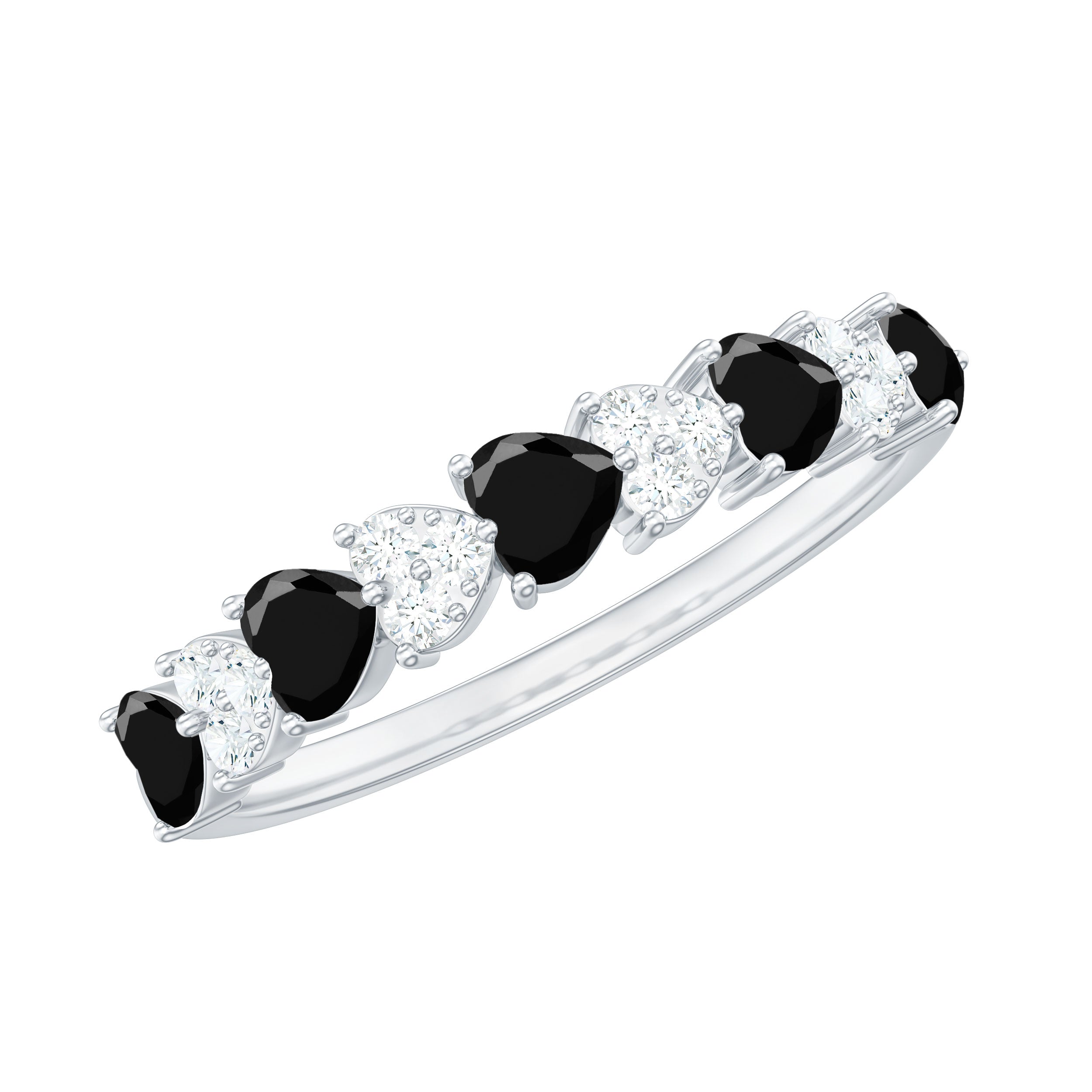 Heart Shaped Black Onyx and Diamond Half Eternity Ring