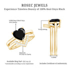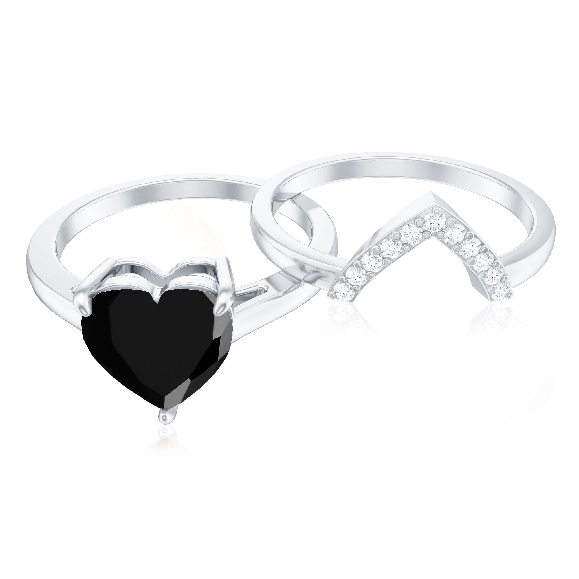 Start your forever with this Heart Wedding Ring Set that reflects the depth of your connection and the beauty of your journey together. This Black Onyx Engagement Ring Set is designed to capture the emotion behind every promise, creating a timeless symbol of love and trust. The centerpiece of the engagement ring is an 8 MM heart shaped Black Onyx, held securely in claw setting. Complementing the engagement ring is a graceful V-shaped enhancer band, crafted to fit seamlessly around the center stone. This matching band is lined with sparkling round cut diamonds, creating a beautiful frame that adds brilliance and charm to the entire set. The curved design draws the eye and highlights the heart shaped onyx, making this Solitaire Bridal Ring Set a striking piece from every angle. To honor a special moment, this Black Onyx Wedding Ring Set is a thoughtful and stylish choice. With its elegant design and symbolic details, it wraps gently around the finger, offering both comfort and beauty. A perfect choice for the bride-to-be who values timeless romance with a unique twist, this Onyx and Diamond Ring Set tells a story of love, loyalty, and the bright future that lies ahead.