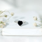 Heart Shaped Black Onyx Engagement Ring with Diamonds